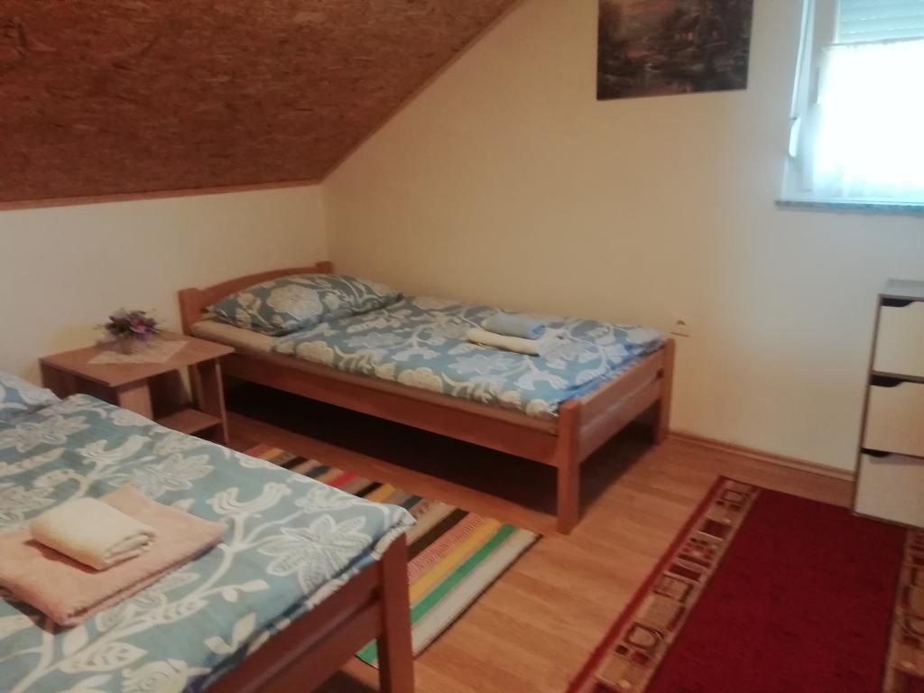 Das Ferienhaus Lika liegt in einem ruhigen Teil von Smiljan, 200 m von der Hauptstraße entfernt, ohne Nachbarn. Wir haben einen großen Garten zum Spielen für Kinder, umgeben von einem Wald. Das Haus besteht aus 4 Schlafzimmern (9 Personen) und der Möglichkeit von 3 Zustellbetten und 1 Toilette im Dachgeschoss. Der untere Teil besteht aus einem Badezimmer, einer Küche und einem großen Wohnzimmer mit überdachter Terrasse und Grill.