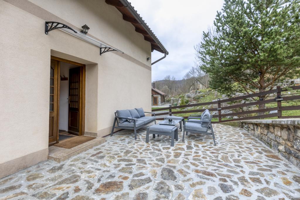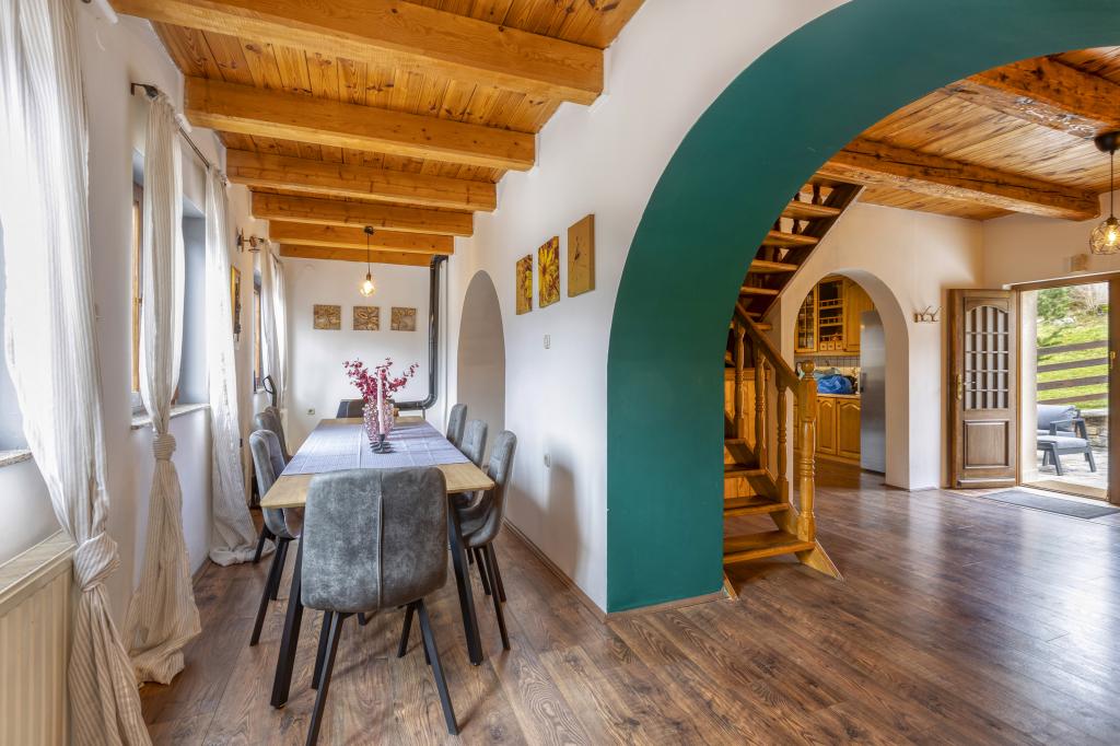 Das Ferienhaus liegt im Naturpark Velebit, nur 35 Minuten vom Meer und 1 Stunde vom Nationalpark Plitvicer Seen entfernt. Das Anwesen liegt isoliert und bietet einen idyllischen Blick auf den Wald und Velebit. Auf dem Grundstück befinden sich 3 Gebäude. Haus auf 3 Etagen, Garage und kleines Holzhaus mit großem Kamin und Holztisch. Im Haus erleben Sie eine angenehme Atmosphäre mit vielen Holzelementen und bequemen Möbeln. Im Erdgeschoss gibt es ein großes Wohnzimmer, eine Küche und ein Badezimmer. Über eine schöne Holztreppe gelangen Sie in den ersten Stock, wo sich 4 sehr komfortable Zimmer und ein Badezimmer befinden. Im Keller gibt es ein Spielzimmer mit Billard, Tischfußball und Darts. Das Innere des gesamten Hauses ist sorgfältig eingerichtet und bietet alles, was Sie für maximalen Komfort und einen entspannten Aufenthalt benötigen.