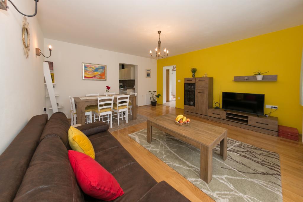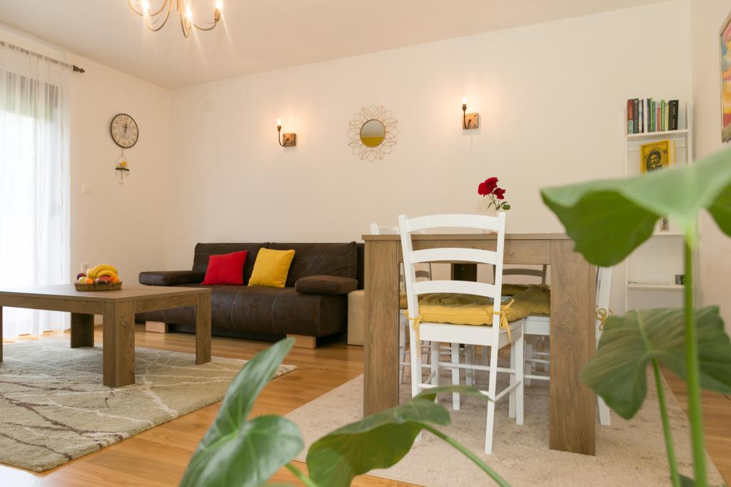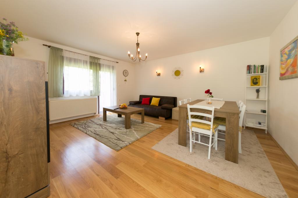 Das Haus ist ausreichend isoliert und weit weg von den ersten Nachbarn, umgeben von Wald und Grün, was den Aufenthalt im Garten angenehm und entspannend macht, dennoch liegt es nah genug am Stadtzentrum, Restaurants, Geschäften usw. Der große Hof bietet die Möglichkeit für vielfältige sportliche Aktivitäten und auch für kleine Fußballer stehen ein Tor und ein Ball zur Verfügung.