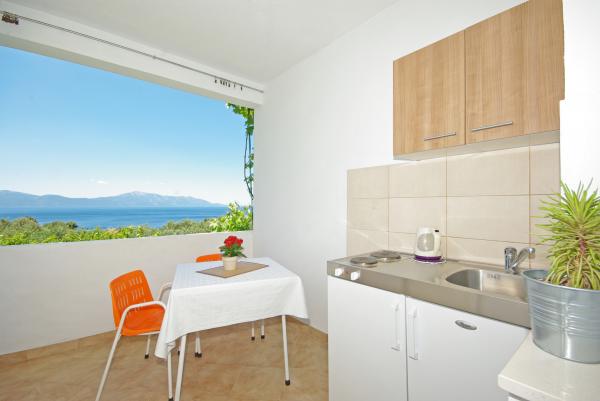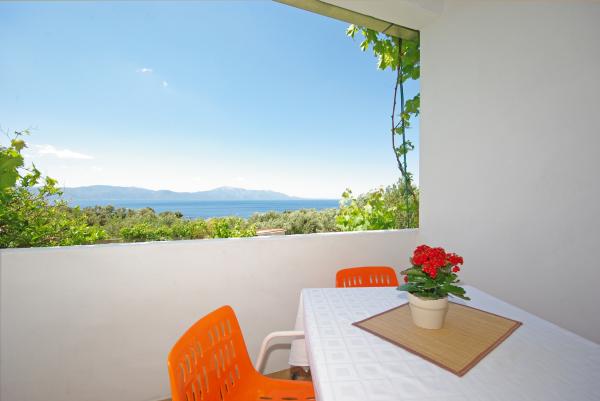 Das Haus hat einen schönen Blick auf das Meer und den Berghang.