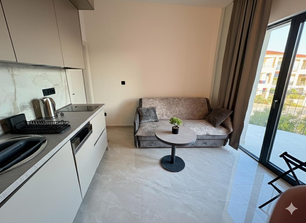 Genießen Sie den Luxus unserer komplett renovierten Apartments, die nach 4-Sterne-Standard eingerichtet sind. In ruhiger Lage gelegen, bieten sie Ihnen einen perfekten Urlaub ohne Lärmbelästigung und sind nur wenige Gehminuten von den schönsten Stränden, Restaurants und Cafés entfernt. Unser Angebot: Erstklassige Ausstattung: Modernes Interieur, Klimaanlage, Highspeed-Internet und TV mit einer großen Senderauswahl. • Sauberkeit und Eleganz: Hohe Hygienestandards und sorgfältig ausgewähltes Design für maximalen Komfort. • Privater Parkplatz: Ein sicherer Stellplatz für Ihr Fahrzeug steht Ihnen auf dem Gelände zur Verfügung. • Gastfreundschaft: Wir beraten Sie gerne zu den besten Restaurants, Ausflügen und Sehenswürdigkeiten der Umgebung. Hinweise: Rauchen und Haustiere sind in der Anlage nicht gestattet, um die Frische und Qualität der Räumlichkeiten für alle unsere Gäste zu erhalten. Erleben Sie einen perfekten Urlaub in Eleganz und Ruhe. Herzlich willkommen!