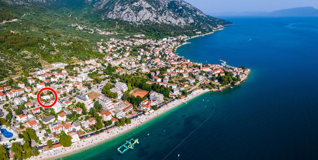 Die Anlage befindet sich in einem ruhigen Teil von Gradac; Zum Strand sind es ca. 100 m, zum Stadtzentrum ca. 400 m. Zu den Annehmlichkeiten gehört, dass es direkt neben dem Haus ein Geschäft und eine Bäckerei sowie eine ganze Reihe von Restaurants und Cafés entlang des Strandes gibt. Der schöne, etwa 3 km lange Strand bietet verschiedene Freizeit-, Sport- und Unterhaltungsmöglichkeiten sowie Spielplätze für Kinder (Wasserpark, Minigolf, Tennisplatz, Verleih von Tretbooten, Wasserscootern und Fahrrädern). Die Anlage umfasst ein Apartment für 4 Personen und ein kleineres Studio für 2 Personen sowie kostenlose Parkplätze für Gäste. Die Wohneinheiten sind komplett mit allen notwendigen Einrichtungen ausgestattet, darunter TV, WLAN und Klimaanlage, die im Übernachtungspreis inbegriffen sind.