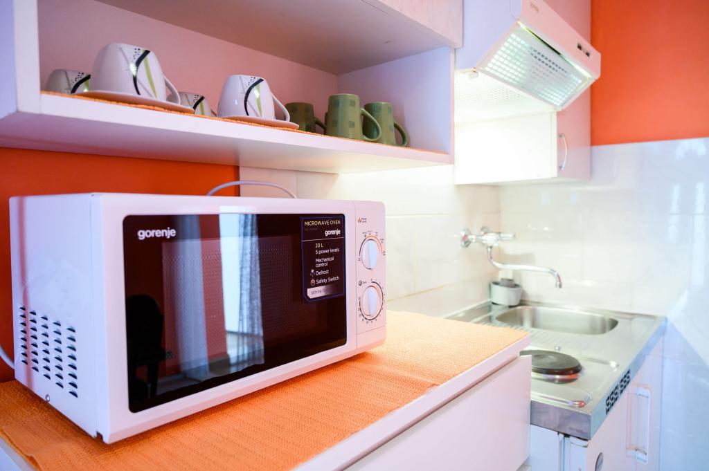 Die Wohnungen sind sauber und komfortabel mit einer schönen Promenade. Frau Gordana ist wunderbar! Ein ruhiger und angenehmer Ort, ein Strand mit viel natürlichem Schatten und ein lokaler Markt nur wenige Minuten von der Wohnung entfernt.