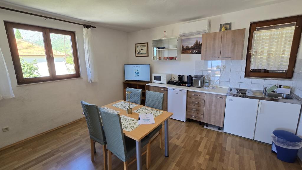 Die Lora Apartments sind familiengeführte Ferienwohnungen in ruhiger Lage in Gradac, nur 100 Meter vom Meer und wenige Gehminuten vom Stadtzentrum entfernt. Die Anlage besteht aus fünf modern eingerichteten und voll ausgestatteten Apartments, die sich ideal für einen angenehmen Aufenthalt von Paaren und Familien eignen. Jedes Apartment verfügt über einen eigenen Balkon oder eine Terrasse. Die Innenräume sind funktional und komfortabel gestaltet. Gäste haben kostenlosen Zugang zu Annehmlichkeiten wie Fahrrädern, Stand-Up-Paddle-Boards und Strandausrüstung für einen aktiven und entspannten Urlaub. Der gepflegte Innenhof lädt zum Verweilen und Entspannen im Freien ein. Die gesamte Anlage bietet Privatsphäre und eine wohnliche Atmosphäre. Dank der zentralen Lage erreichen Sie Strand, Promenade, Geschäfte, Bäckerei, Markt und Restaurants bequem und ohne Auto. Die Lora Apartments sind die ideale Wahl für Gäste, die eine ruhige Unterkunft in der Nähe von Meer und Stadtzentrum sowie einen persönlichen Service wünschen.
