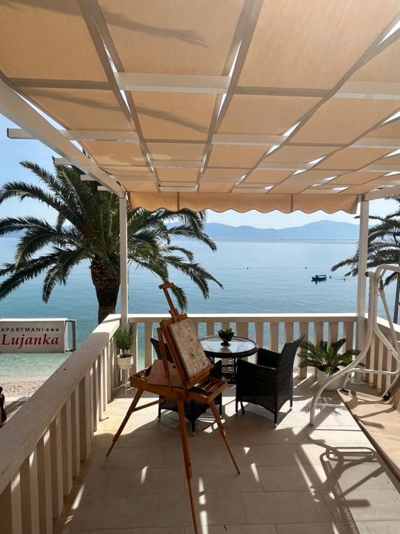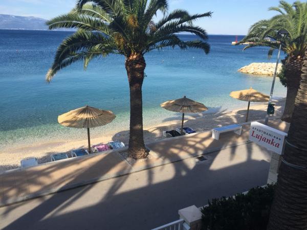 Wir empfehlen eine komfortable, Lujanka Wohnung mit Wärme für alle. Zum dritten Mal verbringen wir hier die Sommerferien und wenn wir nächstes Jahr wiederkommen können. Tolle, unvergessliche Unterkunft! Unsere lieben, hilfsbereiten, aufmerksamen Gastgeber sorgen für den Komfort unserer Gäste.Es gibt bequeme Liegestühle am Strand. Sie bieten ständig frische duftende Handtücher und Bettwäsche Ersatz. Von der Terrasse aus hat man einen wunderschönen Blick auf das Meer.Der Schatten der Palmen ist angenehm zu kühlen. Absolute zentrale Lage ist die Wohnung. Es gibt Geschäfte, Bäckereien, Post-Restaurants, Cafés und nebenan in der Fußgängerzone.In den letzten 20 Jahren haben wir viele Ferien in der Adria verbracht, aber dieser Ort und Unterkunft wurde unser Favorit! Es ist der bequemste und bequemste Ort, um die jährliche Müdigkeit zu entspannen. Wir empfehlen es jedem!