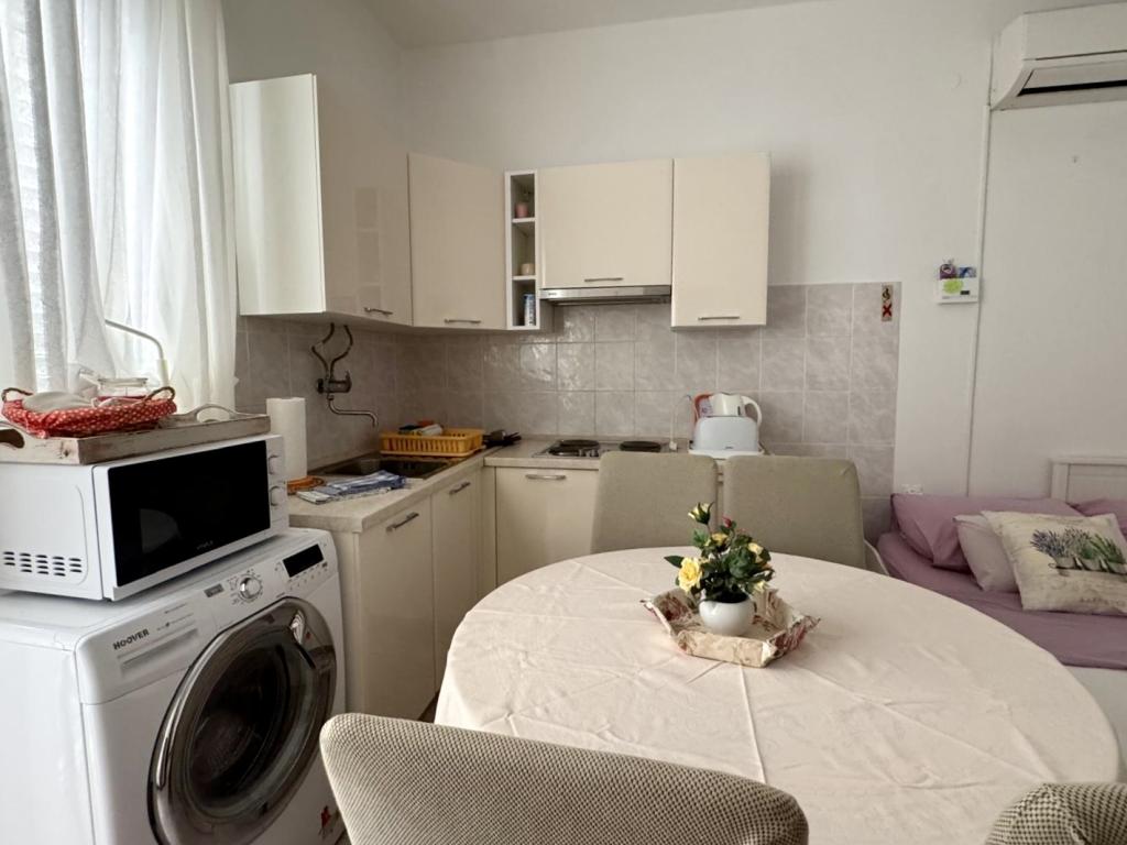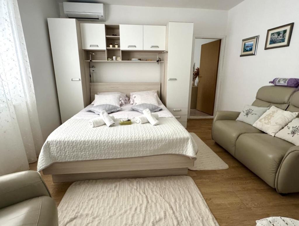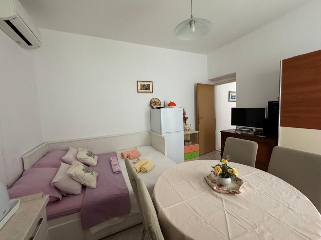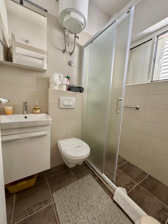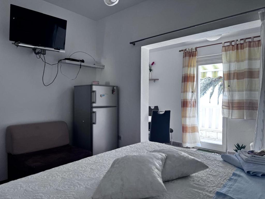 Ich empfehle diesen Ort wärmstens Familien mit Kindern, Paaren oder älteren Menschen, die Wohnung hat alle Erwartungen erfüllt, sauber, bequeme Betten, Waschmaschine, voll ausgestattete 4-Flammen-Küche, Klimaanlage nur 10 Stunden am Tag, aber ausreichend, Waschmaschine, Toaster, großer Kühlschrank, ein ruhiger Ort und eine wunderschöne Aussicht, die exotische Lage des Gebäudes neben wunderschönen Palmen, die Nähe zum Meer und zum Strand, der sauber und nicht überfüllt war - es war eine Offenbarung, und Sonnenliegen und Im Übernachtungspreis enthaltene Sonnenschirme sind wirklich selten. Daneben ist Sudenac und ein Ort mit Döner und Pommes, wenn man das Gebäude verlässt, gibt es überall am Meer und an der Promenade Kneipen, nebenan gibt es auch eine Bäckerei und die Besitzer Leo und Anita kümmern sich darum, dass alles gut für die ist Gäste. Selbst als wir einen Ganztagesausflug machten, wurde unsere Wäsche vor dem Sturm abgeholt, damit sie nicht nass wurde, was sehr schön war. Ich empfehle diesen Ort jedem, der das Meer zum Greifen nah haben möchte, a guter Preis und nicht sehr überfüllt. Ein großer Pluspunkt ist auch die ebene Fläche zum Spazierengehen mit Kinderwagen und Kindern