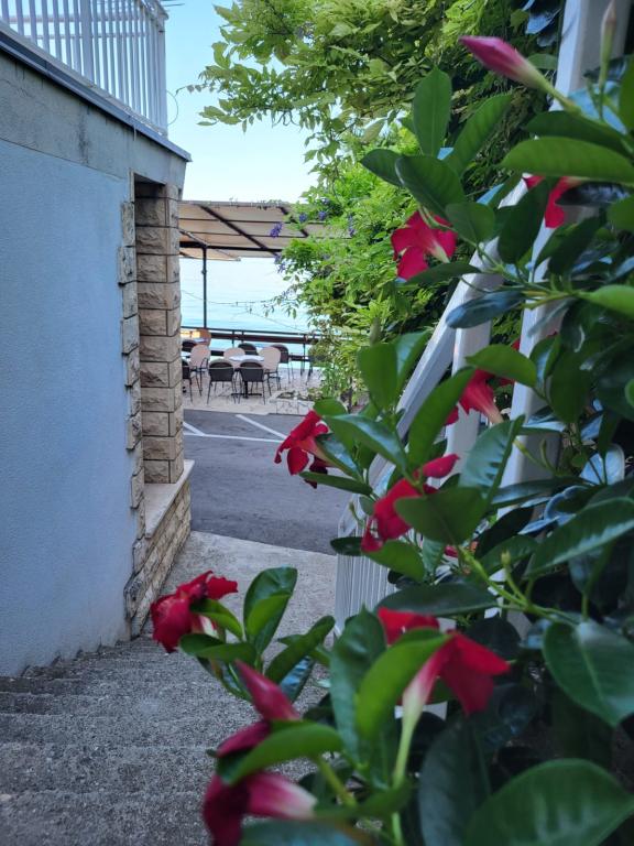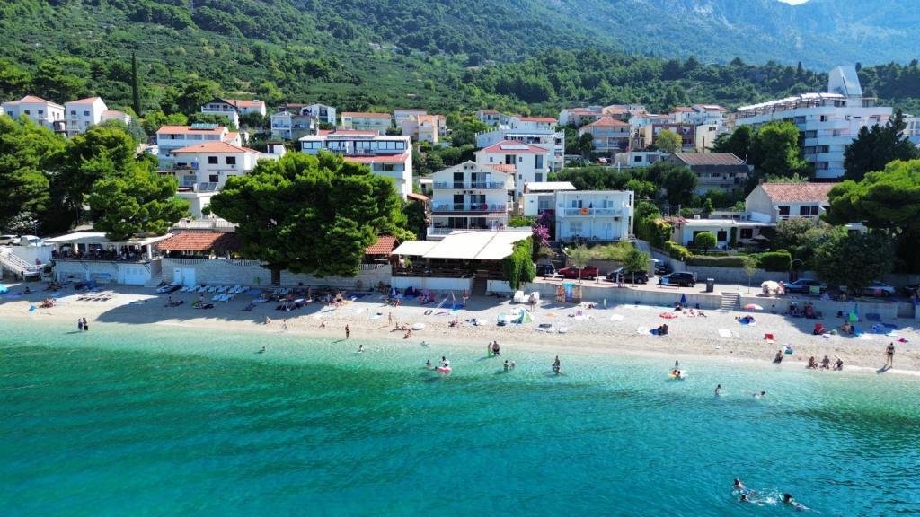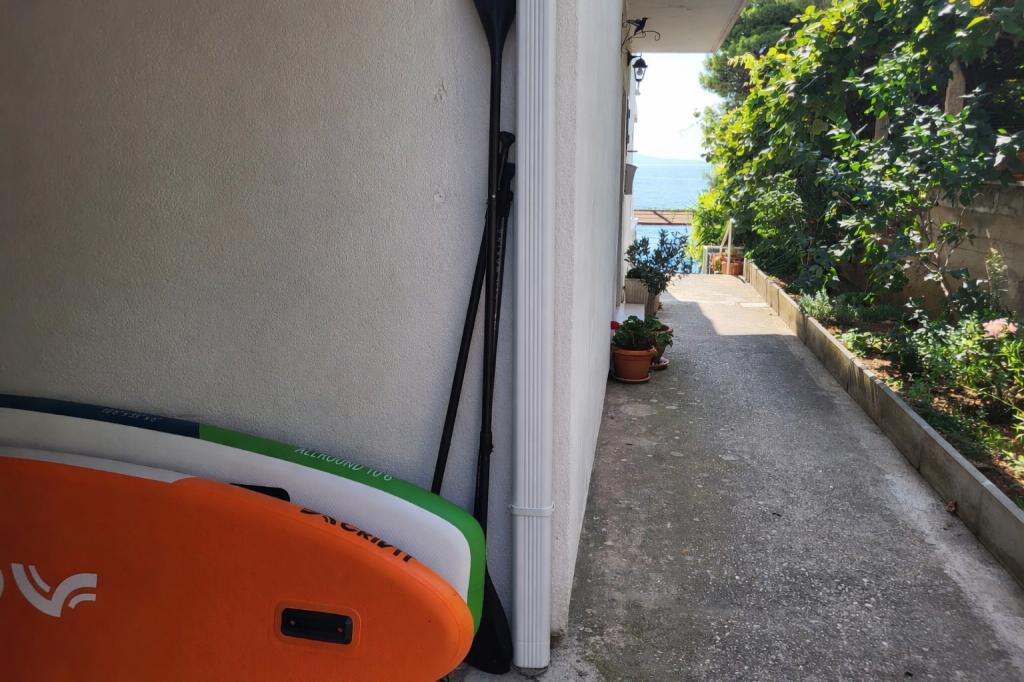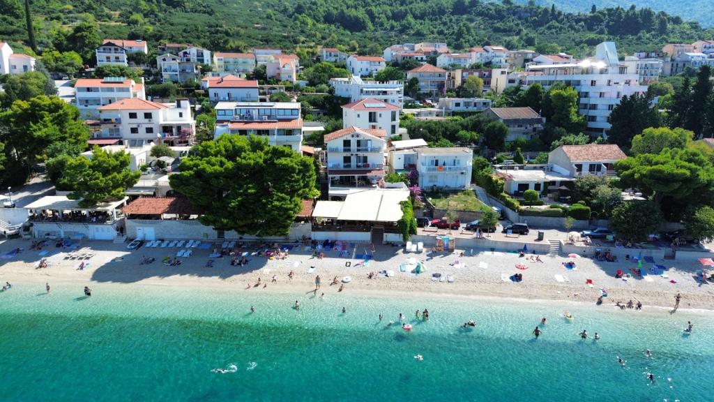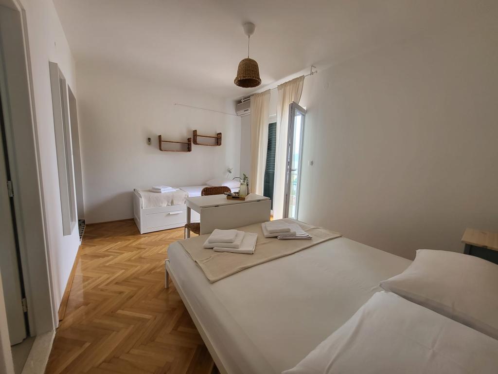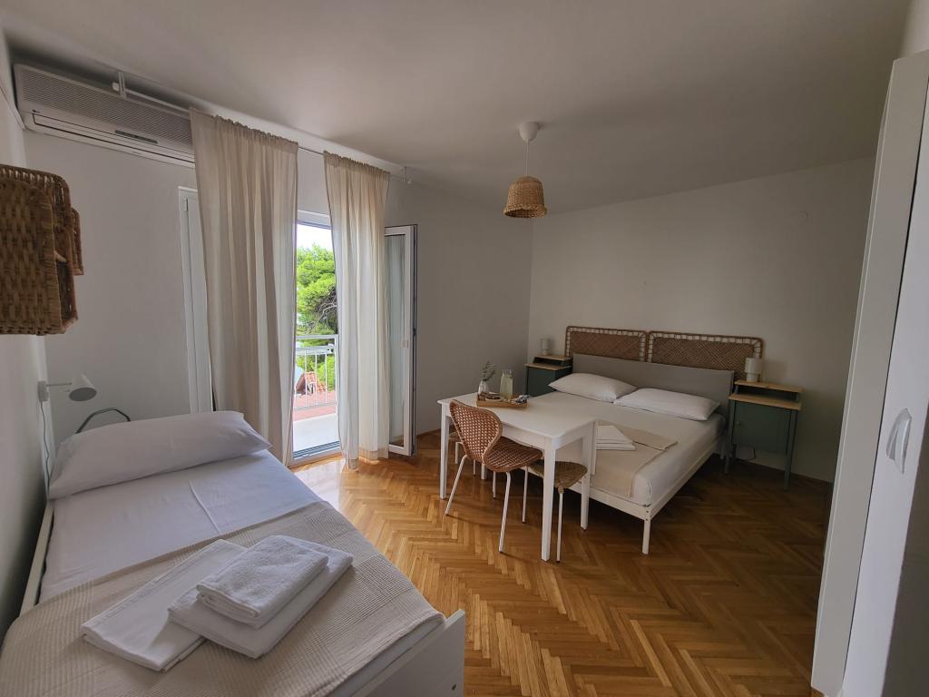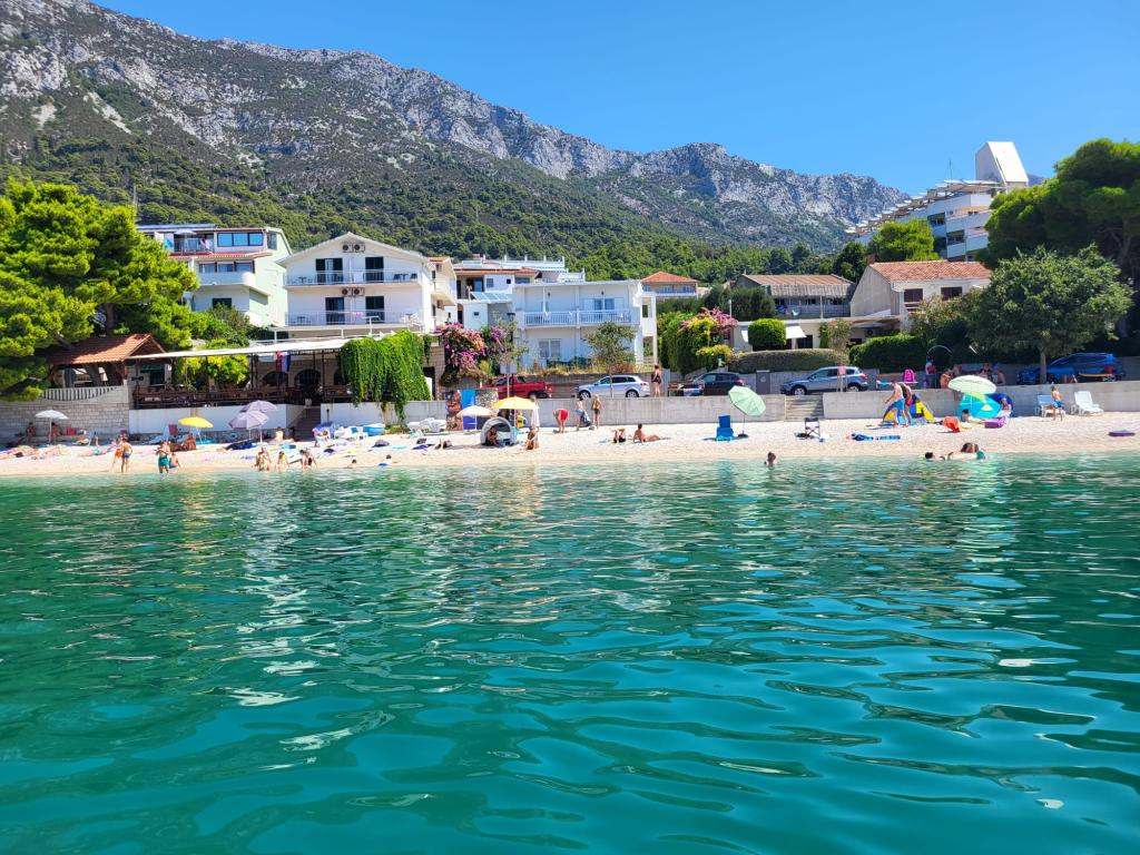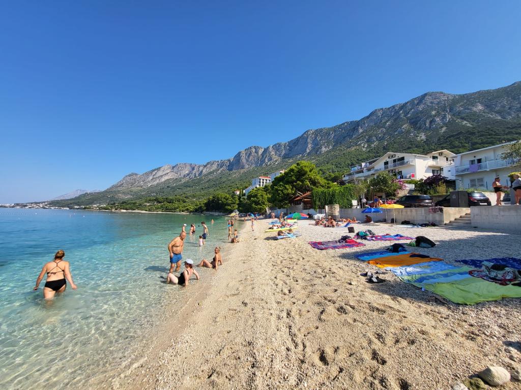 Unser Familienhaus liegt in erster Reihe zum Meer, direkt an einem wunderschönen, schattenspendenden Strand – ideal für einen unbeschwerten Urlaub. Das Haus befindet sich in einem ruhigen Teil von Gradac und ist perfekt für Familien mit Kindern und Paare, die Entspannung, Ruhe und authentisches mediterranes Flair suchen. Wir bieten unseren Gästen sechs komplett neu eingerichtete Wohneinheiten: drei modern ausgestattete Studio-Apartments mit jeweils eigenem Balkon und drei Zimmer mit eigenem Bad, ebenfalls mit Balkon und einer modernen, voll ausgestatteten Gemeinschaftsküche. Alle Wohneinheiten sind hell, gemütlich und komfortabel eingerichtet. In unmittelbarer Nähe des Hauses befinden sich Cafés, Restaurants, eine Bäckerei und ein Geschäft. Das Stadtzentrum ist bequem in 7–8 Minuten zu Fuß erreichbar.