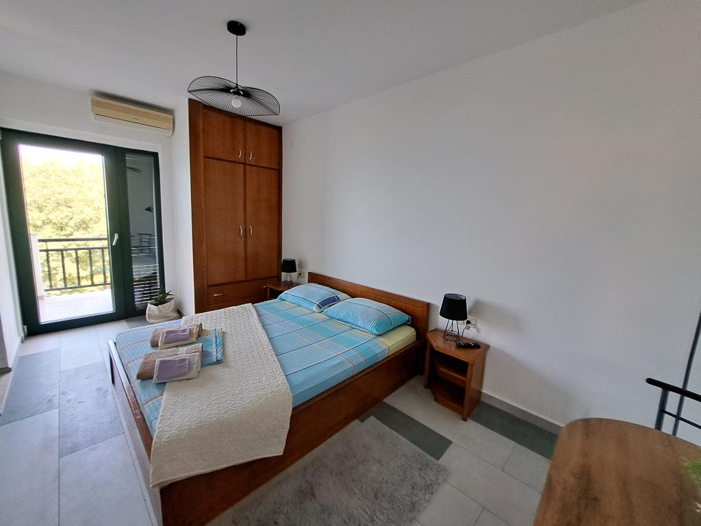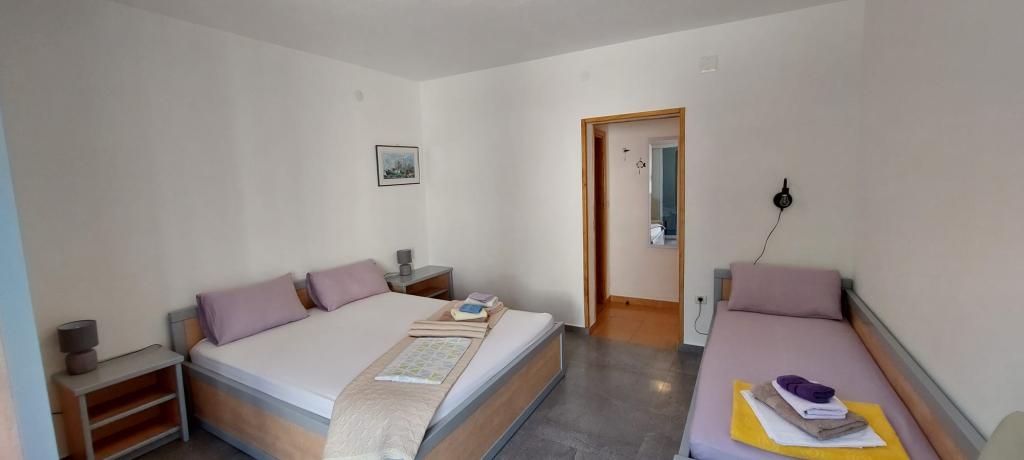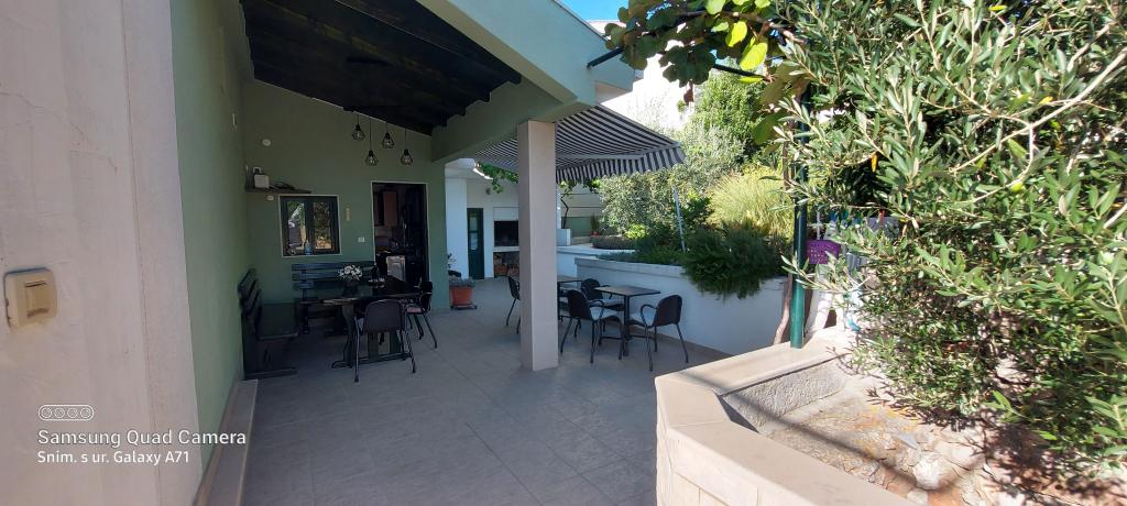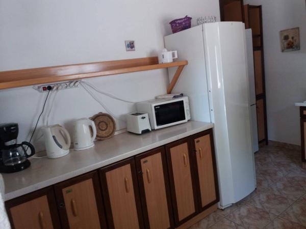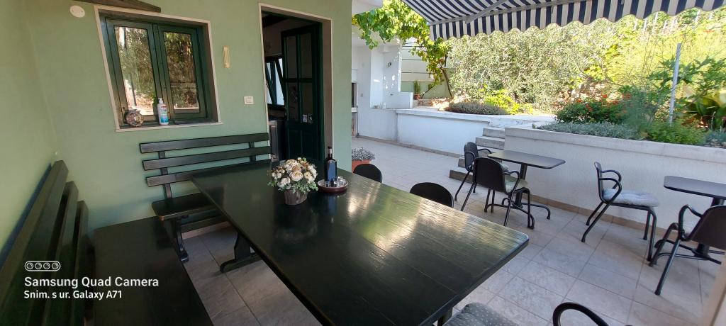 Das Haus liegt in einer ruhigen Bucht, erste Reihe zum Meer, in der Nähe von Sport- und Unterhaltungsmöglichkeiten (Tennisplatz, Minigolf, Wasserpark, Verleih von Wasserscootern, Tretbooten, Fahrrädern). Es ist von einem Garten mit Weinreben, Kiwi, Oliven und Zitronen, Blumen und Kräutern umgeben, die den Gästen zur Verfügung stehen. Im Garten gibt es eine Terrasse mit Pergola, 50 m2, einen Grill und eine Außendusche. Auf der gleichen Etage befinden sich 3 Zimmer mit eigenem Bad, Klimaanlagen, Terrassen, Zimmerkühlschränken und Safes (2 Doppelzimmer und 1 Dreibettzimmer. Wir können ein Zustellbett hinzufügen). Im Innenhof des Hauses befindet sich eine voll ausgestattete Küche mit zwei großen Kühlschränken, einem Gefrierschrank, einem Herd mit Backofen, einer Mikrowelle, 2 Wasserkochern, einem Toaster, einer Filterkaffeemaschine und anderem notwendigen Zubehör. Es gibt einen offenen Parkplatz vor dem Haus, und wir haben auch einen eigenen Parkplatz im Schatten, der abgeschlossen und überdacht ist. Haustiere sind erlaubt.