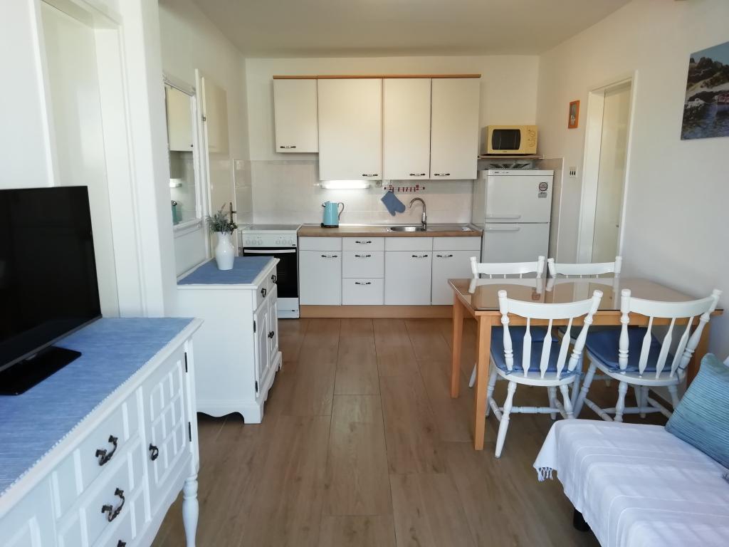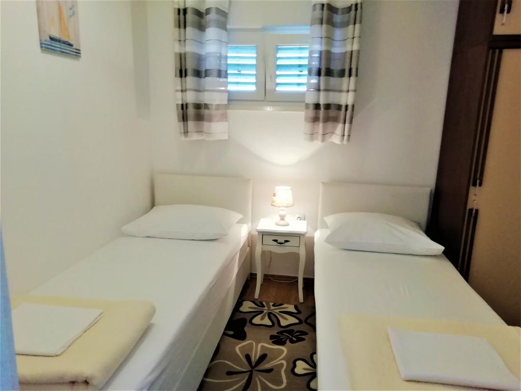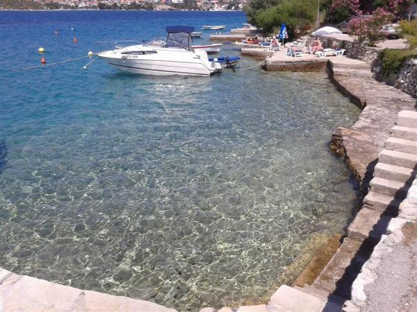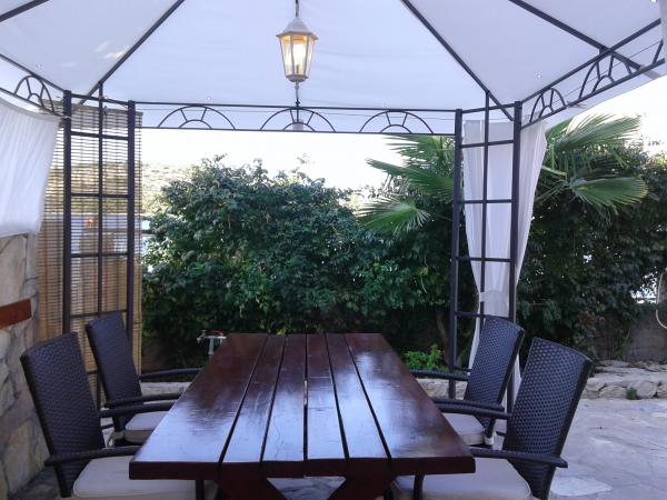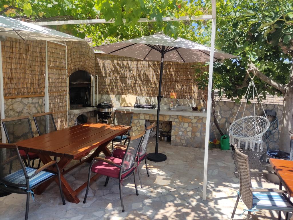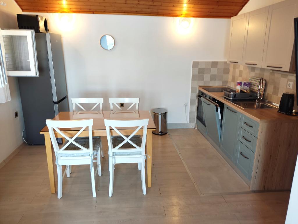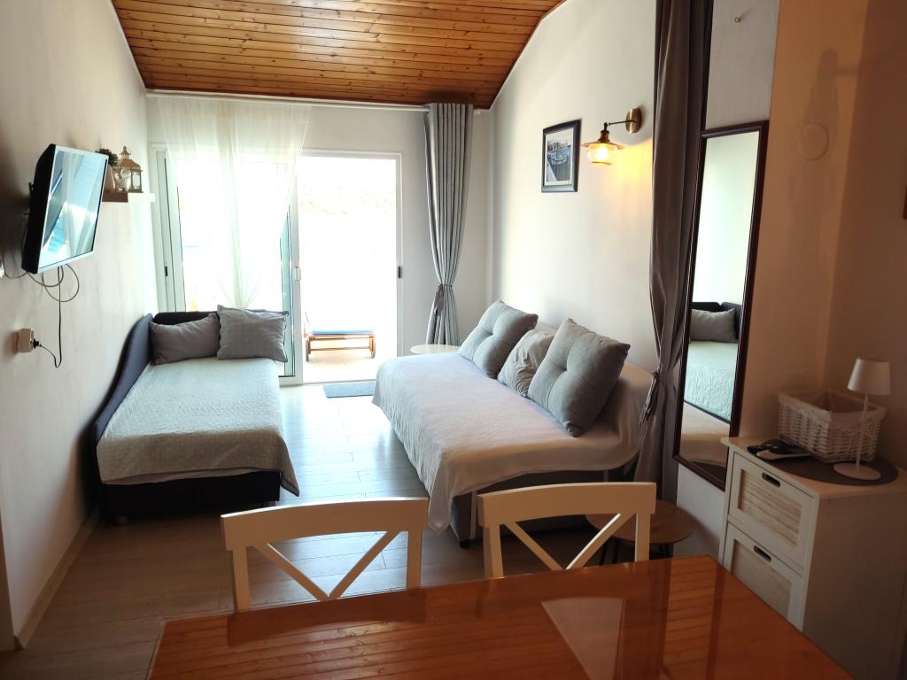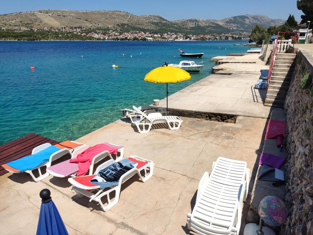 Das Haus hat eine super Lage, nur wenige Meter vom Meer entfernt. Wir waren drei Familien – das ganze Haus gehörte uns. Wir hatten unser eigenes Meer, Sonnenliegen, Sonnenschirme, einen großen Garten und eine Außenküche - alles war im Preis dieser Apartments enthalten. Alles sauber, genügend Platz. Der Besitzer war unglaublich und sehr hilfsbereit. Er traf uns mit kalten Begrüßungsgetränken und empfahl Orte zum Abendessen. Vor unserer Reise schickte er Fotos mit Wasser, Strand für Kinder usw., was wir fragten. In diesem Ort gibt es keine Geschäfte, aber jeden Tag gibt es Einheimische, die jeden Morgen Brot, Eis und Gemüse bringen.