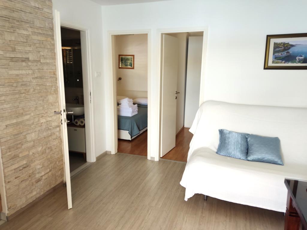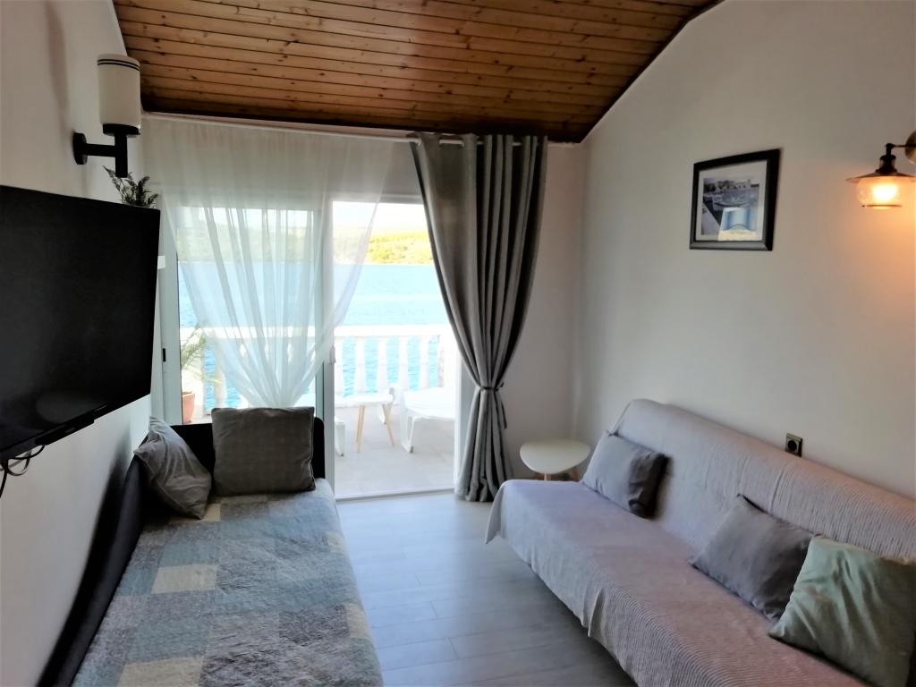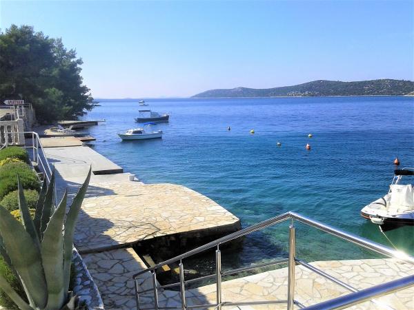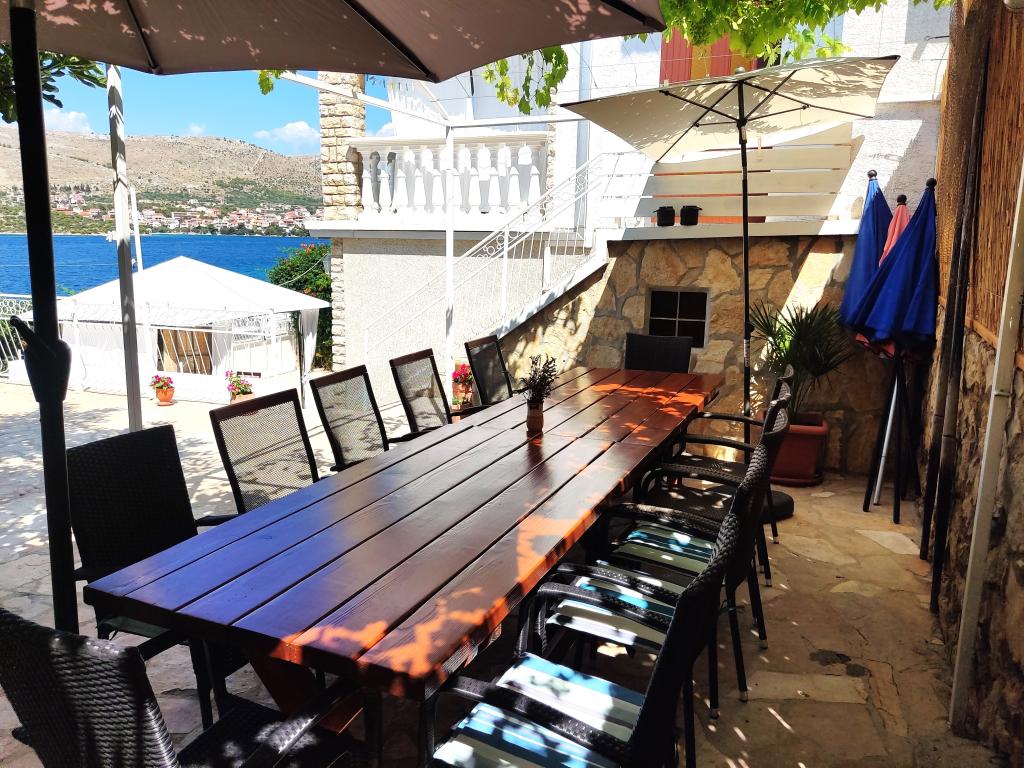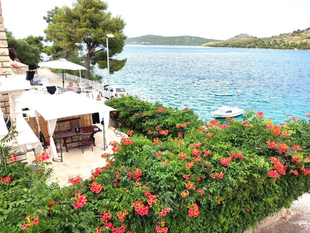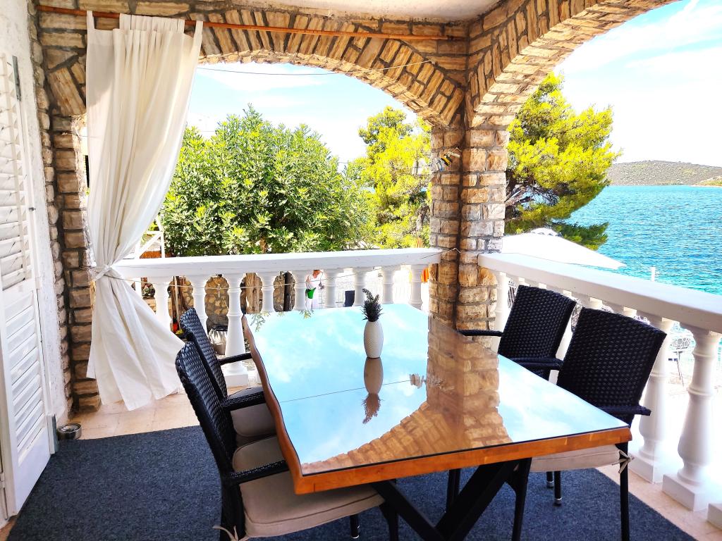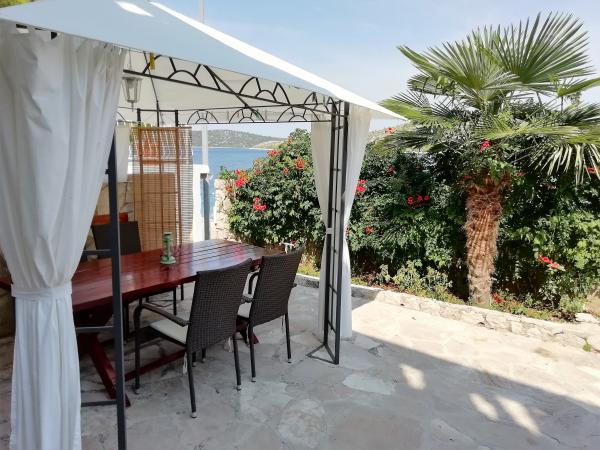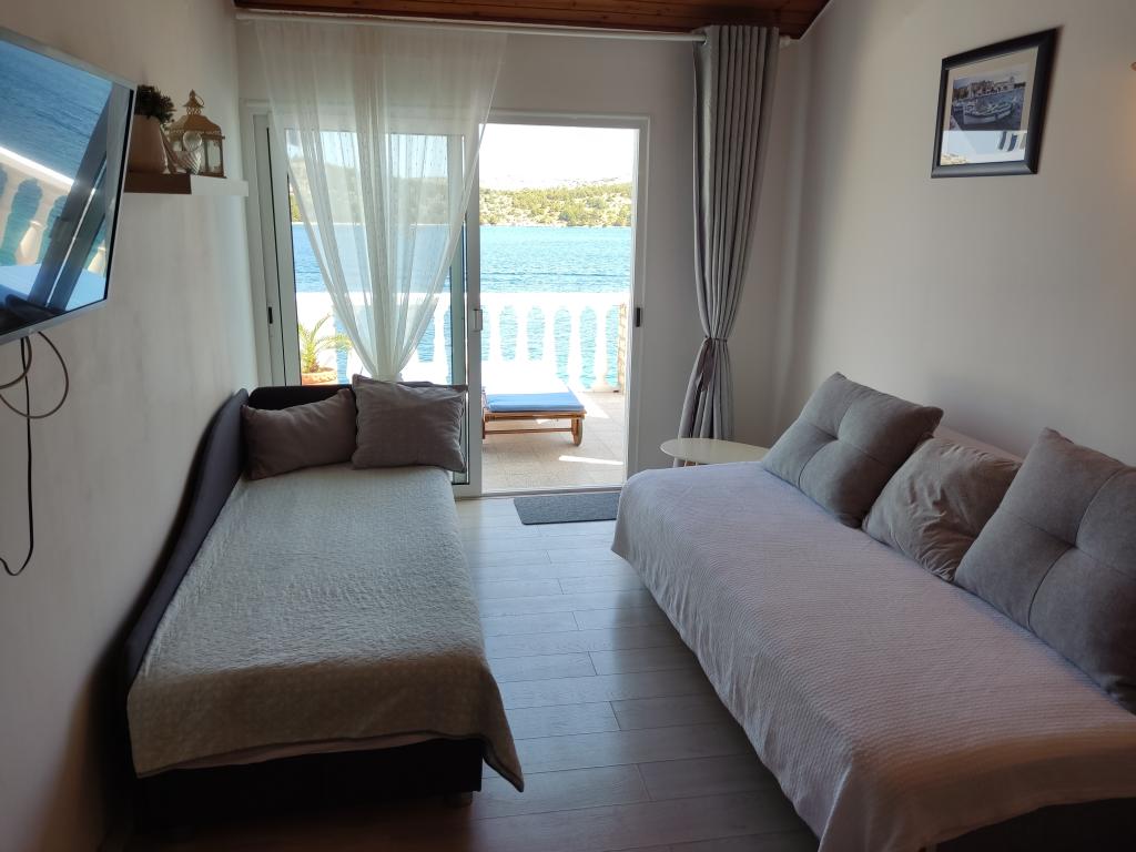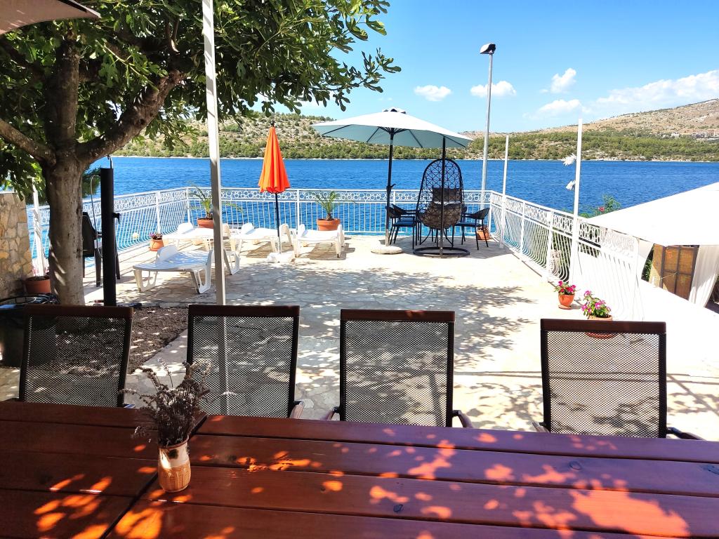 Das ganze Haus mit drei Ferienwohnungen ist zu vermieten, ideal für drei Familien und Gruppen bis zu 12 Personen. Das Haus befindet sich in schöner Lage, 7 m vom Strand entfernt, im ruhigen Touristenort Šparadići. Zwei Ferienwohnungen haben geräumige Terrassen mit wunderschönem Meerblick, die untere Wohnung hat einen umzäunten Garten. Außerdem steht eine große Terrasse über dem Meer mit Grill und zwei Gartentischen zur Verfügung, wo die Gäste gemeinsam im Schatten von Feigen- und Weinbäumen sitzen können. Die Eigentümer wohnen nicht im Haus. Alle Ferienwohnungen verfügen über Klimaanlage, kostenlose Parkplätze, TV, WLAN sowie kostenlose Sonnenliegen und Sonnenschirme am Strand und auf den Terrassen. Bootsanlegestellen sind vor dem Haus vorhanden. Ein idealer Ort für Ihren Familienurlaub. Herzlich willkommen.