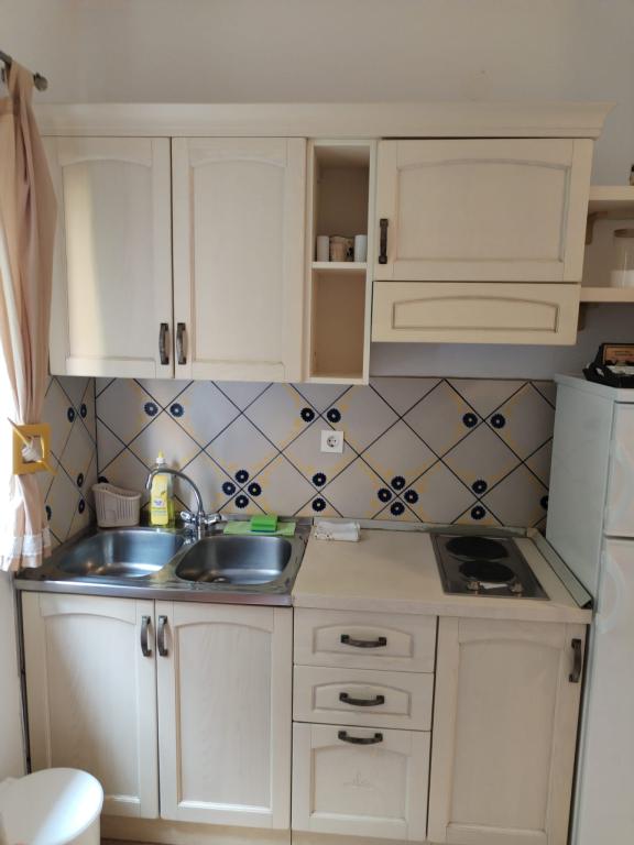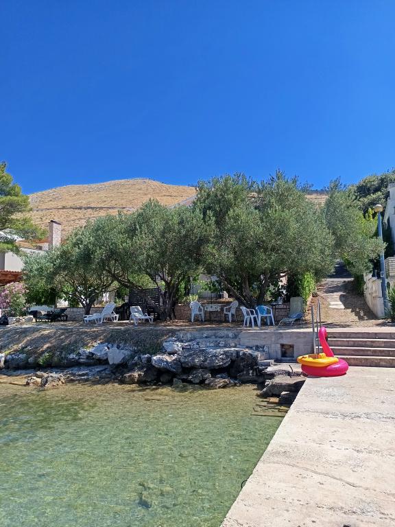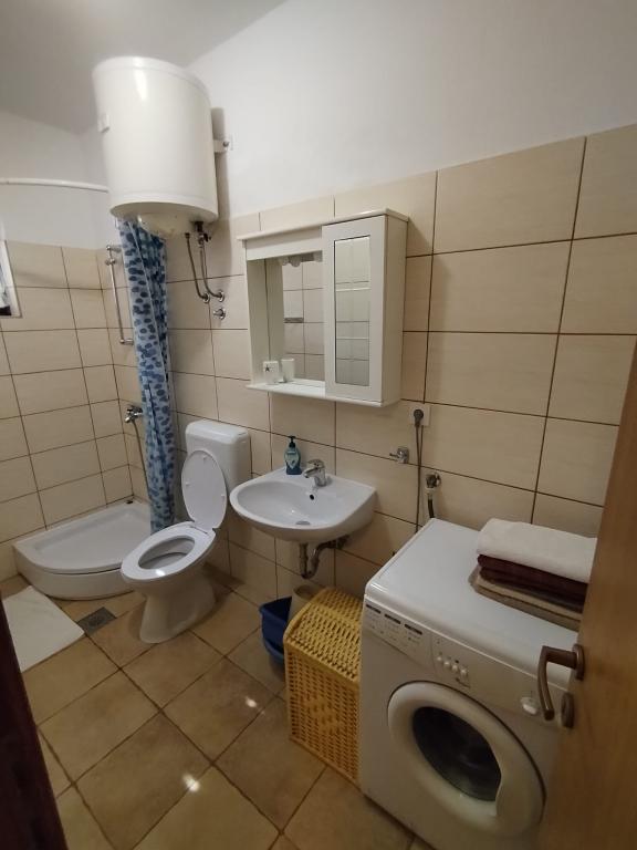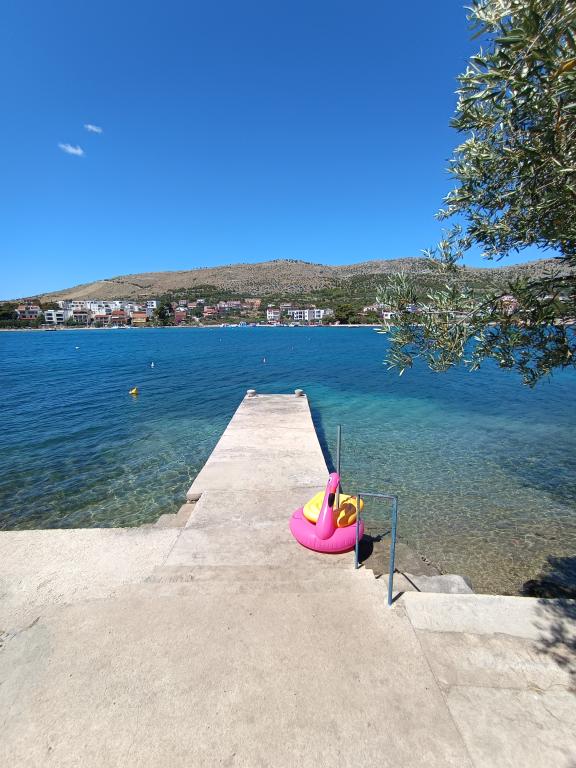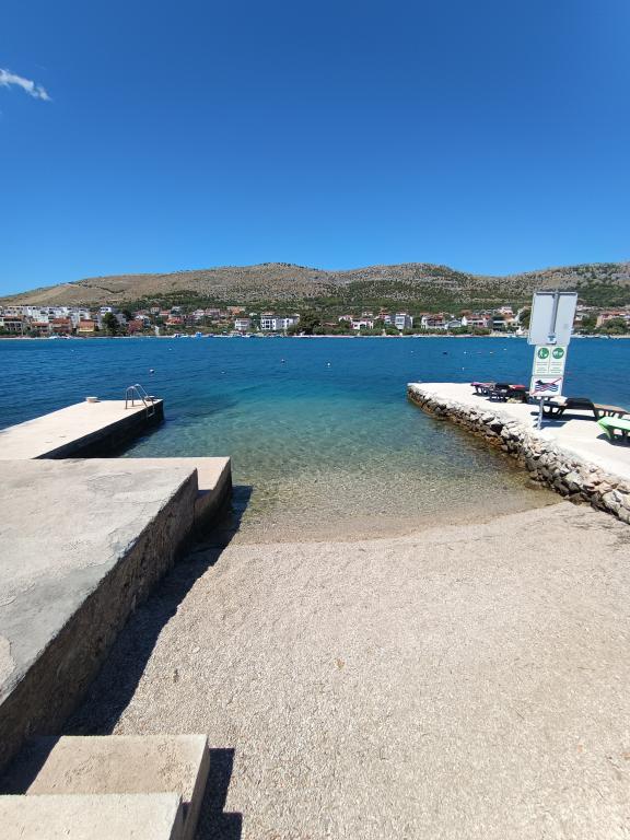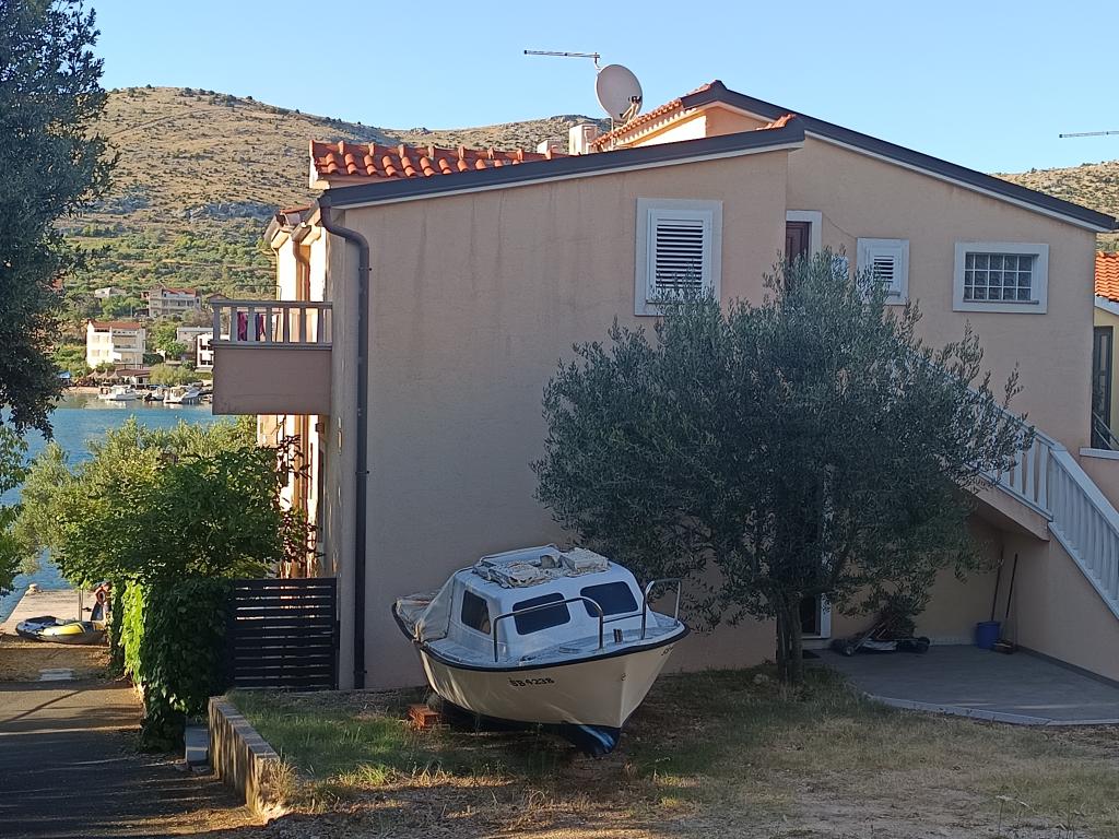 Die Anlage liegt direkt am Meer unter der Nordseite des Hügels Jelinjak mit dichten Pinienwald und unter der Adriastraße auf der Südseite des langen schönen Bucht, wo Siedlungen befinden Grebaštica und Sparadici abgedeckt entfernt. Es ist ein neu erbautes Gebäude, das aus drei Etagen und ein Erdgeschoss durch den Eigentümer der Wohnung und ersten Stock mit zwei Wohnungen und zweiten Stock mit einer Wohnung verwendet wird, besteht .. Alle Wohnungen, vor allem die auf der zweiten Etage, die modern eingerichtet und ausgestattet ist, Balkon mit einem schönen Blick auf das Meer und den größten Teil des Dorfes Grebaštica vorausgesetzt, es gibt eine Terrasse in der ersten Etage, der größten, die sich von einer Seite zur anderen Objekt. Bei Verfügbarkeit von nur einem Terrasse der Wohnung können als eine Einheit verwendet werden, während im Falle der Verfügbarkeit beider Wohnungen Terrasse diagonal geteilt hohe Bildschirm, die einen guten Sichtschutz für jeden Benutzer der Wohnung bietet. Der Strand ist ein Beton-Kies mit schattigen Bereichen unter Bäumen.