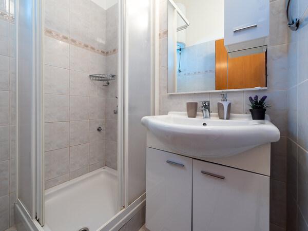 Die Apartments Gulin befinden sich im Zentrum von Sparadici an der Riviera Primosten. Umgeben von einem Kiefernwald und nur 20 m vom Meer entfernt, bieten sie eine ideale Wahl für Ruhe und Erholung ohne Menschenmassen. Die Apartments Gulin bieten fünf Apartments mit einer Gesamtkapazität von 22 Betten. Den Gästen stehen zwei Apartments mit zwei Schlafzimmern mit 4 Betten und drei Apartments mit einem Schlafzimmer mit 2 Betten zur Verfügung. Alle Apartments verfügen über ein Bad mit Warmwasser, Klimaanlage, Sat-TV und Internet. Alle Gäste haben einen sicheren Parkplatz vor dem Apartment und die Möglichkeit, einen gemeinsamen Außengrill zu nutzen. Sie können den Strand vor dem Apartment oder einen der nahe gelegenen Beton-, Fels- oder Kiesstrände genießen.