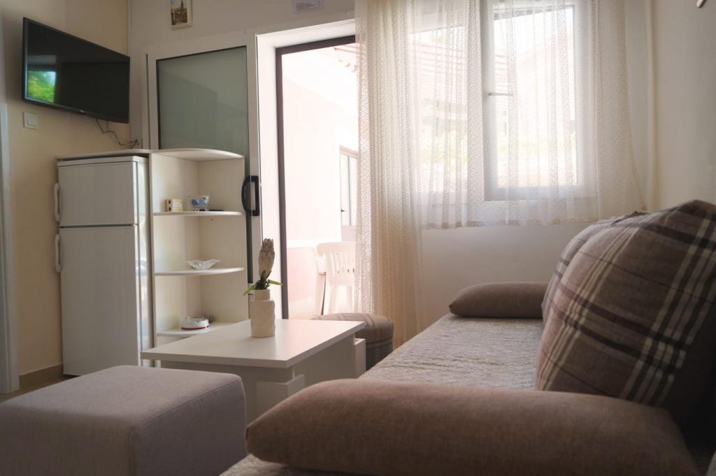 Die Wohnungen befinden sich in einem kleinen ruhigen Ort namens Šparadići in der Nähe von Grebastica, sehr nah am Meer, getrennt von dem Lärm, dem Lärm des Autos. Der Ort ist idyllisch für einen Urlaub und hat ein klares und klares Meer. Die Wohnungen haben große Terrassen mit Blick auf das Meer, bewachter Parkplatz, WI-FI und Kinderbetten. Der Strand ist 7 Meter entfernt. Möglichkeit der Verbindung zu einem Boot. Šparadići sind weit von Sibenik 16 km, Primošten 10 km und Nationalpark Krka 40 km entfernt. Willkommen.