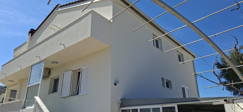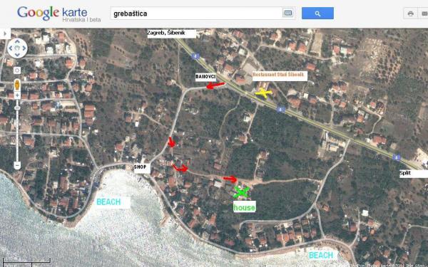 Grebaštica ist ein malerisches Städtchen in der gleichnamigen Bucht zwischen Šibenik und Primošten. Die Strände sind Kieselstrände mit kristallklarem Wasser. Der Ort ist ideal für einen ruhigen Familienurlaub. Wir vermieten eine komfortable Ferienwohnung im 1. Stock (70 m²), bestehend aus: 2 Schlafzimmern mit Doppelbetten, Badezimmer mit WC (Dusche), Wohnzimmer und Küche (Kühlschrank mit Gefrierfach), 20 m² Terrasse mit Meerblick. Die Wohnung ist klimatisiert und verfügt über Sat-TV, WLAN, Grill und Garten. Wir bieten außerdem ein frisch renoviertes Studio-Apartment für 2 Personen an. Herzlich willkommen! Ihre Gastgeber – Mirko und Jadranka; Tel.: +385 95 832 3015