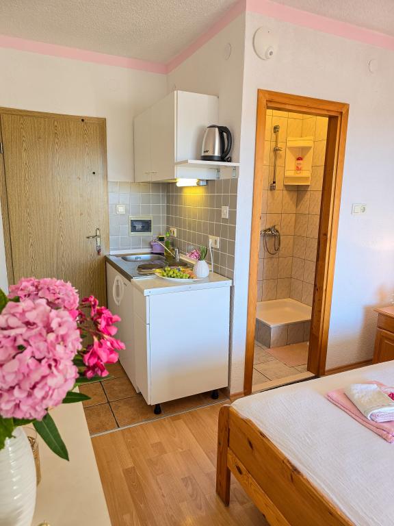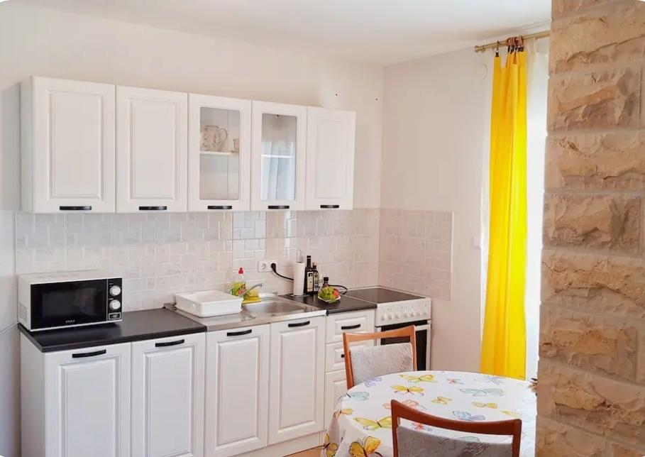 Große smjetsaj, tolle Aussicht vom Balkon, sehr ordentlich Wohnungen; sehr freundliche Gastgeber, unaufdringlich und sehr zugänglich für alle Informationen. Ruhige Lage, Parkplatz direkt vor dem Haus, Supermarkt in der Nähe, zu Fuß 15 Minuten ins Zentrum. Plaza in Schach Pokonji auf der schönen, sauberen Meer, mit mehreren Restaurants, in der Nähe der Weg zum Strand ist steil (große Ausbildung), hat aber einen Weg, um mit dem Auto zu erreichen. Äußerst zufrieden.