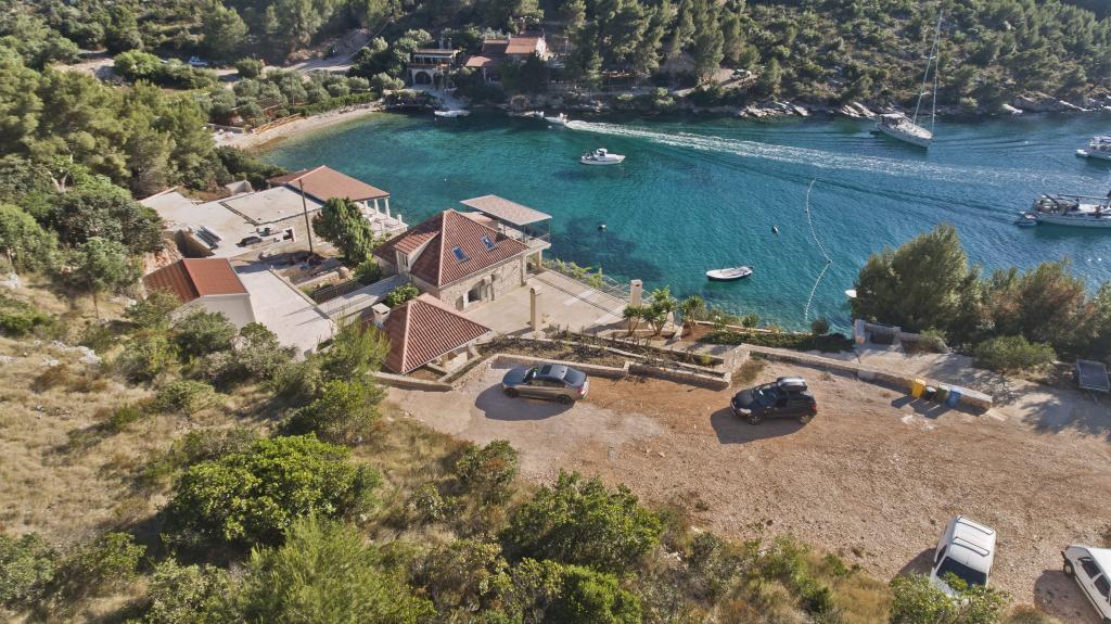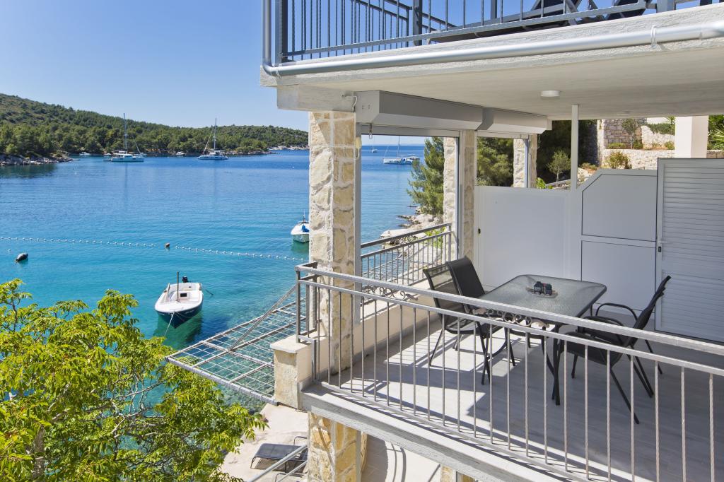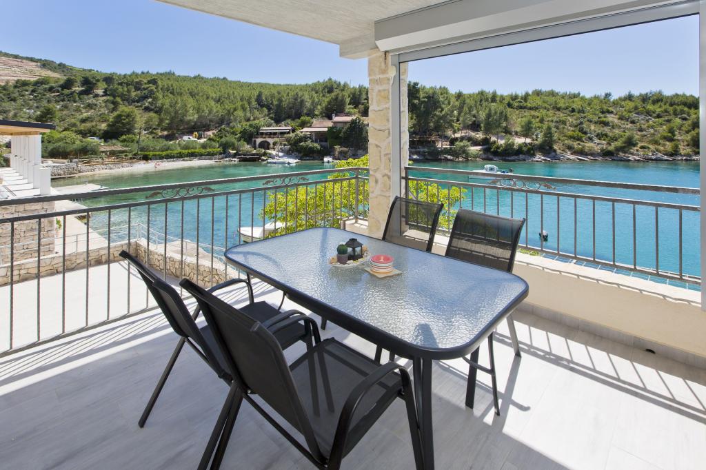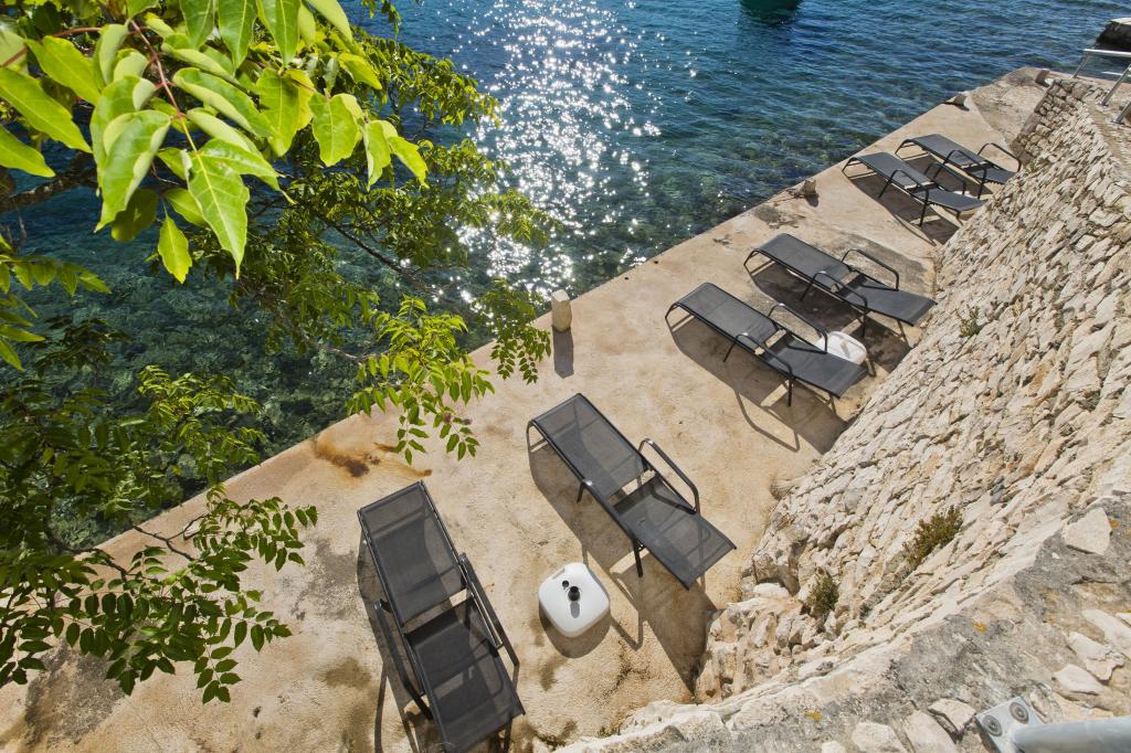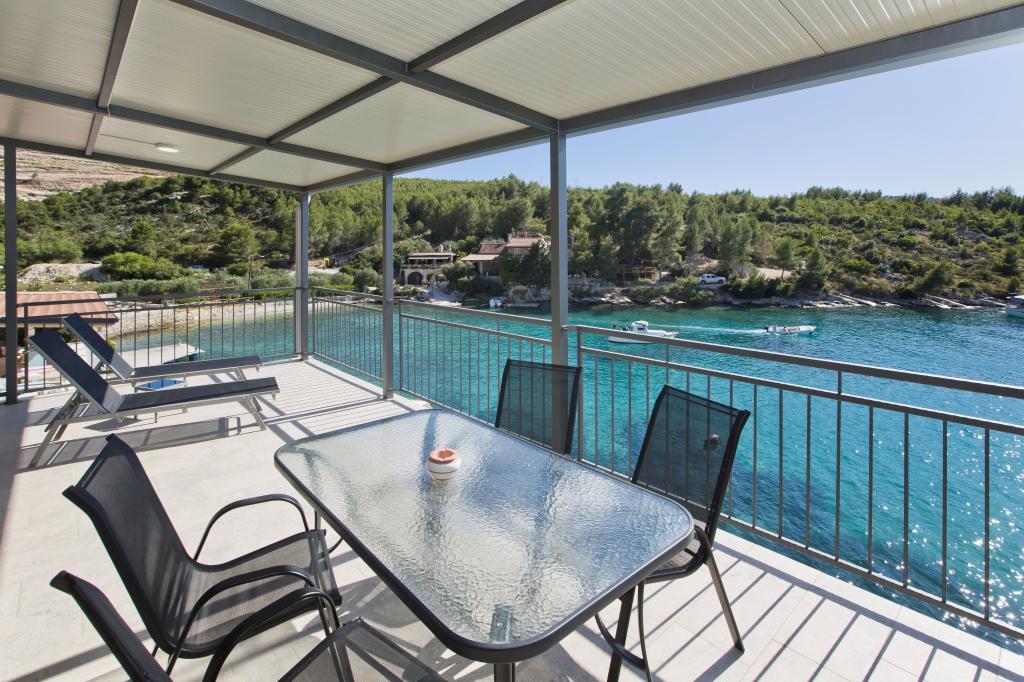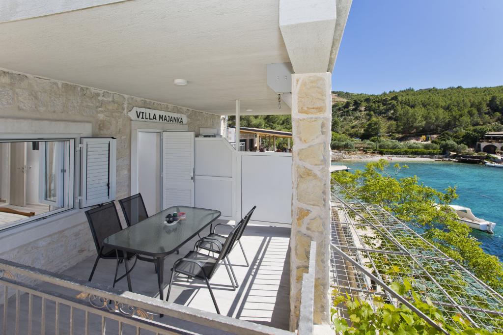 Ferienwohnungen in der ruhigen Bucht von 3,5 km von der Stadt Hvar. Das Haus liegt in der Nähe des Lagers Vira, gegenüber von der Taverne Ringo. Wunderbare Wahl für einen ruhigen Urlaub am Meer, doch Nähe zu allen Annehmlichkeiten. Bis das Haus ist eine private Straße, und es ist möglich, aus den Zugang zum Meer. Das Haus, in dem es Wohnungen verfügt über einen Privatstrand mit Liegestühlen und Dusche, Bootsanlegestellen, führt eine Treppe zum Eingang. Wohnungen bestehen aus Toilette, Küche, Schlafzimmer und eine große Terrasse, die über dem Meer befindet. Wir diskutieren auch ein Outdoor-Grill, natürlichen Schatten, schöne Aussicht und Privatparkplatz. Der Strand ist steinig und die Seitenschiffe haben flache Steine geeignet zum Sonnenbaden, vor unerwünschten Ansichten geschützt.