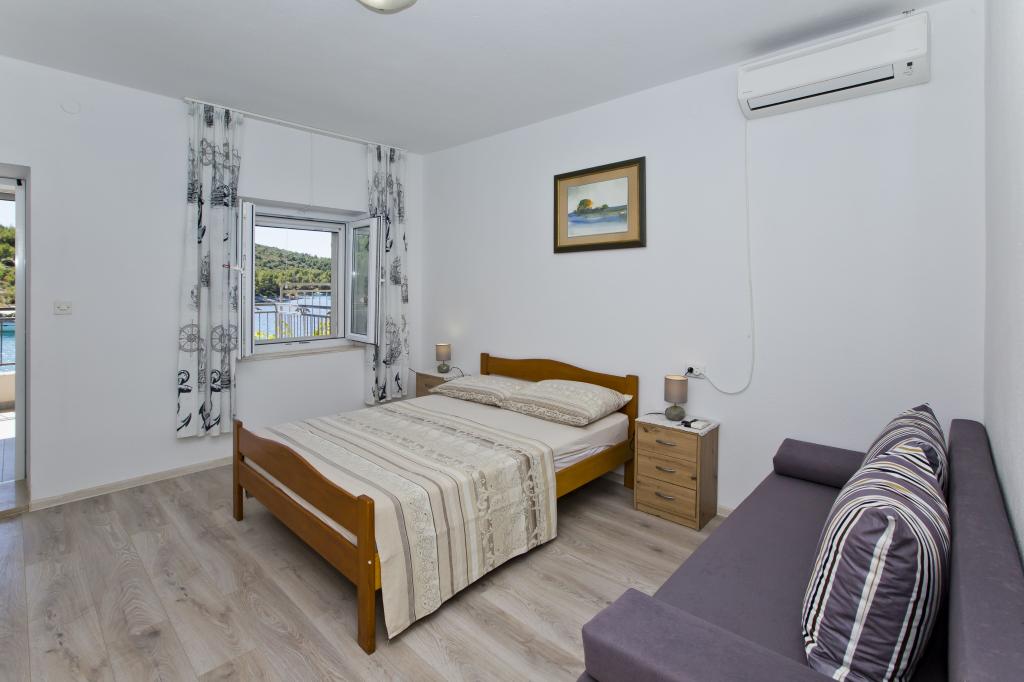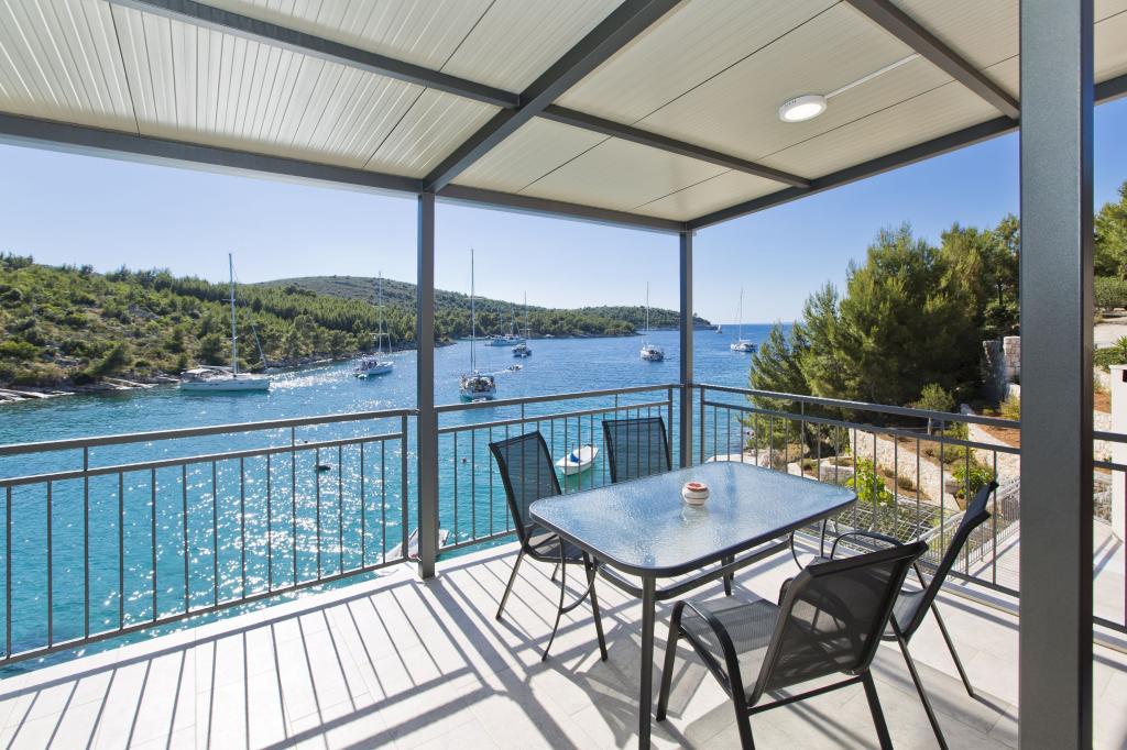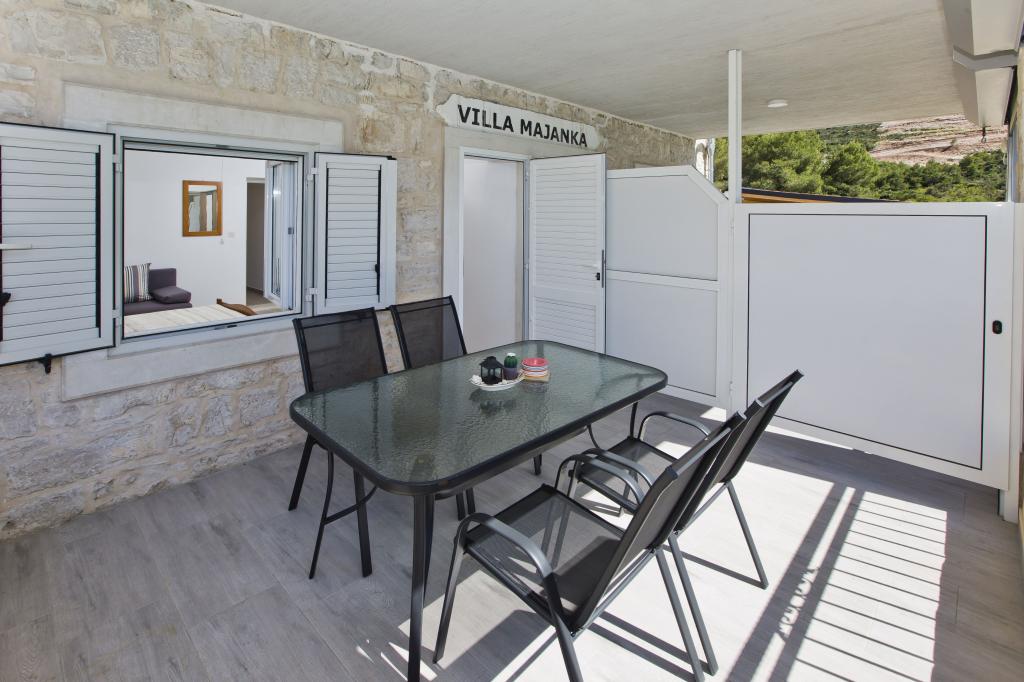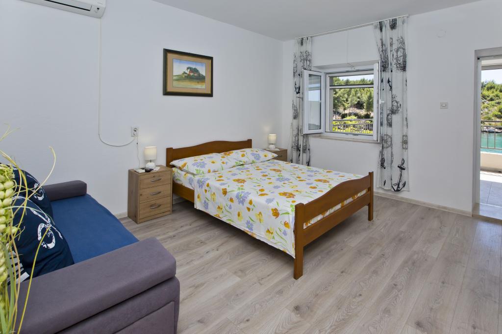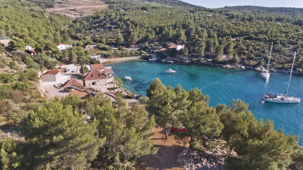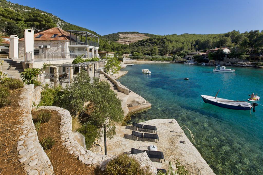 Ferienwohnungen in der ruhigen Bucht von 3,5 km von der Stadt Hvar. Das Haus liegt in der Nähe des Lagers Vira, gegenüber von der Taverne Ringo. Wunderbare Wahl für einen ruhigen Urlaub am Meer, doch Nähe zu allen Annehmlichkeiten. Bis das Haus ist eine private Straße, und es ist möglich, aus den Zugang zum Meer. Das Haus, in dem es Wohnungen verfügt über einen Privatstrand mit Liegestühlen und Dusche, Bootsanlegestellen, führt eine Treppe zum Eingang. Wohnungen bestehen aus Toilette, Küche, Schlafzimmer und eine große Terrasse, die über dem Meer befindet. Wir diskutieren auch ein Outdoor-Grill, natürlichen Schatten, schöne Aussicht und Privatparkplatz. Der Strand ist steinig und die Seitenschiffe haben flache Steine geeignet zum Sonnenbaden, vor unerwünschten Ansichten geschützt.
