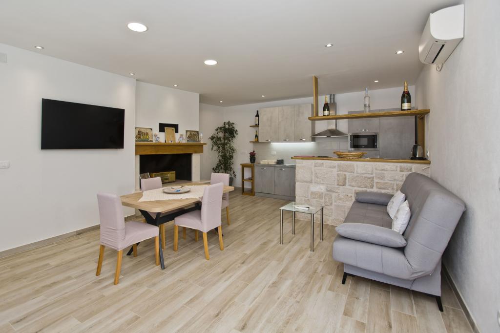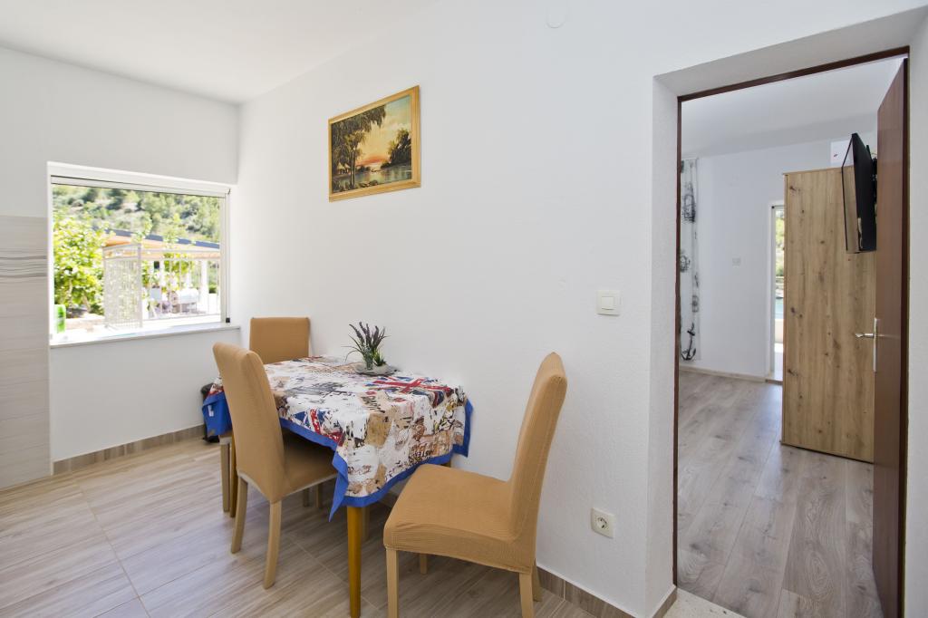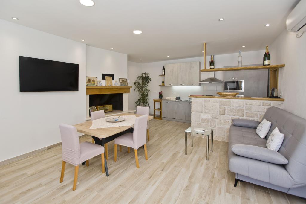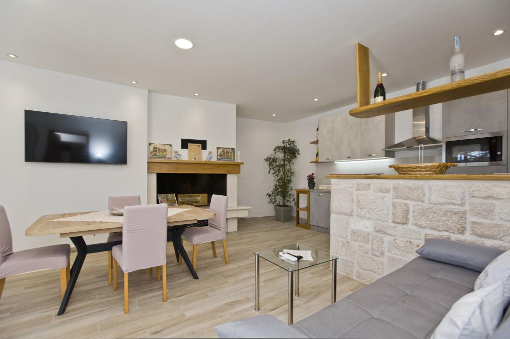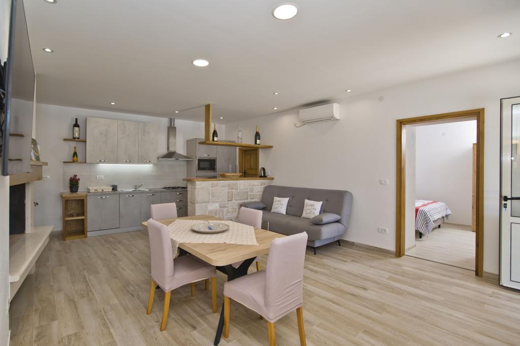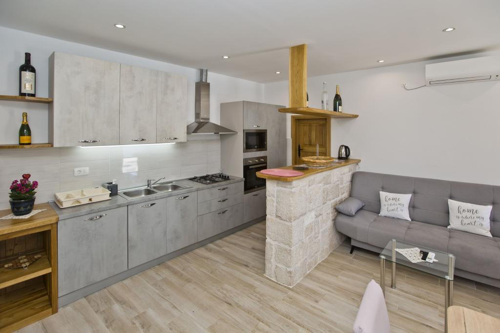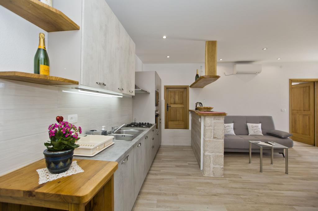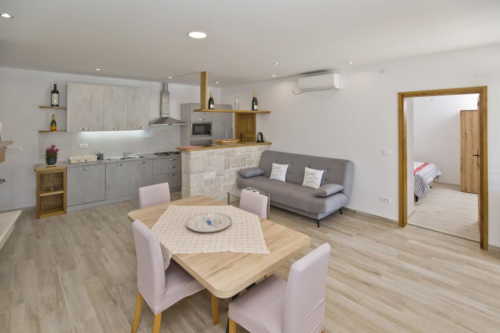 Die Wohnung ist ausgezeichnet, modern und mit allem ausgestattet, was man braucht. Die Küche ist komplett ausgestattet, es hat uns an nichts gefehlt. Das Meer ist nur wenige Schritte von der Wohnung entfernt und am Steinufer gibt es Liegestühle und eine Außendusche. Die Bucht ist ruhig und still, der Himmel auf Erden, mit zwei Tavernen auf der anderen Straßenseite. Wir haben unseren Aufenthalt genossen, Sunčica ist ein toller Gastgeber. Wir werden auf jeden Fall wiederkommen. Empfehlung für heimischen Rotwein und Kräutermedizin.