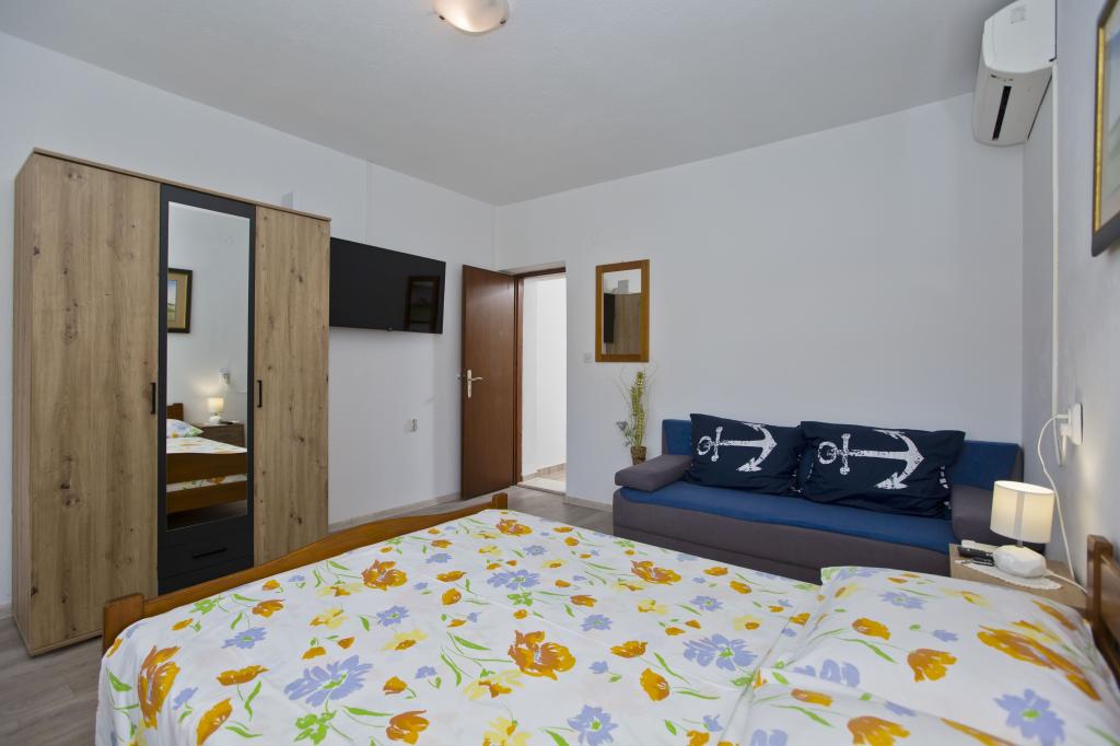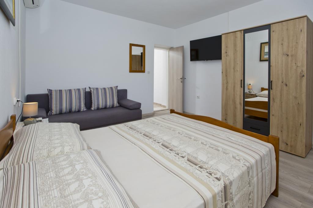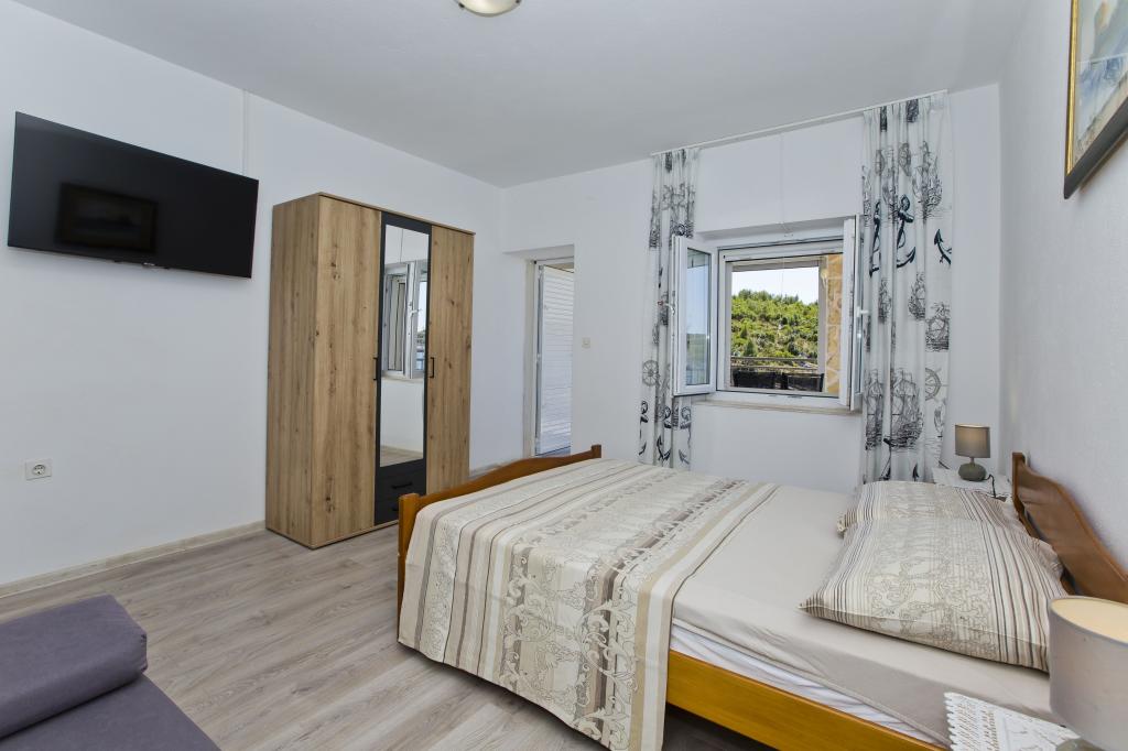 Mein Mann und ich wohnten Anfang Juni 2023 in einer der Miličić-Wohnungen (Villa Majanka). Villa Majanka liegt direkt am Meer in der Bucht von Pribinja. Den Gästen steht direkt vor dem Haus ein Zugang zum Strand sowie Liegestühle und eine Dusche mit Frischwasser zur Verfügung. Die Zufahrt zum Haus erfolgt über eine Privatstraße, ein großzügiger Parkplatz steht zur Verfügung. Die Wohnung ist modern und komfortabel eingerichtet, praktisch frisch renoviert. Das Badezimmer ist neu und verfügt über eine begehbare Duschkabine. Die Küche, in der sich auch ein Esstisch befindet, ist mit einem Herd (Gas- und Elektroherd), einem Backofen, einer Mikrowelle und natürlich einem Kühlschrank ausgestattet. Was das Geschirr angeht, haben die Besitzer an alles gedacht – von Töpfen, Pfannen, Qualitätsmessern, Schöpfkellen bis hin zu Zitrussieben, Tellern (flach, tief, Dessertteller), Gläsern, Tassen in drei Größen ... Das Zimmer ist mit einem Doppelbett sowie einem Schlafsofa, Nachttischen, Kleiderschrank, TV und Klimaanlage ausgestattet. Der Raum öffnet sich auf eine großzügige überdachte Terrasse, die auch über eine elektrische Jalousie verfügt, die nachmittags hilfreich ist, wenn auf dieser Seite die Sonne scheint. Auf der Terrasse stehen ein großer Tisch sowie zwei bequeme Stühle und zwei Terrassensessel. Rund um das Haus gibt es mehrere kaskadenförmige Terrassen, auf denen sowohl Tische als auch Stühle oder Sessel aufgestellt sind. Rund um das Haus gibt es gemauerte Grills. Die Eigentümer sind die Familie Miličić, die außergewöhnliche Gastgeber sind – freundlich, hilfsbereit und hilfsbereit. Wir empfehlen die Unterkunft in dieser Villa in der Nähe von Miličić wärmstens! Ein Juwel am Meeresufer!