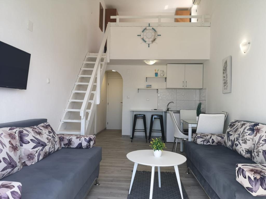Die Apartments befinden sich in erster Reihe zum Meer, entlang der Promenade, am Strand. Der Balkon bietet einen schönen Blick auf den Strand und ganz Igrane.