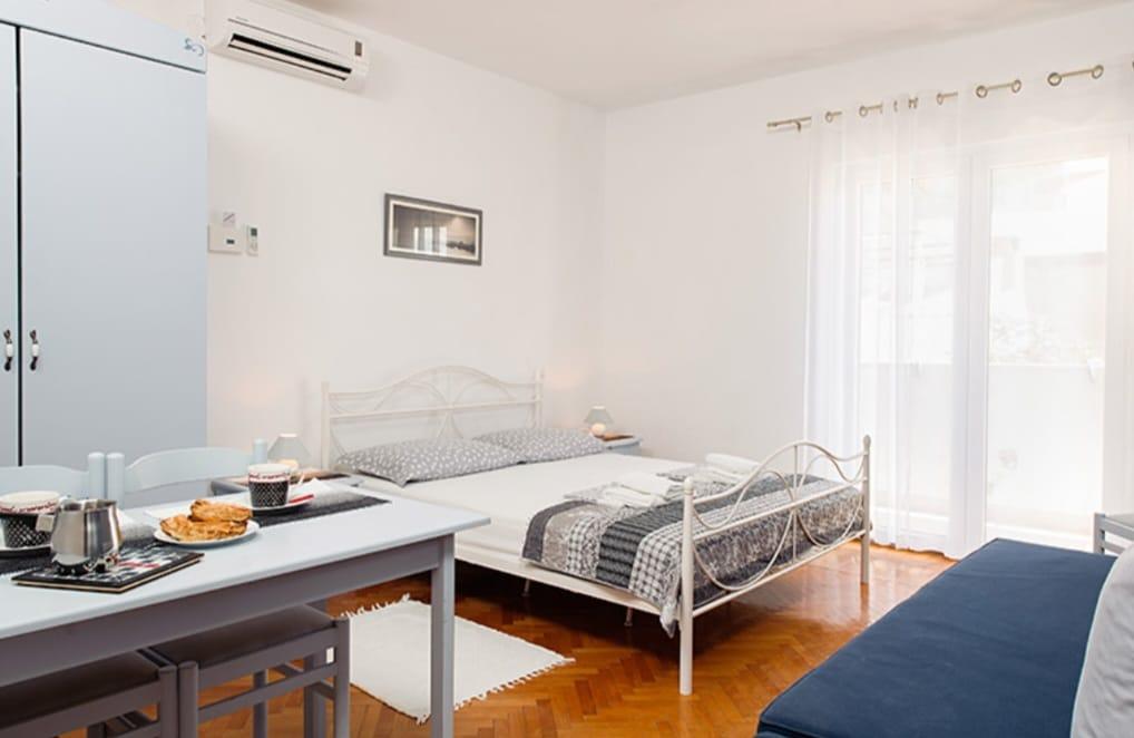 Die Lage direkt am Strand und der Meerblick von der Terrasse am Abend sind unbezahlbar. Diana war telefonisch immer erreichbar und oft vor Ort. Sie war wie immer äußerst freundlich und hilfsbereit. Das Zimmer war sauber und wie beschrieben ausgestattet und die Einrichtung machte den Aufenthalt angenehmer. Es gab keine zusätzlichen Gebühren, zB für das Parken. Das WLAN war sehr effizient – es gab einen Router im Zimmer. Die Küchenzeile war mit allem ausgestattet, was zwei Personen brauchen, einschließlich eines Kühlschranks. Alle notwendigen Geschäfte und Restaurants sind in 5 Gehminuten erreichbar. Es ist ein ruhiger Ort, der gelegentlich durch Live-Musik im Stadtzentrum belebt wird. Vom örtlichen Hafen aus können die Gäste Ausflüge mit zwei Booten zu den umliegenden Inseln und Stränden unternehmen.