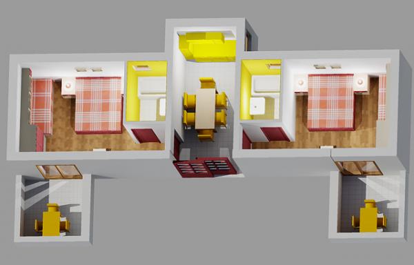 Ferienwohnung für zwei Personen mit zwei Zusatzbetten (50 m2)
