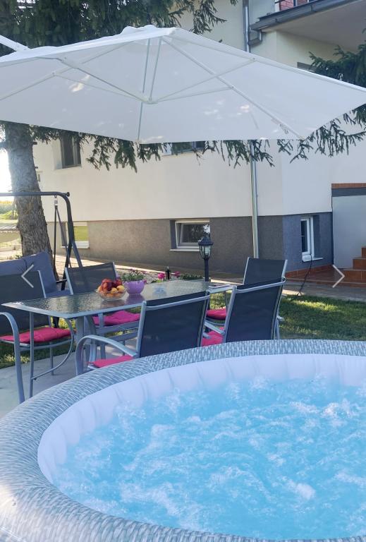 An den Hängen von Fruška Gora, 5 km von der Weinstadt Ilok entfernt, umgeben von Natur und weit weg vom alltäglichen Geschehen, befindet sich ein komplett und modern ausgestattetes Ferienhaus, das auch über einen Außenwhirlpool verfügt und Ihnen auf 1.600 m2 Ruhe und Privatsphäre bietet Garten, wo verschiedene Früchte und Reben.