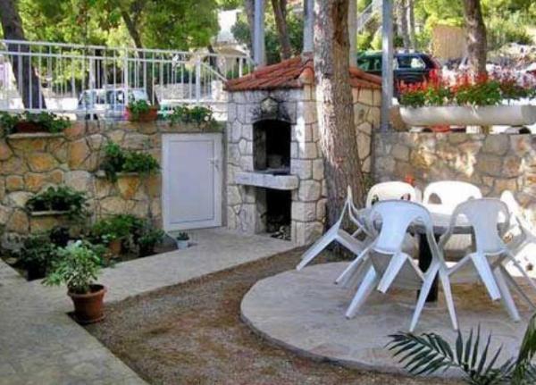 Apartments BellIakov Sie bieten verwenden Sie den Kamin im Hinterhof und verwenden Tischen und Bänken neben dem Kamin.