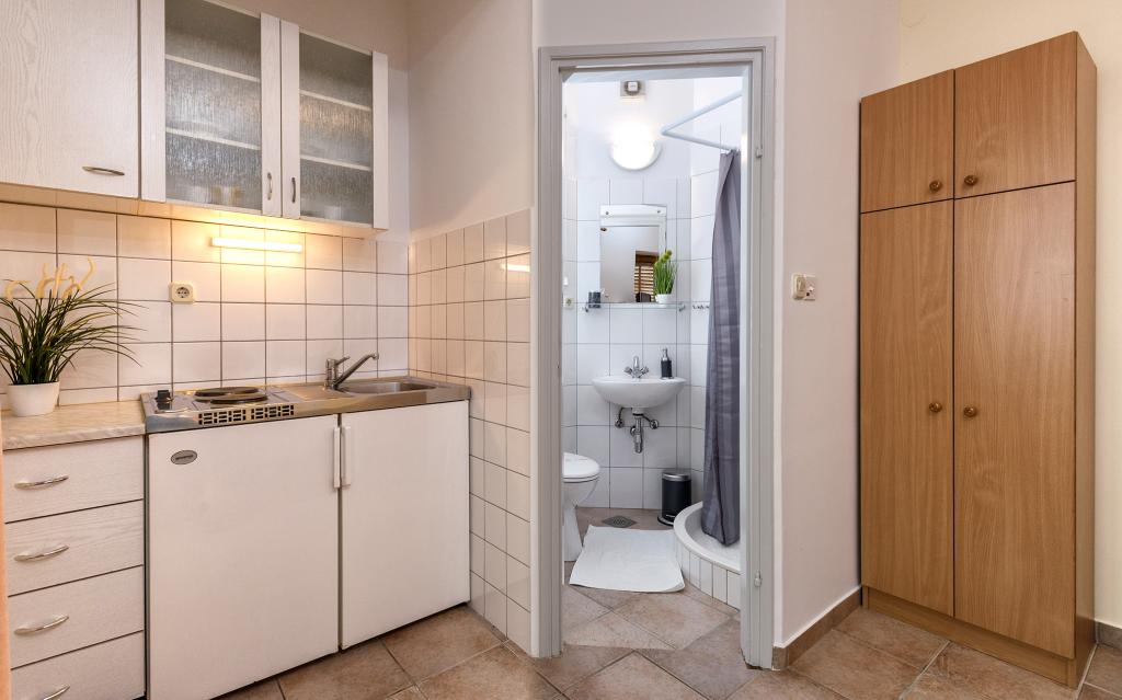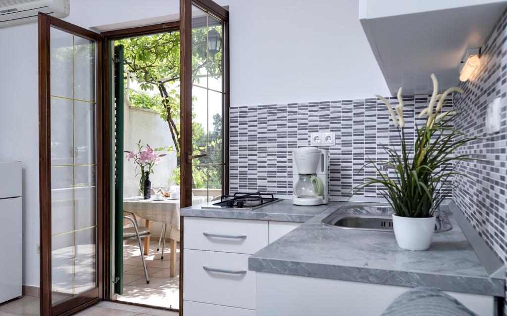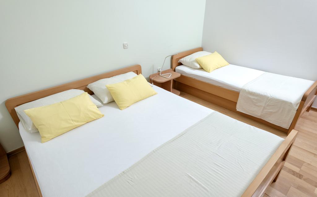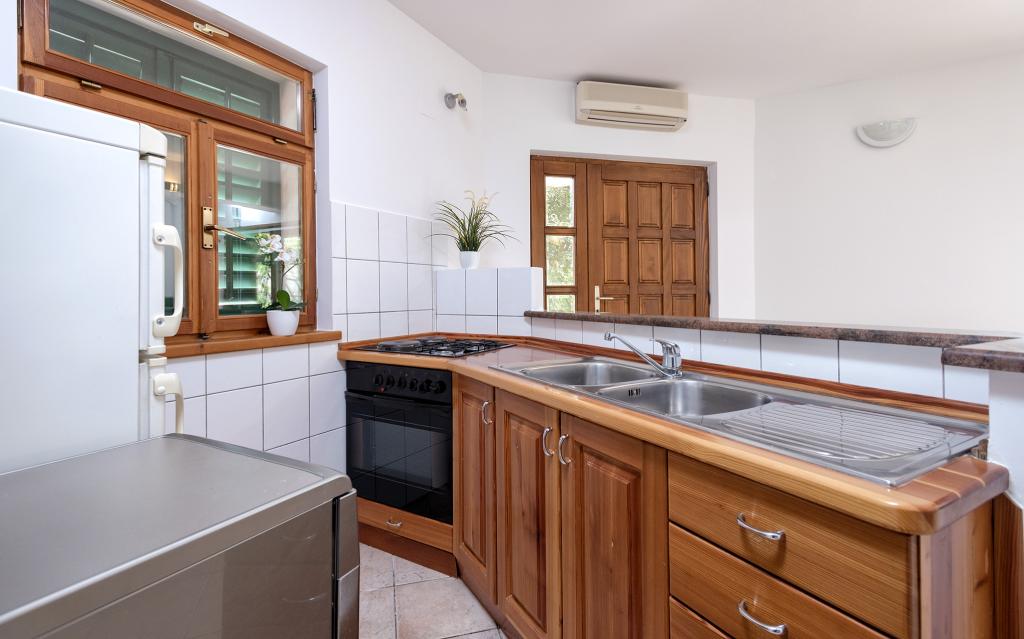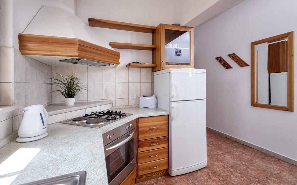 Kurtaxe ist im Preis inbegriffen.Wir haben 4 Wohnungen: PENTHOUSE ist 119 m2 groß, befindet sich im 2. Stock und besteht aus 2 Schlafzimmern (5 Betten), 2 Badezimmern (Dusche und Badewanne), geräumiger Küche mit Geschirrspüler, Backofen, Esszimmer und großem Wohnzimmer mit ausziehbarem Sofa ( 140 x 190) und eine große Terrasse von 20m2 mit Überdachung. A1 hat 90 m2, besteht aus 2 Schlafzimmern (5 Betten), 2 Badezimmern (Dusche und Badewanne), einer geräumigen Küche mit Geschirrspüler, Backofen, Esszimmer und einem großen Wohnzimmer mit einem Schlafsofa (160 x 190) und einer großen Terrasse von 20m2 mit Überdachung. A2 ist ein Studio-Apartment im Erdgeschoss mit einem Doppelbett, Bad, Küche und Terrasse. A3 befindet sich im 1. Stock und besteht aus einem Schlafzimmer mit Doppelbett, einer Küche mit Schlafsofa und einer Terrasse.