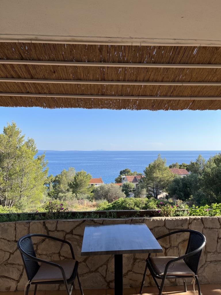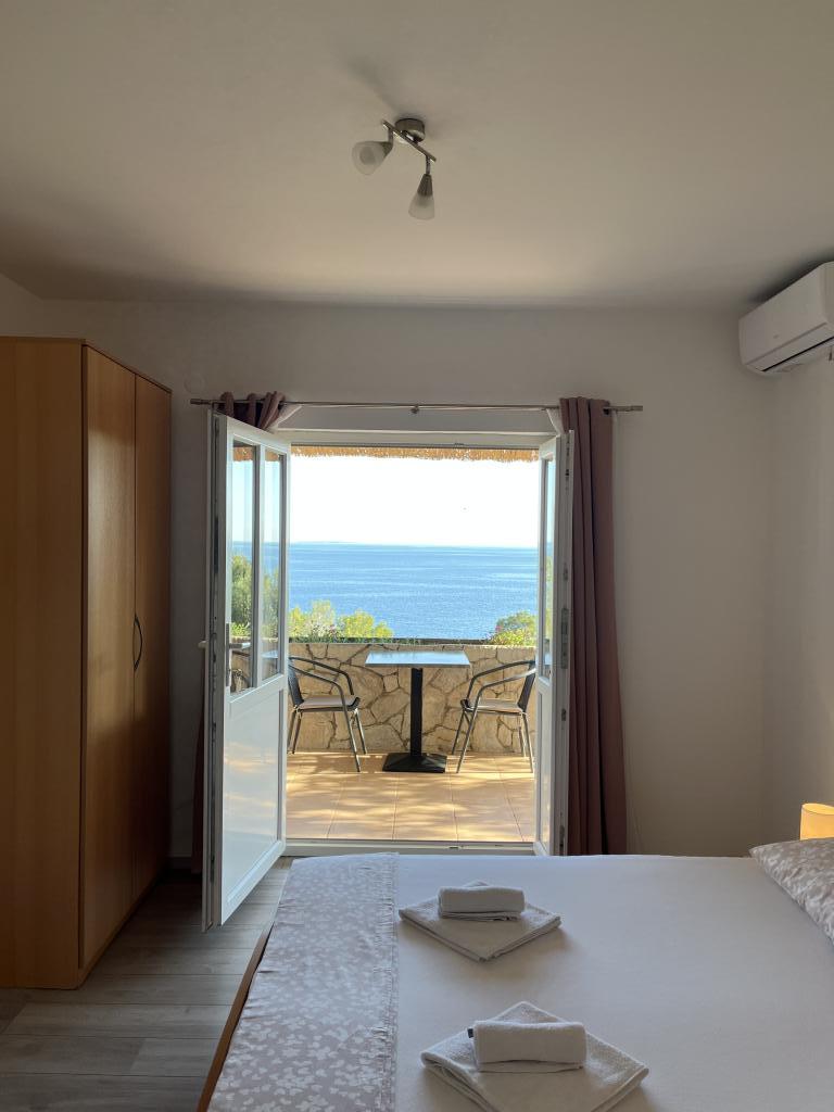 12 Tage Schlemmen. Schöne Aussicht vom Balkon (aber auch vom Bett) auf das Meer und die Inseln Šćedro, Korčula, Sušac. In der Nähe von Stränden, Kieselsteinen, Felsen + Schatten des Pinienwaldes, kristallklares Meer, Wohnung komplett ausgestattet, neue Klimaanlage, großer Kühlschrank, sauber, ordentlich und sehr nette Gastgeber, Frau Nataša und Herr Toni, vielen Dank für das köstliche Abendessen, alles Gute für Sie und die Mädchen... und „unseren“ Loki