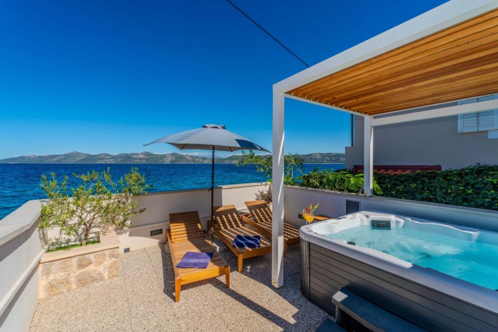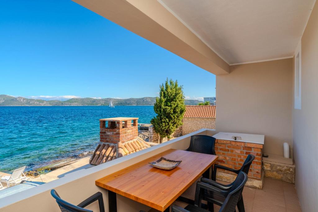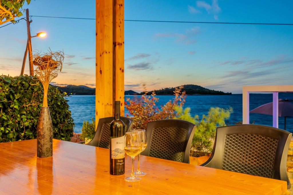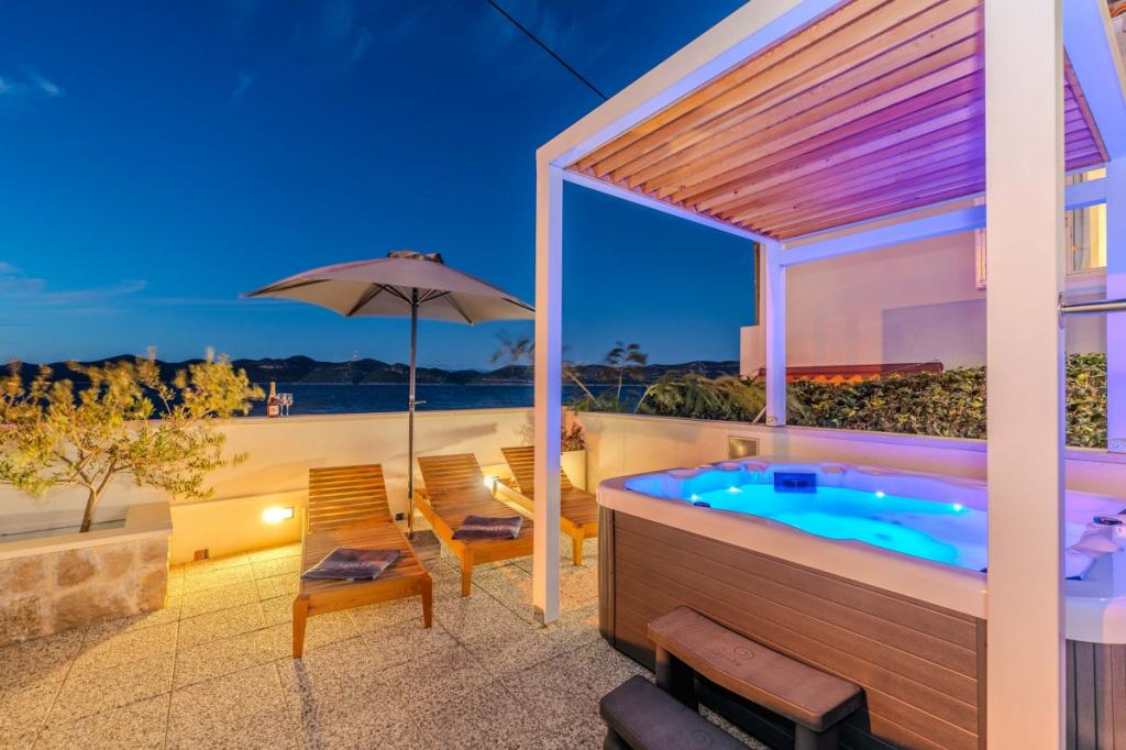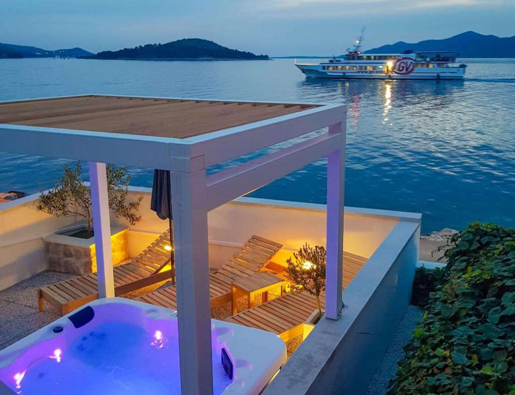 Unsere zwei neu renovierten Apartments mit Whirlpool (200x200 - für 5 Personen) befinden sich in idealer Lage (erste Reihe zum Meer) für alle Liebhaber von Ruhe, Meeresruhe, Küstengrün und unberührter Natur. Neben einem privaten Naturstrand vor dem Gebäude mit Sonnenschirmen und Liegen und Treppen für einen besseren Zugang zum Meer verfügen einige Apartments über einen Balkon mit Meerblick und einige über eine große Terrasse mit Grill. In jeder der 2 Wohnungen gibt es eine voll ausgestattete Küche mit Wohnzimmer, ein Badezimmer und ein Schlafzimmer A1 mit Balkon (3 1), A2 mit Terrasse (3 1). Die Apartments haben einen Charme von Einfachheit und sommerlicher Lässigkeit, der Sie zunächst entspannen wird. Ein Weg entlang des Meeres führt vom Gebäude zu einem nahe gelegenen Markt und einem Restaurant im Robison-Look und echter dalmatinischer Gourmetküche. Veli Iž ist nur wenige Autominuten entfernt. Dort finden Sie ein Postamt, einen Jachthafen, Restaurants und einen Markt. Auf der ganzen Insel, sogar vor der Wohnung, können Sie den Zauber des Fischens entdecken. Ruhe und Genuss garantiert!