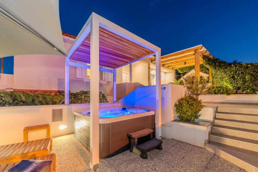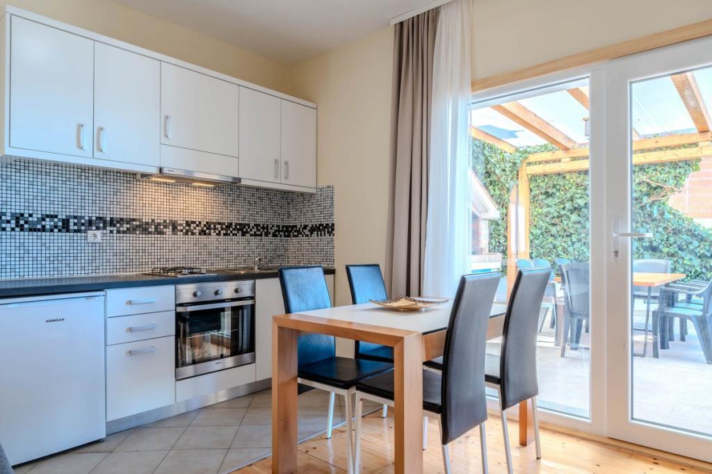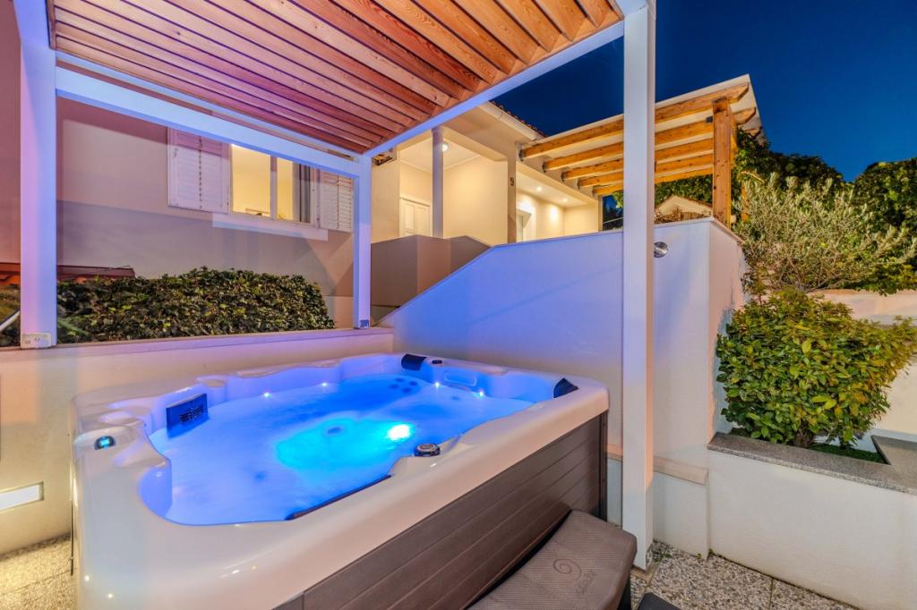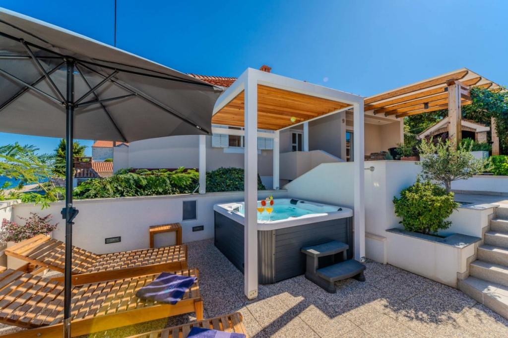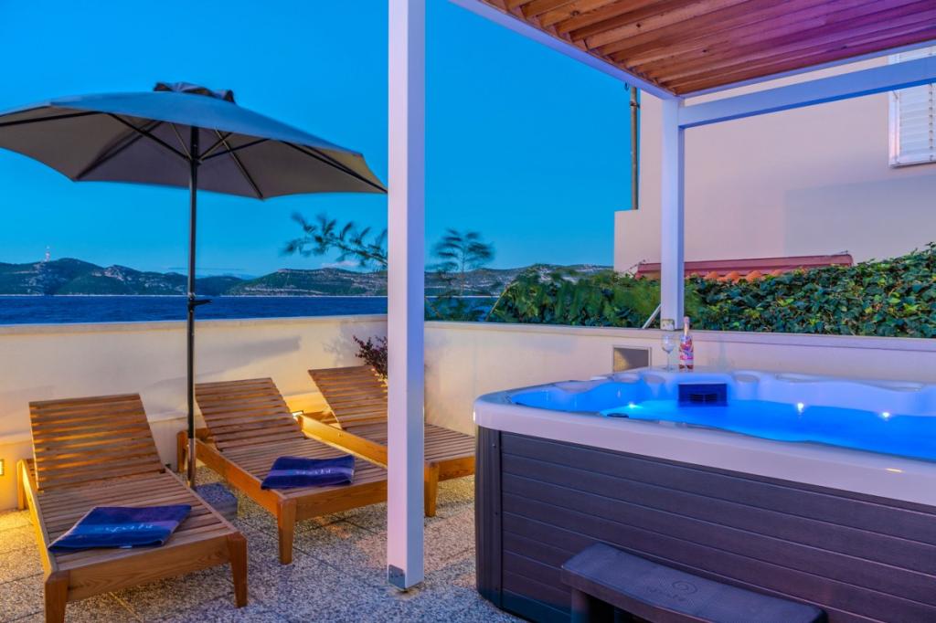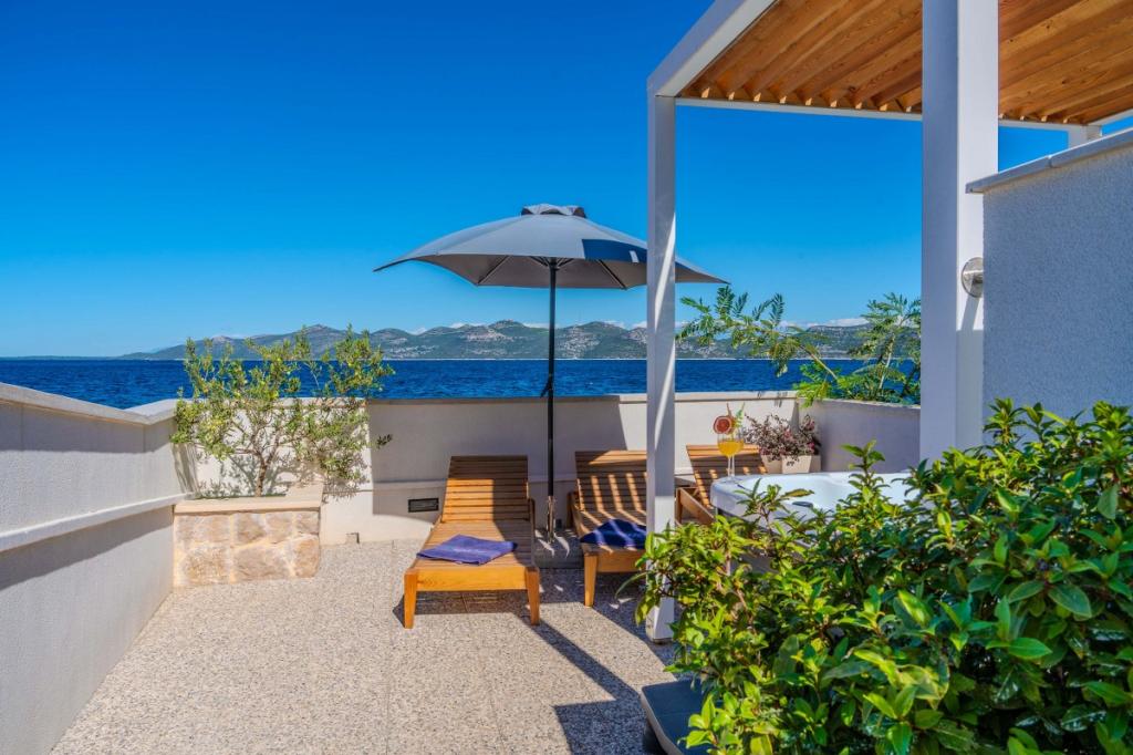 Unsere zwei neu renovierten Apartments mit Whirlpool (200x200 - für 5 Personen) befinden sich in idealer Lage (erste Reihe zum Meer) für alle Liebhaber von Ruhe, Meeresruhe, Küstengrün und unberührter Natur. Neben einem privaten Naturstrand vor dem Gebäude mit Sonnenschirmen und Liegen und Treppen für einen besseren Zugang zum Meer verfügen einige Apartments über einen Balkon mit Meerblick und einige über eine große Terrasse mit Grill. In jeder der 2 Wohnungen gibt es eine voll ausgestattete Küche mit Wohnzimmer, ein Badezimmer und ein Schlafzimmer A1 mit Balkon (3 1), A2 mit Terrasse (3 1). Die Apartments haben einen Charme von Einfachheit und sommerlicher Lässigkeit, der Sie zunächst entspannen wird. Ein Weg entlang des Meeres führt vom Gebäude zu einem nahe gelegenen Markt und einem Restaurant im Robison-Look und echter dalmatinischer Gourmetküche. Veli Iž ist nur wenige Autominuten entfernt. Dort finden Sie ein Postamt, einen Jachthafen, Restaurants und einen Markt. Auf der ganzen Insel, sogar vor der Wohnung, können Sie den Zauber des Fischens entdecken. Ruhe und Genuss garantiert!