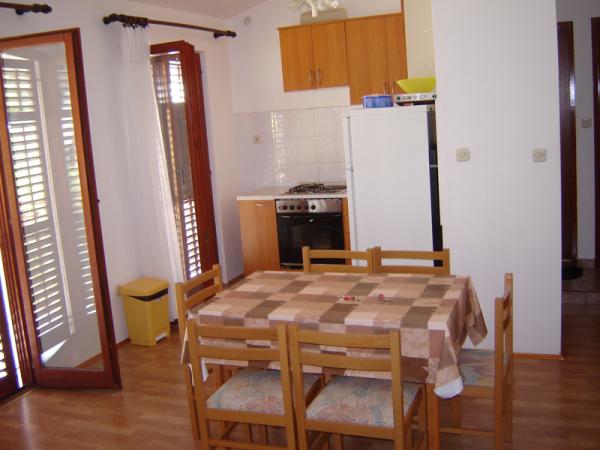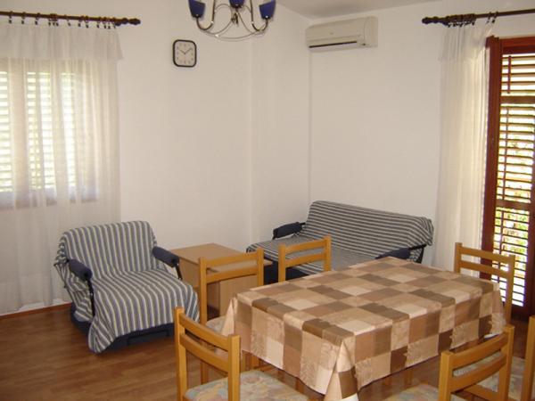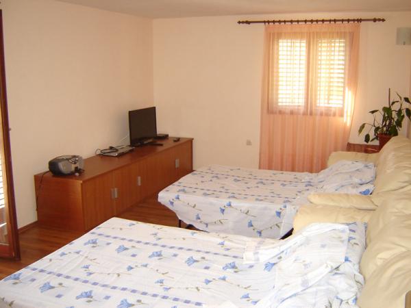 Das Haus liegt in einer ruhigen und abgelegenen Gegend, nur 150 Meter vom Meer, dem Zentrum und dem Geschäft entfernt. Durch die Tür des Hauses ist eine Zufahrt mit dem Auto möglich und es gibt Parkplätze im Hof. Modern ausgestattete Apartments mit allen notwendigen Annehmlichkeiten für einen angenehmen Aufenthalt und einen schönen Urlaub. Es gibt drei separate Wohnungen und eine größere Firma. Die zwei Wohnungen sind mit Küche und Wohnzimmer (A-1 und A-2) zweizimmerig, während die dritte (A-3) Dreibettzimmer-Wohnung ist. Für Ihr Fahrzeug kostenlose Parkplätze auf dem Hof.