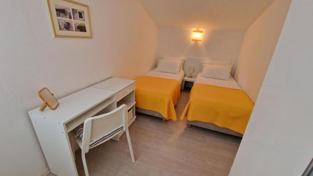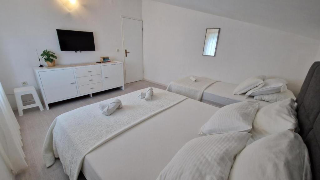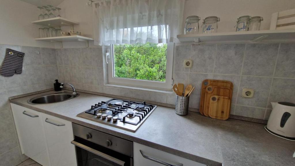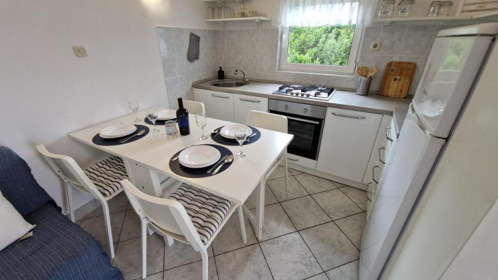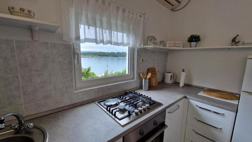Genießen Sie Ihren Urlaub nur 5 Meter vom Meer entfernt in der ruhigen Bucht von Knež auf der Insel Iž. Dieses komfortable Apartment mit zwei Schlafzimmern bietet eine geräumige Terrasse mit herrlichem Blick auf das Meer und den Schärengarten von Zadar – ideal für den Morgenkaffee oder entspannte Abende. Das klimatisierte Apartment ist komplett ausgestattet für einen komfortablen Aufenthalt: eine Küche mit allen notwendigen Annehmlichkeiten, eine Waschmaschine, kostenfreies WLAN, ein Fernseher, ein Schreibtisch, ein gemütliches Wohnzimmer und ein eigenes Badezimmer. Kostenlose Parkplätze stehen in der Nähe zur Verfügung. Auf der Terrasse befindet sich ein Grillplatz. In ruhiger und entspannender Lage gelegen, ist das Apartment die perfekte Wahl für Familien und alle, die einen erholsamen Urlaub am kristallklaren Meer verbringen möchten.