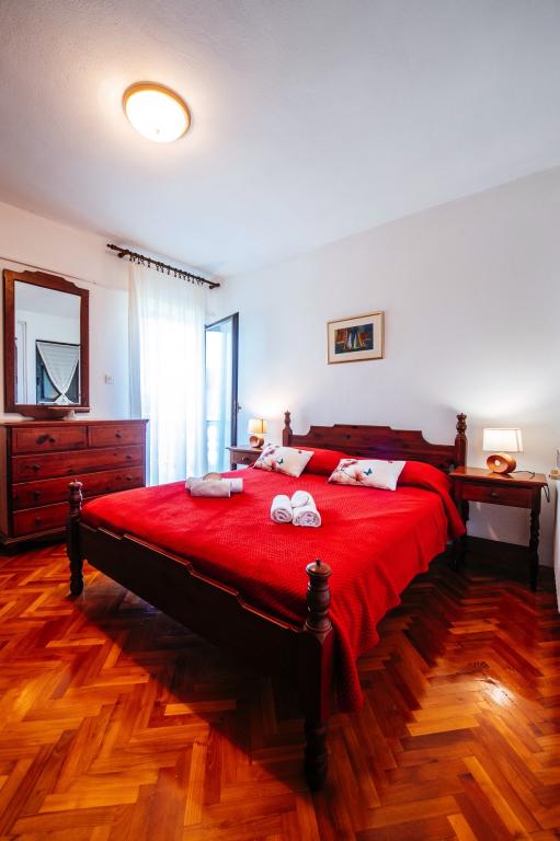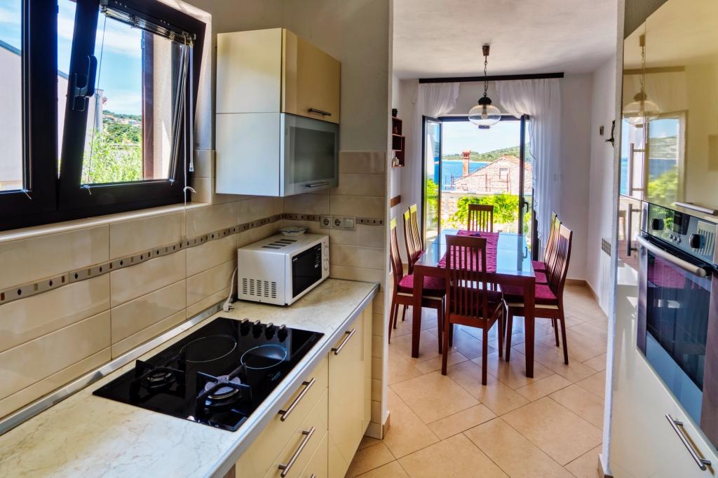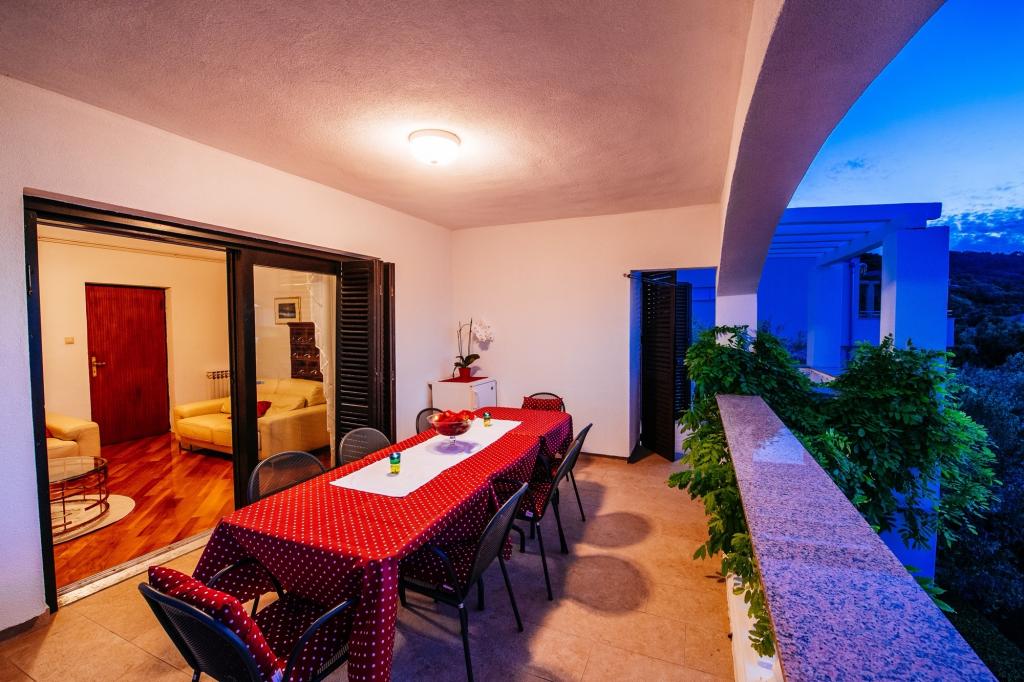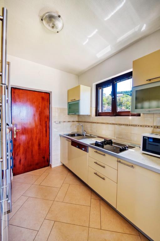 Das Familienhaus Malinina befindet sich in Mali Iž, ganz in der Nähe des Meeres. Innerhalb des Hauses gibt es eine separate Taverne mit Grill, Tisch und Stühlen sowie eine Garage. Zwei Terrassen mit Blick auf das Meer. Es besteht aus 2 Etagen. Untergeschoss: 1 Zimmer mit 1 Bett (90 cm, Länge 190 cm), 1 Franken. Bett (160 cm, Länge 200 cm). Esszimmer. Offene Küche (4 Kochplatten, Backofen, Gefrierschrank). Bad / WC. Obergeschoss: (Außentreppe) Wohn- / Esszimmer 45 m2 mit Sat-TV. Empfänger. Ausgang zur Terrasse. 1 Zimmer mit 1 Franken. Bett (160 cm, Länge 200 cm). Gehen Sie zum Balkon. 2 Zimmer mit 2 Betten (90 cm, Länge 190 cm). Offene Küche (4 Kochplatten, Backofen, Geschirrspüler, Gefrierschrank). Dusche / WC. Das Parken am Haus auf dem Grundstück, Haustiere sind nicht erlaubt.