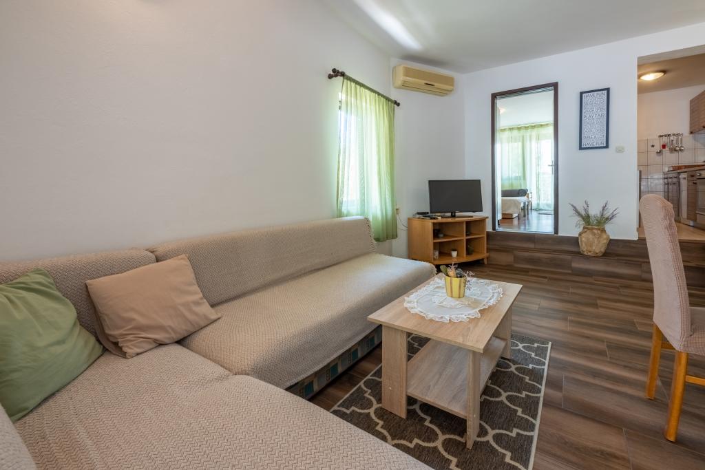 Klimatisiertes Apartment mit 2 Balkonen in einer ruhigen, abgelegenen Straße in einem kleinen Fischerdorf Jadranovo. Die Wohnung verfügt über einen Garten, einen Grillplatz sowie WI FI und Parkplatz. Die Wohnung verfügt über zwei Balkone oder Terrassen, 1 Schlafzimmer, Wohnzimmer, Küche und WC. Sie haben einen 10-minütigen Spaziergang zum nächsten Strand und einen 15-minütigen Spaziergang zum anderen. Der zweite Strand ist ebenfalls mit dem Auto in 2 Minuten erreichbar und Sie haben kostenlose Parkplätze direkt am Strand.