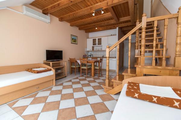 Schönes Ambiente, gepflegte Wohnung, freundliche Gastgeber, der Strand ist etwas weiter, wenn Sie mit kleinen Steinen wählen, und wenn Sie zwischen den Booten schwimmen möchten, dann sind es etwa 800 m