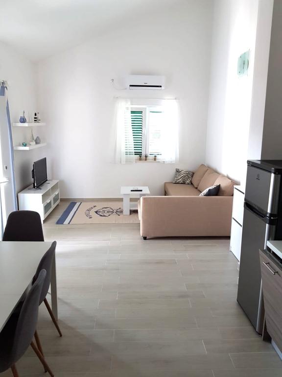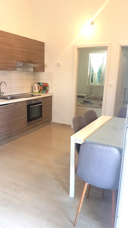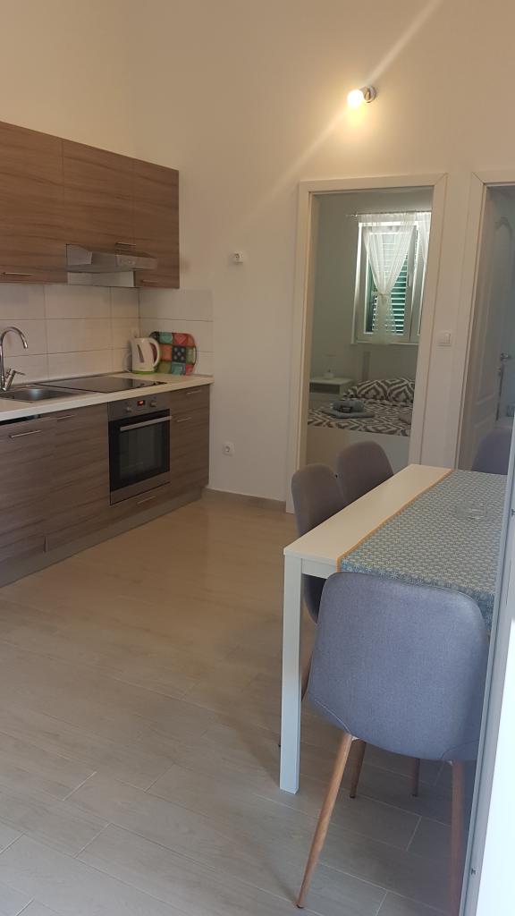 Die Apartments in Jadrija liegen in der vierten Reihe zum Meer, d. h. 2 Gehminuten vom nächsten Strand entfernt. Die Apartments sind klimatisiert und komplett ausgestattet. Einzimmerwohnung (A2+2) besteht aus einem Schlafzimmer, Wohnzimmer und Küche, Flur, Badezimmer und einem geräumigen Balkon. Das Schlafzimmer ist komfortabel und besteht aus einem großen Doppelbett mit einer Breite von 1,6 m und einem großen Kleiderschrank. Zweizimmerwohnung (A3+2) besteht aus 2 kleineren Schlafzimmern (Bett 1,6 m breit und Bett 1,4 m), Wohnzimmer und Küche, Badezimmer und großem Balkon. In beiden Wohnzimmern gibt es ein ausziehbares Sofa, so dass ein weiteres hochwertiges und bequemes Bett mit einer Breite von 1,6 m entsteht, auf dem 2-3 Personen schlafen können, je nachdem, ob es sich um Kinder oder Erwachsene handelt. Die Küchen sind komplett mit Geschirr und Standardgeräten ausgestattet: Backofen, Herd, Kühlschrank mit Gefrierfach, Wasserkocher. Bettwäsche und Handtücher sind im Preis inbegriffen, außerdem können Sie ein Bügeleisen und einen Haartrockner nutzen.