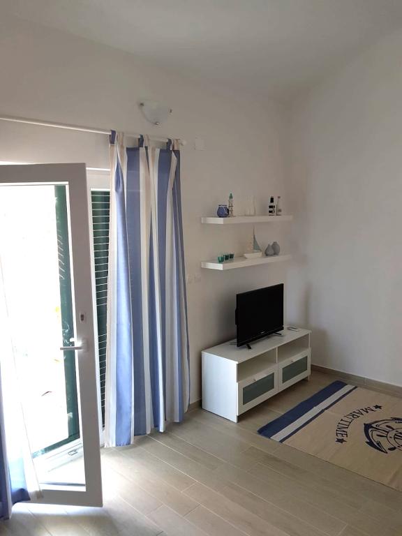 Kurtaxe ist im Preis inbegriffen.Jadrija ist eine kleine ruhige Stadt in der Umgebung von Šibenik und ein bekannter Badeort für die Einwohner von Šibenik. Jadrija ist bekannt für seine farbenfrohen Hütten, den Duft der Kiefernwälder und das kristallklare Meer. Im Ort gibt es einen kleinen Laden, Bäckerei, Pizzeria, Restaurant, Cafés, Kinderspielplatz, Surfclub, Bocciabahn. Jadrija ist ein idealer Ort für Familien mit kleinen Kindern, aber auch für alle, die dem Trubel der Stadt entfliehen und den wahren Geist des Mittelmeers erleben möchten. Jadrija kann auch mit dem Boot von Šibenik aus erreicht werden. Während der Fahrt können Sie den Archipel von Šibenik und die Festung St. sehen. Nikolaus. Unweit der Badestelle befindet sich der Leuchtturm von St. Andreas, der jeden anweist, der den engen Kanal von St. betritt und verlässt. Ante. Jadrija liegt ca. 14 km von Šibenik und Vodice und ca. 35 km von Skradin und dem Krka-Nationalpark entfernt.
