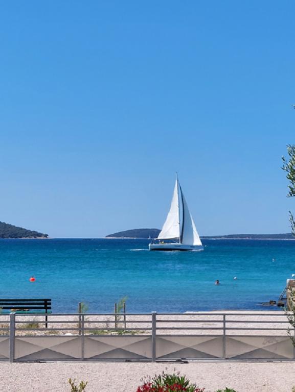 Wohnung mit herrlichem Meerblick von der Terrasse. Die Villa ist nur eine Wohnung und bietet Ruhe und Erholung, die Voraussetzungen für eine echte Erholung. Das Hotel liegt am Ende des Strandes, geben nur wenige Menschen, die Sie Frieden. Wohnung sauber, gut ausgestattet, sehr freundliche Besitzer. Für diejenigen, die auf 100 km wir Zadar, Split, Trogir und Sibenik am nächsten, wo Sie jeden Abend für Kaffee gehen und Wein zu erkunden. Für diejenigen, die mit der Atmosphäre des Ortes Verbindung treten und sich eine größere Gruppe von Touristen pub ca. 500 m. Nächste Urlaub auch hier wollen wir zu verbringen.