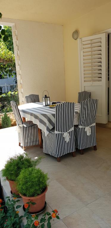 Die Wohnung ist neu eingerichtet und befindet sich im ersten Stock Wohnung in der Strandpromenade entfernt. Das Hotel liegt an der Stadt Sibenik Jadrija, die 10 Kilometer von Sibenik und Führung der 5 km ist. Durch Jadrije kann außer auf der Straße sein, durch den Kanal von St. Segelboot erreicht Ante 20 Minuten. In der Nähe ist ein Restaurant-Pizzeria und Shop. Die Terrasse bietet einen Panoramablick auf den Garten, in dem eine Steingrill und Dusche befinden. Mindestens 7 Nächte in der Zeit vom 7. Januar - 9. Januar Bewachte Parkplätze im Hof ​​vor.