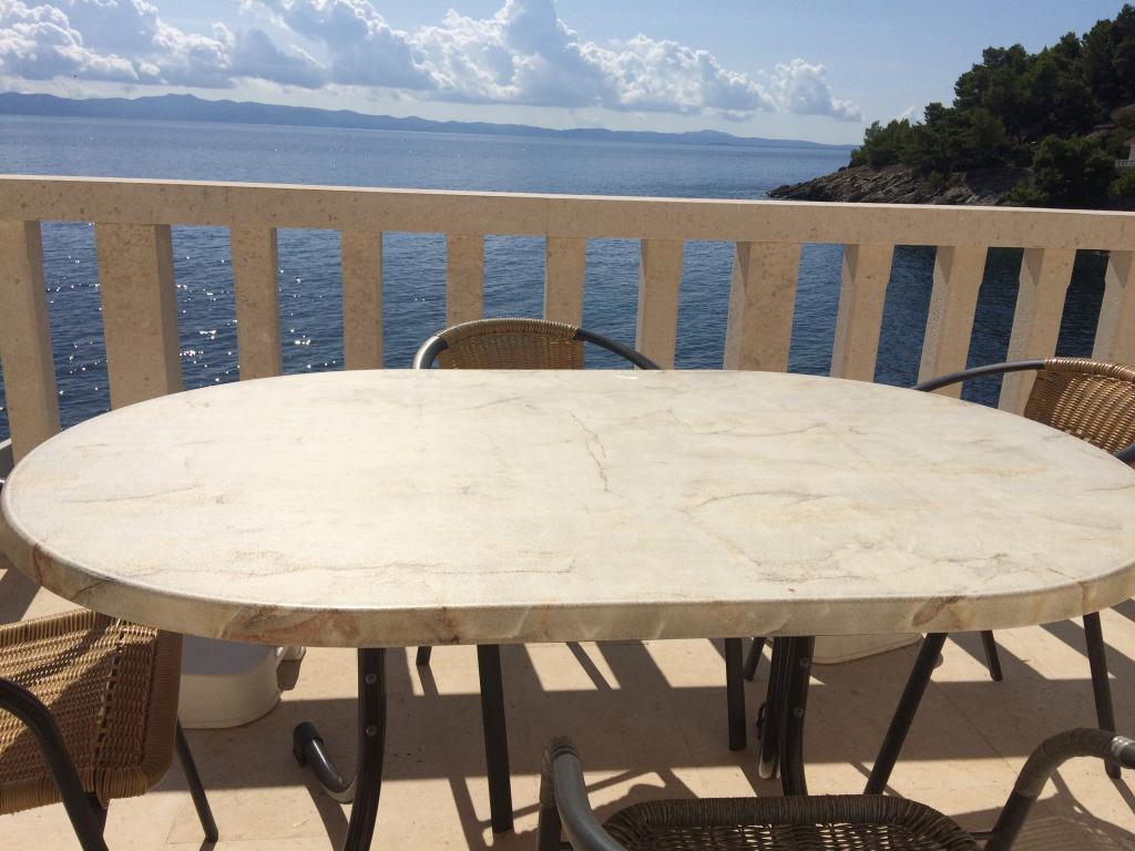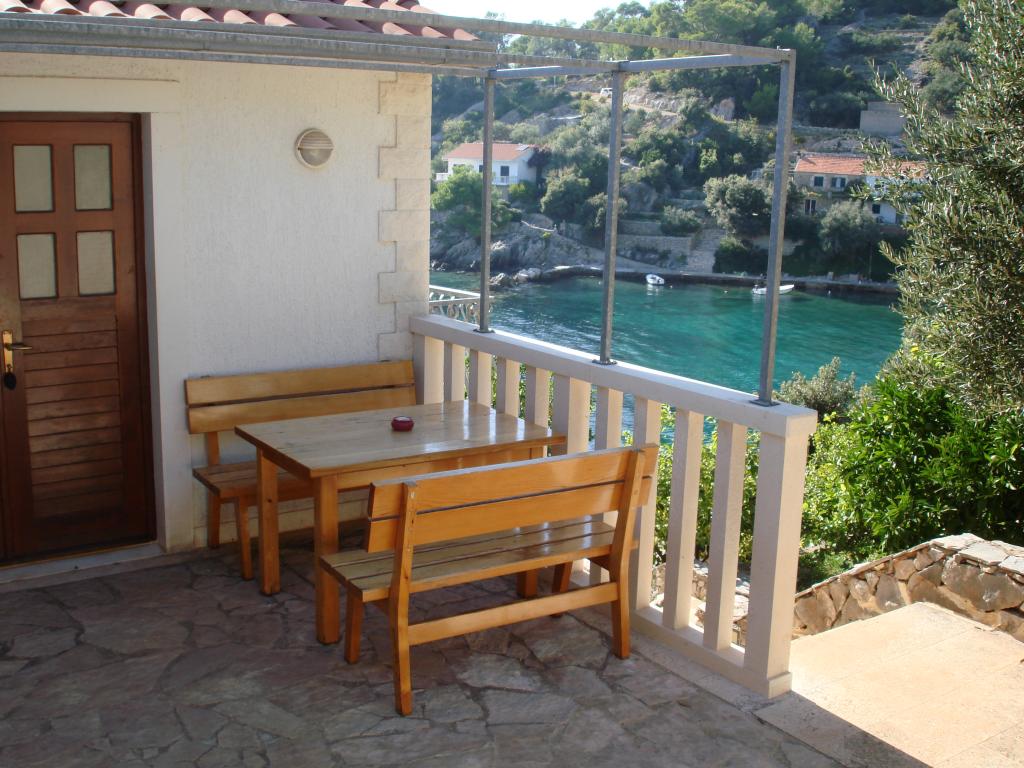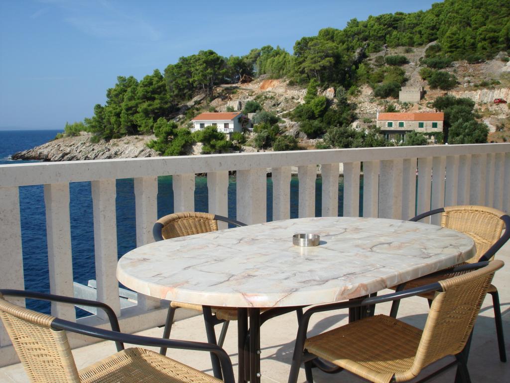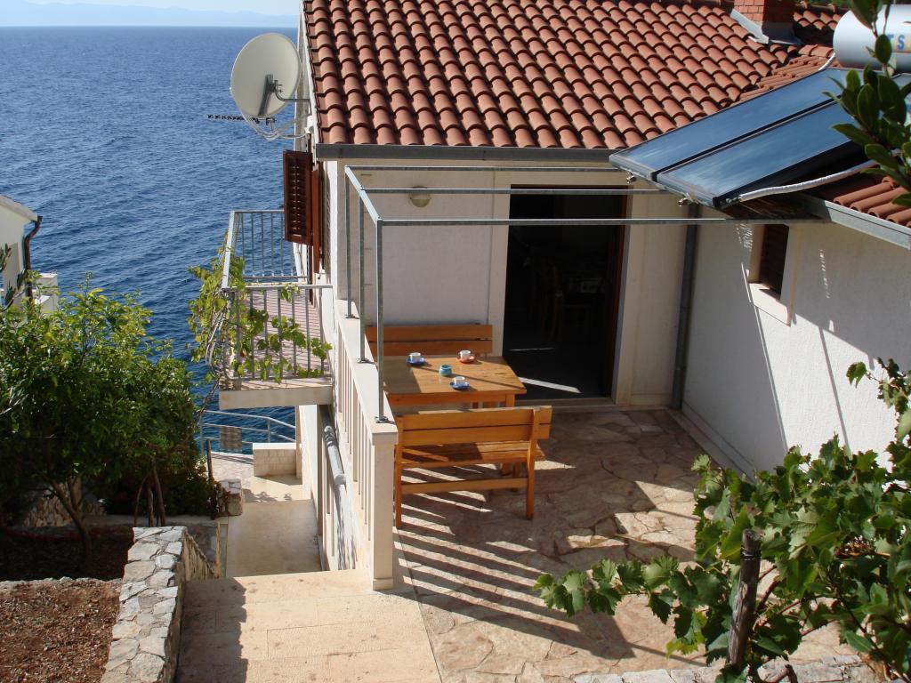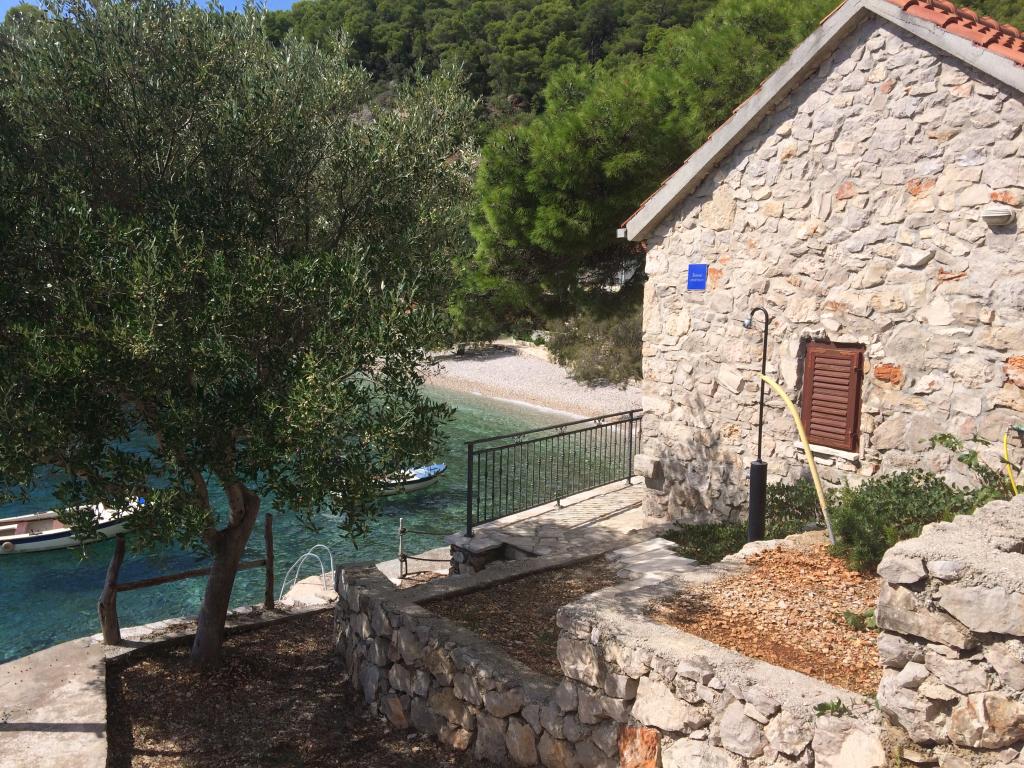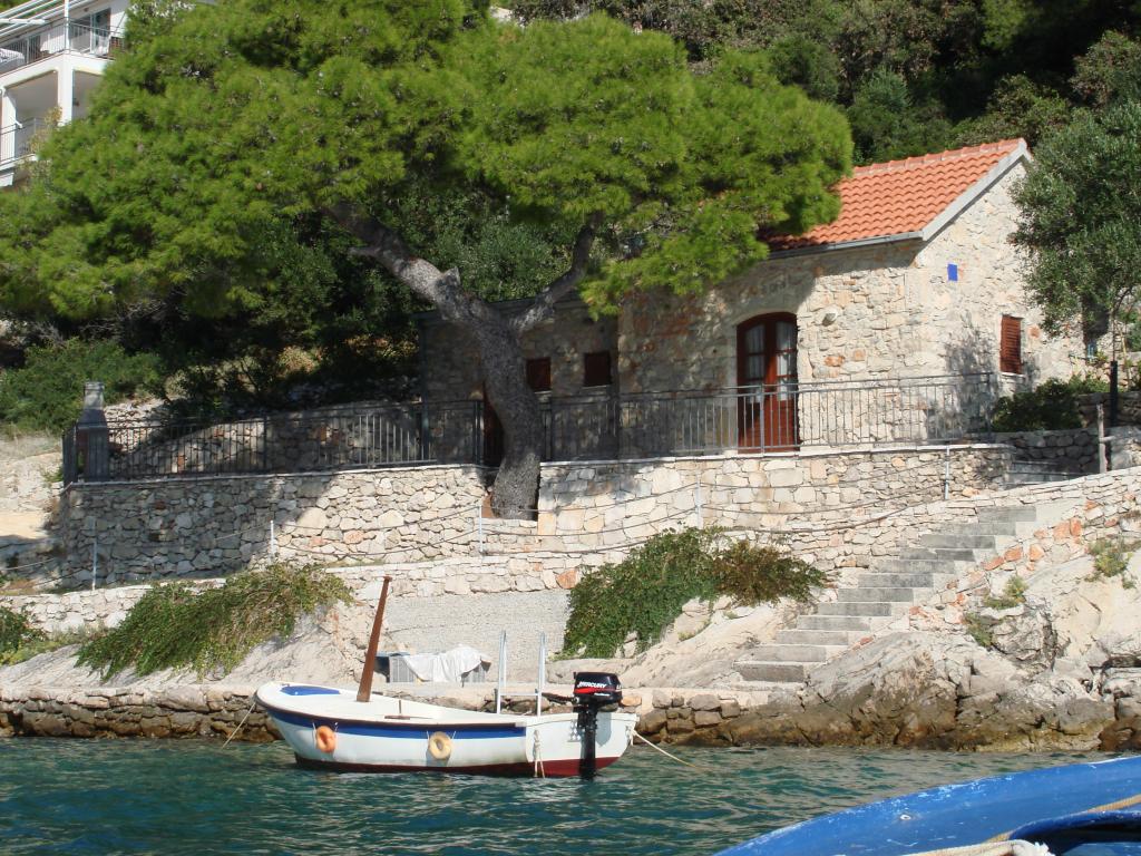 Moderne Apartments im Dorf Gdinj in der Bucht von Torac. Haus direkt am Meer in einer ruhigen Bucht, nur 50 m vom Kiesstrand entfernt. Neben dem Haus befindet sich eine konkrete Bootsanlegestelle, die auch zum Schwimmen und Sonnenbaden genutzt werden kann. Die Wohnungen werden mit Strom und Warmwasser aus Solarquellen versorgt. Sie können auch einen Gemeinschaftsgrill für Holz und Holzkohle nutzen. Ein kleines Lebensmittelgeschäft mit Grundnahrungsmitteln und Getränken sowie ein kleineres Restaurant befinden sich in der angrenzenden Bucht nur ca. 300m entfernt. Drei Buchten weiter, ca. 2 km entfernt, befindet sich ein Fischrestaurant. Bis ins Zentrum des Dorfes, wo es ein etwas größeres Geschäft gibt und das Restaurant ca. 4km ist. Die nächste Apotheke, Apotheke und der nächste Supermarkt befinden sich im ca. 25 km entfernten Jelsa.