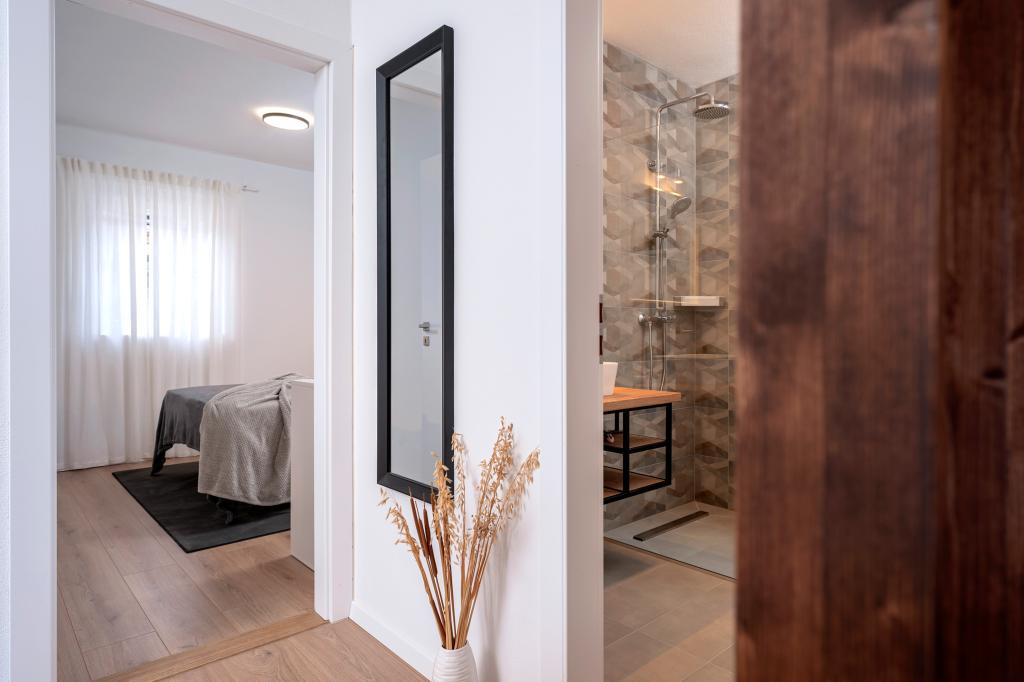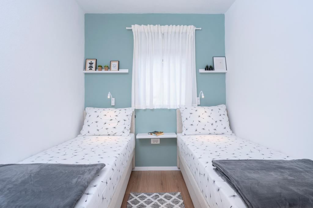 Schöne neue Wohnung in einer ruhigen Gegend, nur 50 Meter vom Meer entfernt.