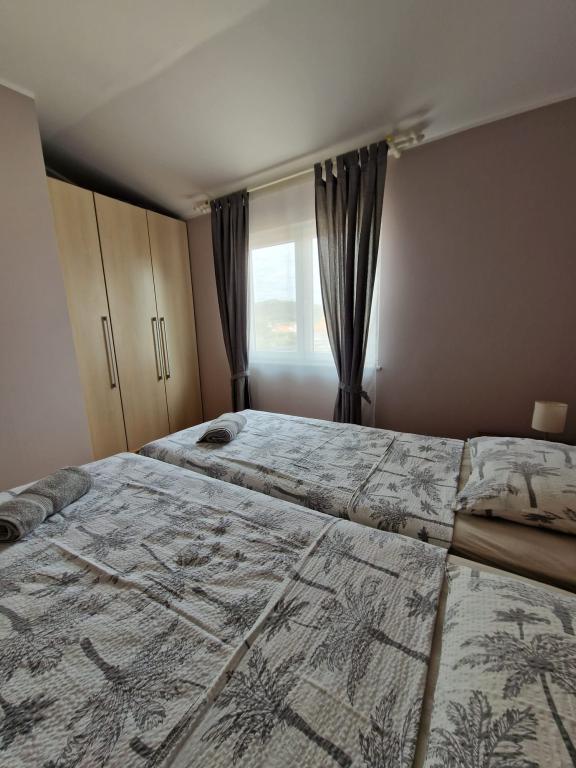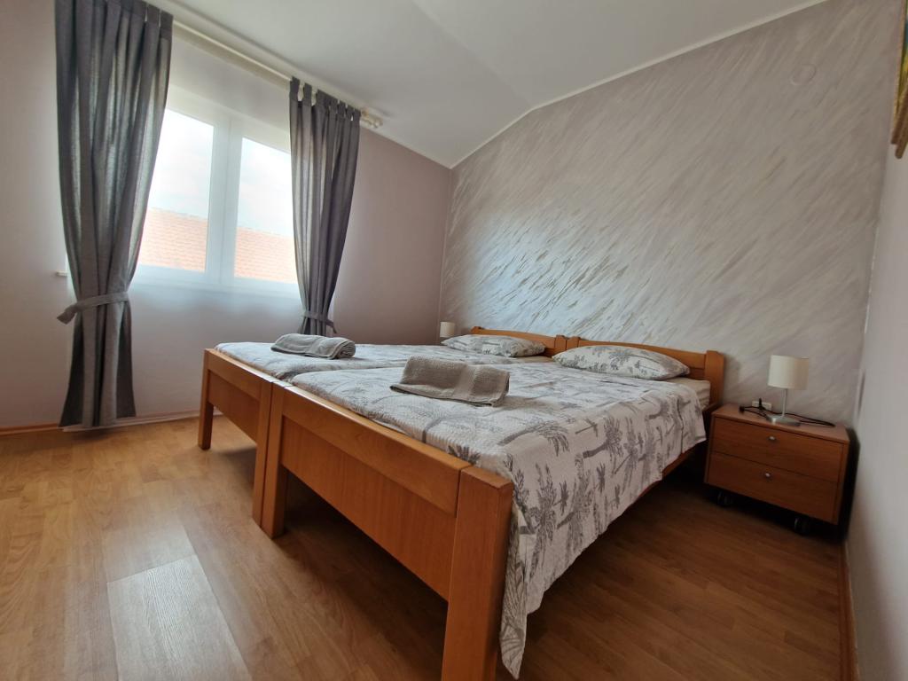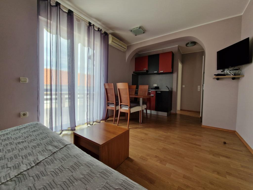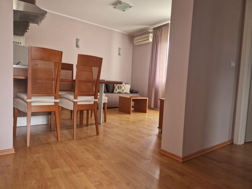 Geschmackvoll eingerichtet und komplett ausgestattete Apartments in der Ruhezone, etwa 400 Meter vom Strand und 200 m vom Zentrum entfernt. Das Haus hat 2 Appartements, die beide auf der ersten Etage. Jedes verfügt über ein Schlafzimmer Wohnzimmer (2 von 2 Betten), Küche, Bad und Terrasse. Die Gäste haben Zugang zu einer Waschmaschine, Mikrowelle, Kaffeemaschine, Sat-TV, Internet, Grill und Parkplatz. Die Apartments sind klimatisiert, sehr komfortabel, mit großen Terrassen und schönen Möbeln. in diesem Haus bleiben, ist sicher, dass Sie begeistern.