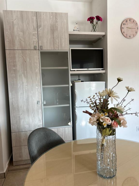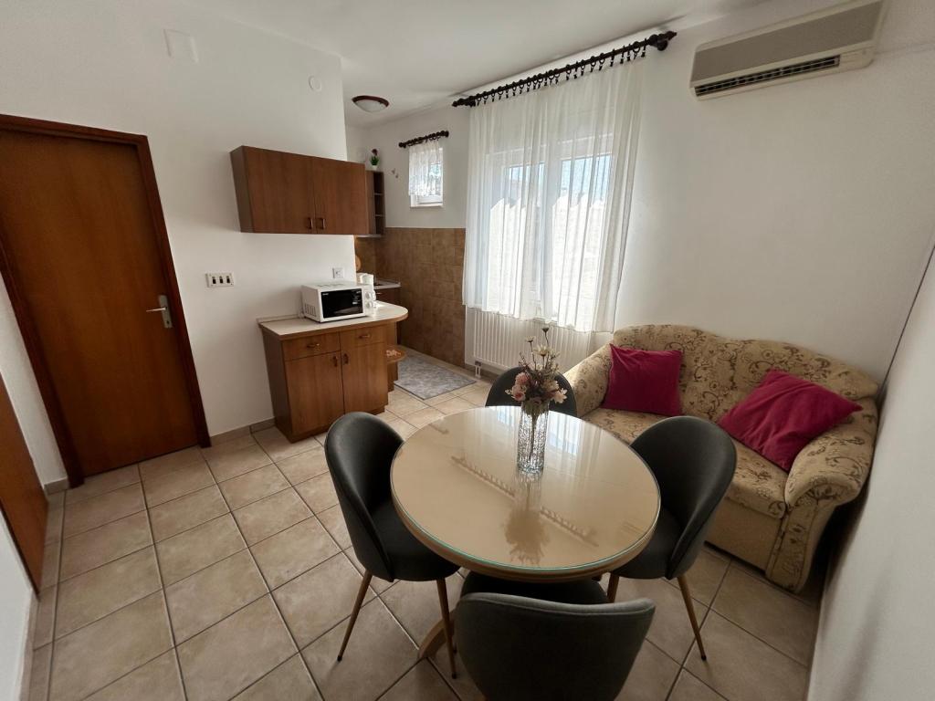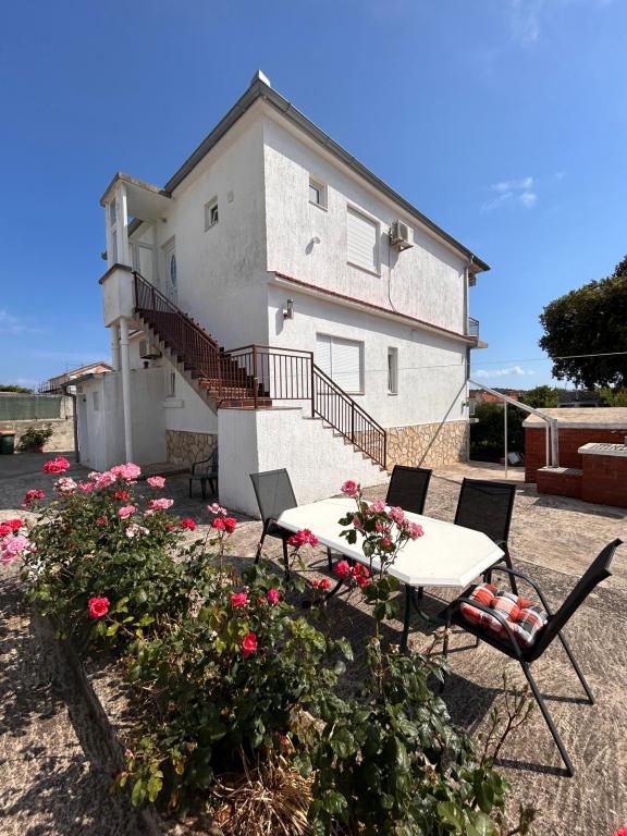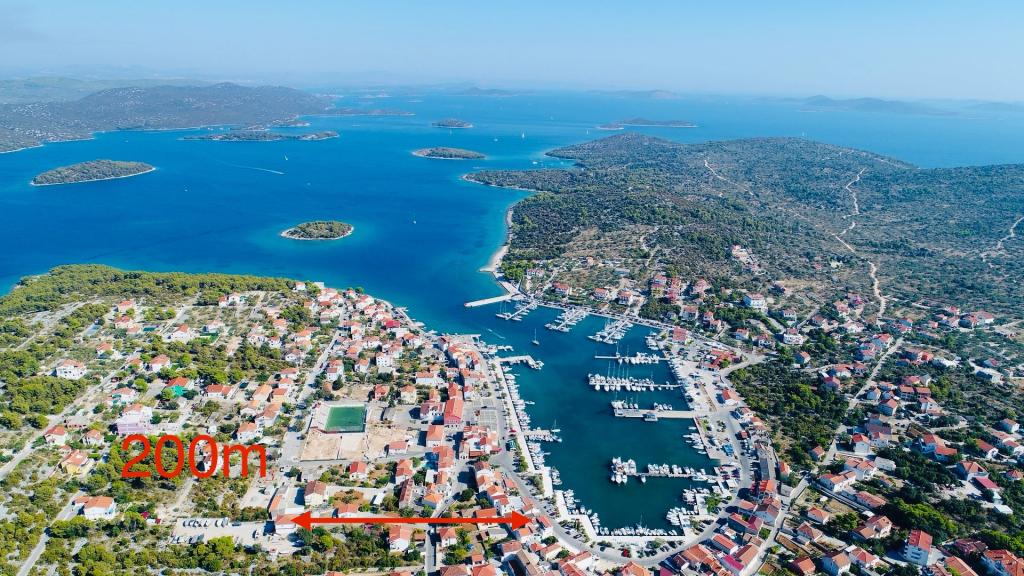 Möblierte Wohnung in der ruhigen Siedlung Jezera, Insel Murter. Wunderschön dekorierter Strand, nur 400 Meter entfernt. Die Anlage liegt 200 Meter vom Dorfzentrum entfernt. Die Anlage ist ein freistehendes Haus mit zwei Wohnungen im ersten Stock und verfügt über eine große Terrasse mit Grill. Außerdem gibt es einen Garten mit gepflanzten Blumen, einem Esstisch und Gartenmöbeln zum Entspannen. Die Unterkunft verfügt über eine Küche, ein Wohnzimmer (TV, Schlafsofa für eine Person), ein Badezimmer und ein Schlafzimmer. Die Küche ist mit grundlegenden Haushaltsgeräten ausgestattet (Mikrowelle, Kaffeemaschine, Wasserkocher...). Privatparkplatz gesichert. Willkommen!