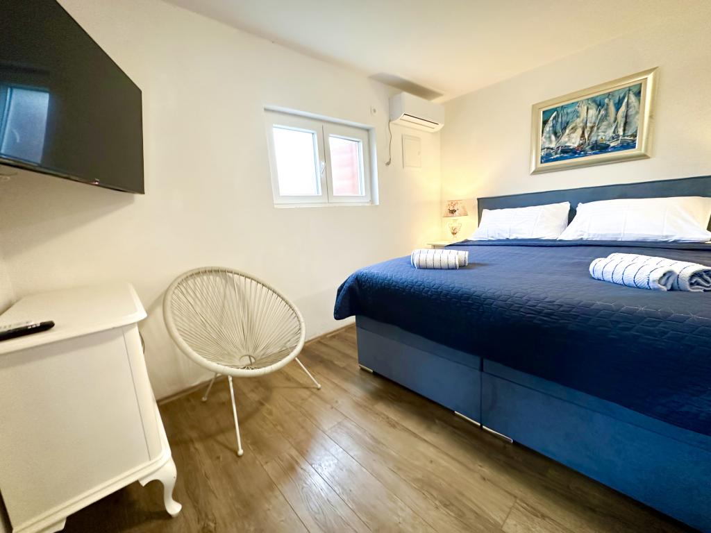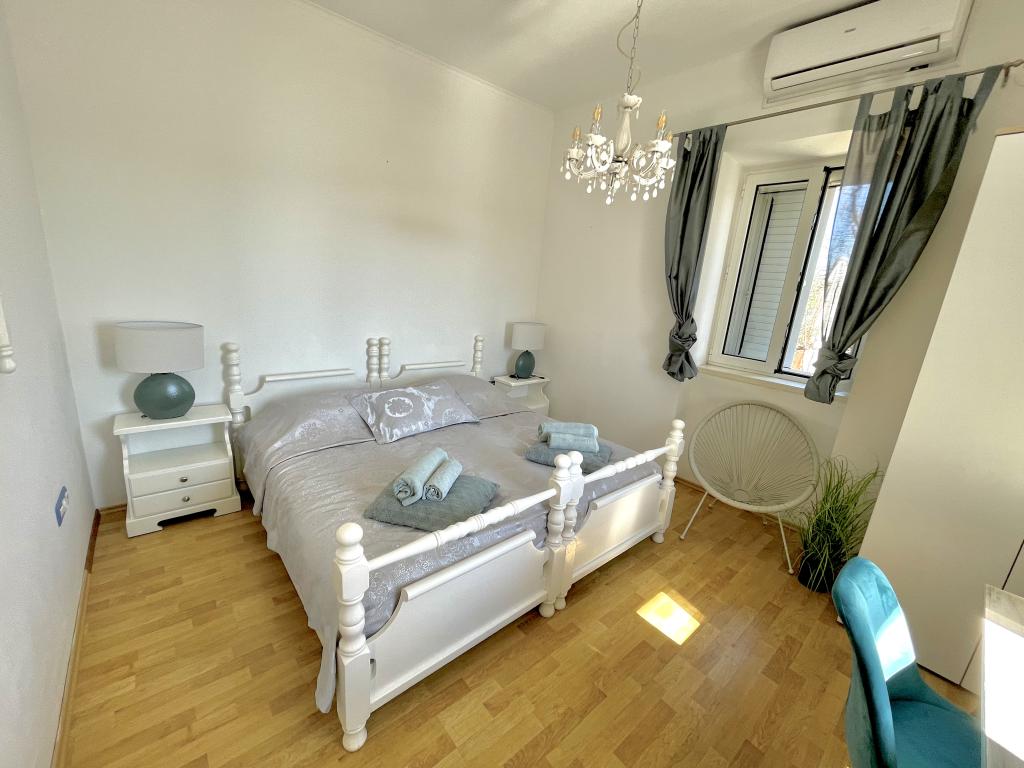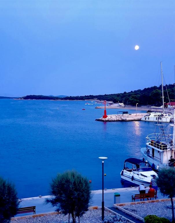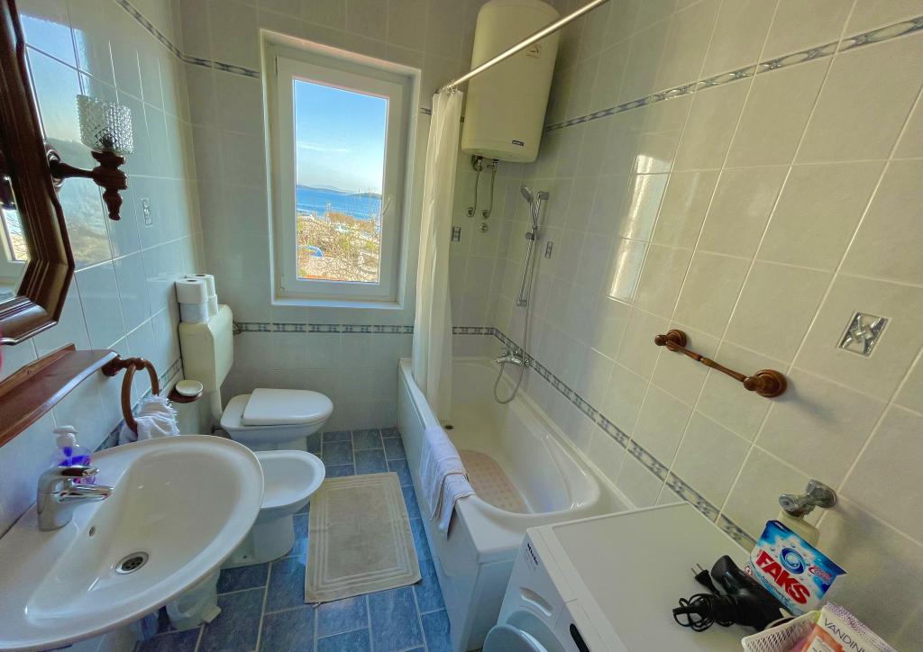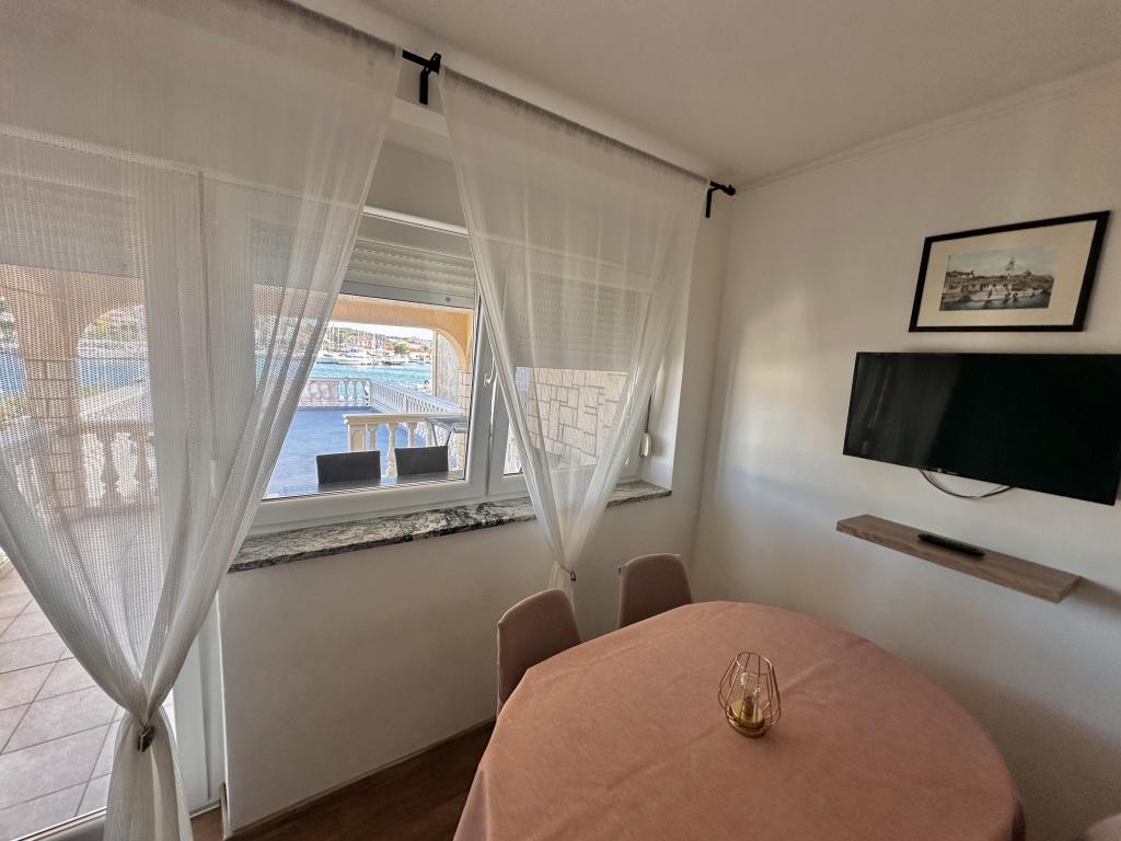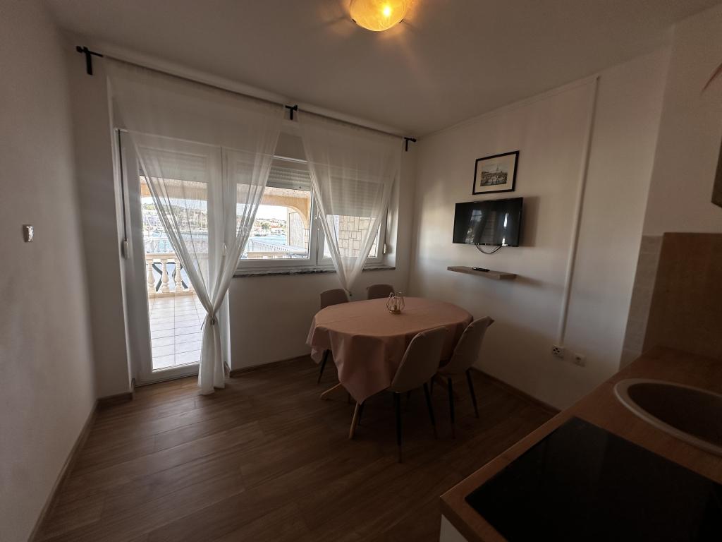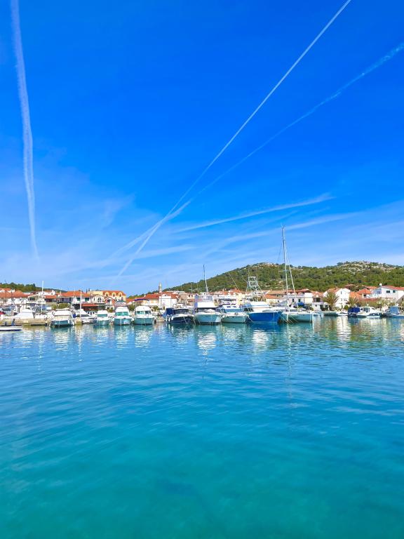 Genießen Sie einen wunderschönen Blick auf das Meer, gutes Wetter und magische Sonnenuntergänge in einer Wohnung, die sich nur wenige Meter vom Meer entfernt in einem hervorragend gelegenen Haus befindet. Ein Ort, um Dalmatien zu sehen, zu riechen und zu fühlen. Die Apartments liegen direkt am Meer und der nächste Strand ist nur 100 Meter entfernt. Wir bieten Ihnen einen Bootsliegeplatz und kostenlose Parkplätze.