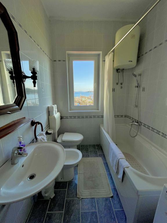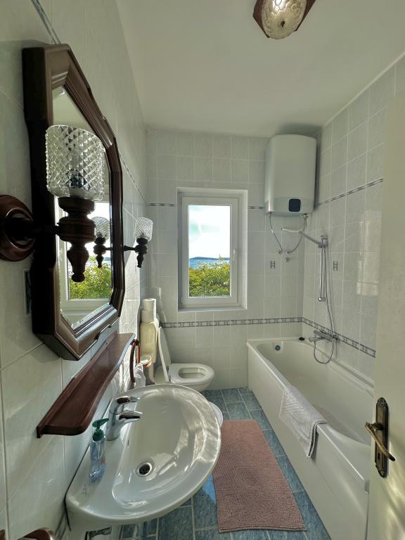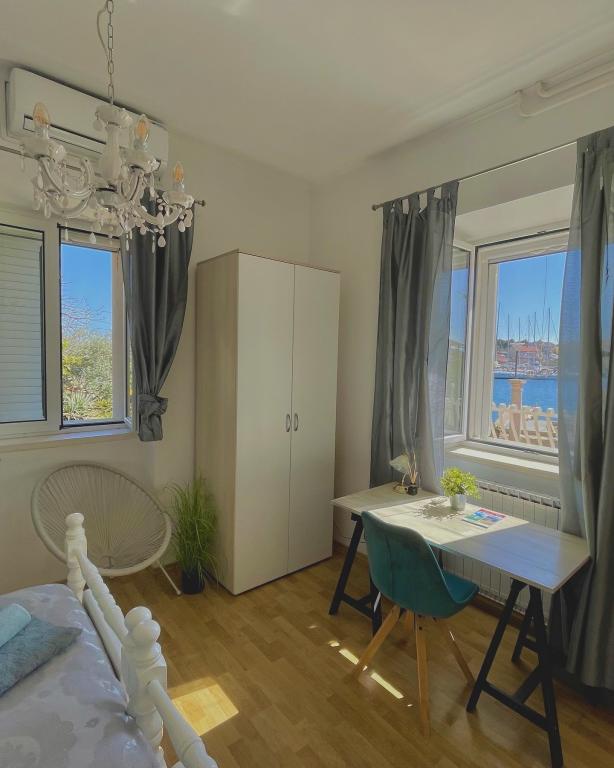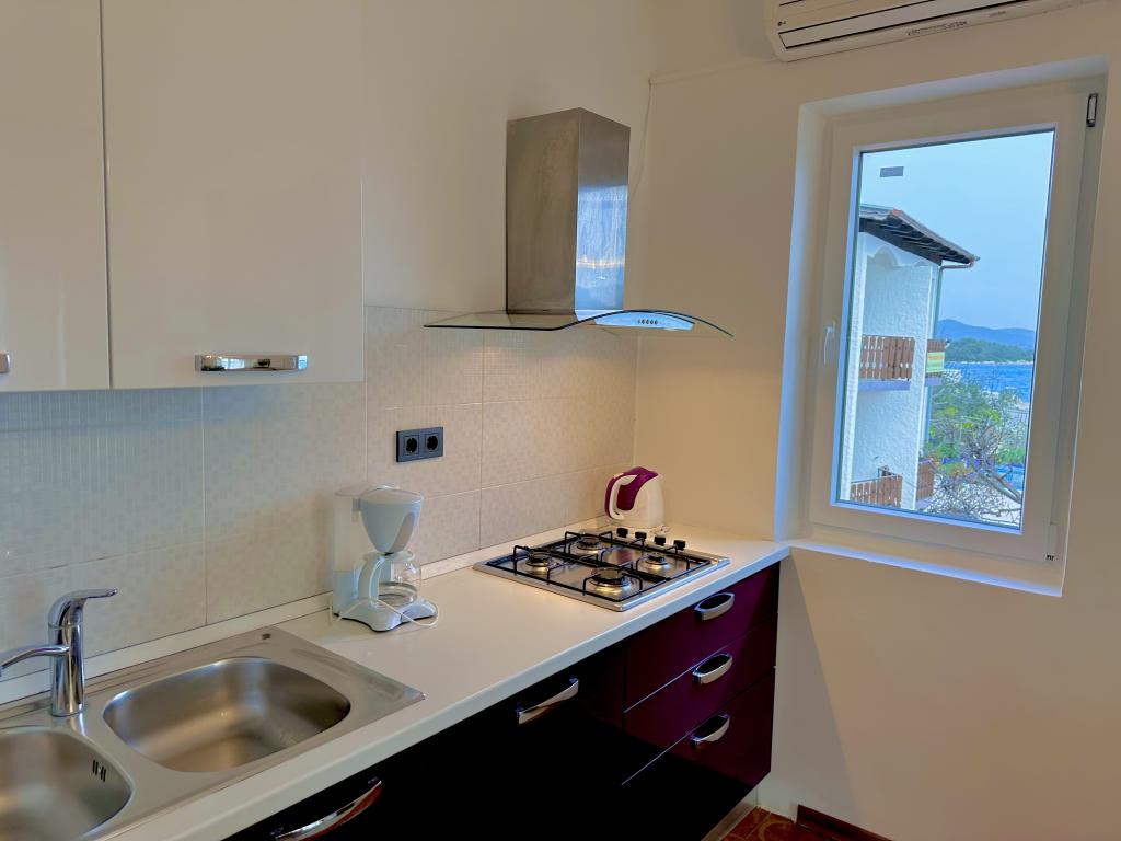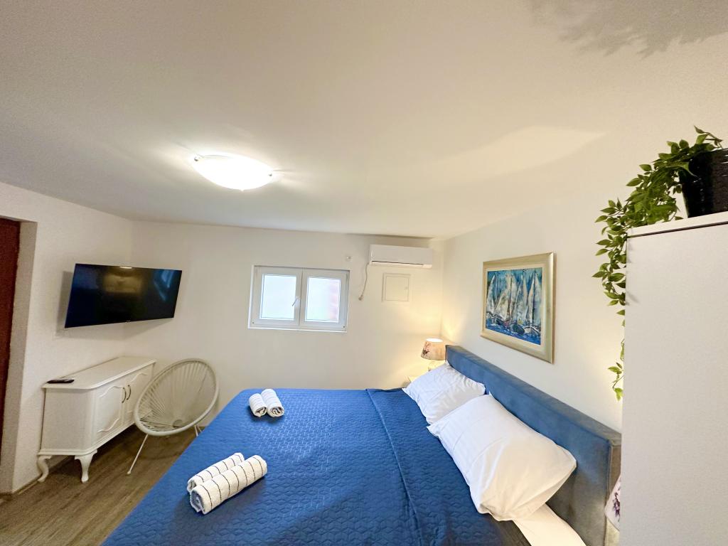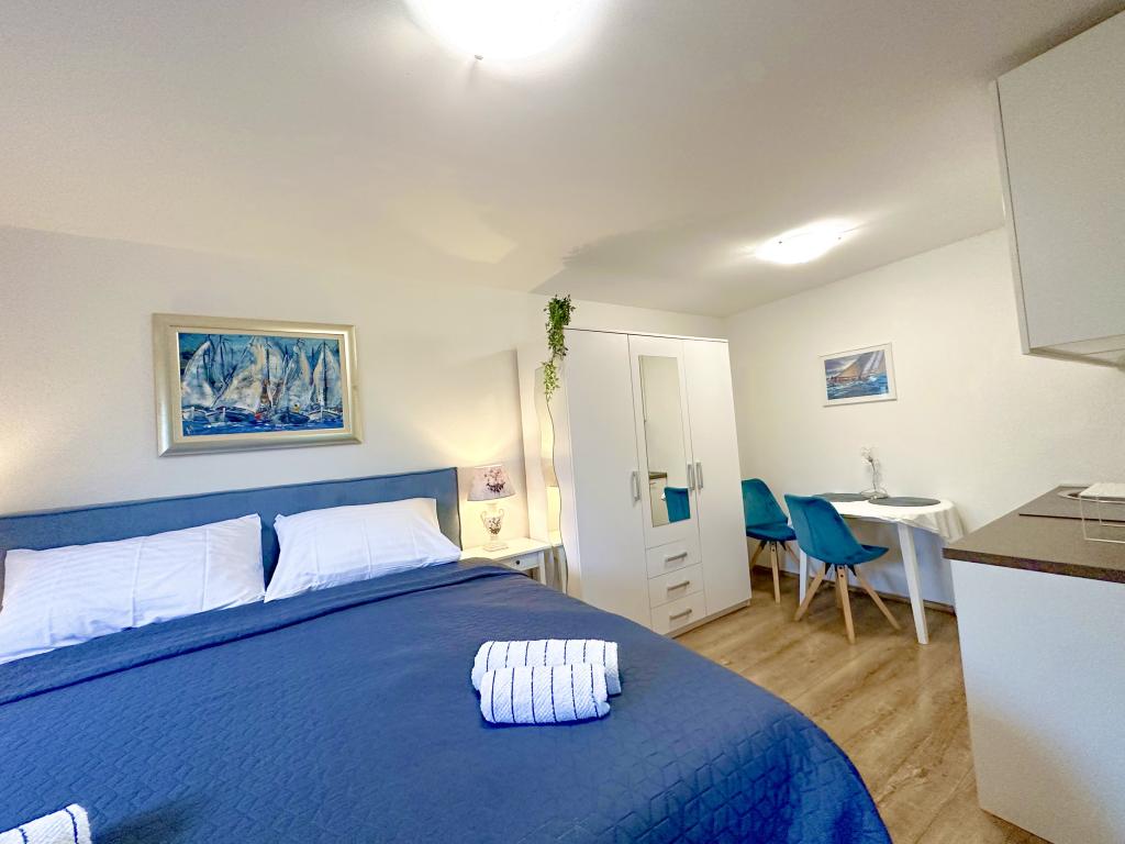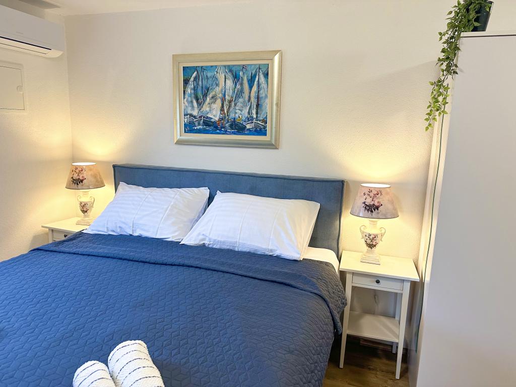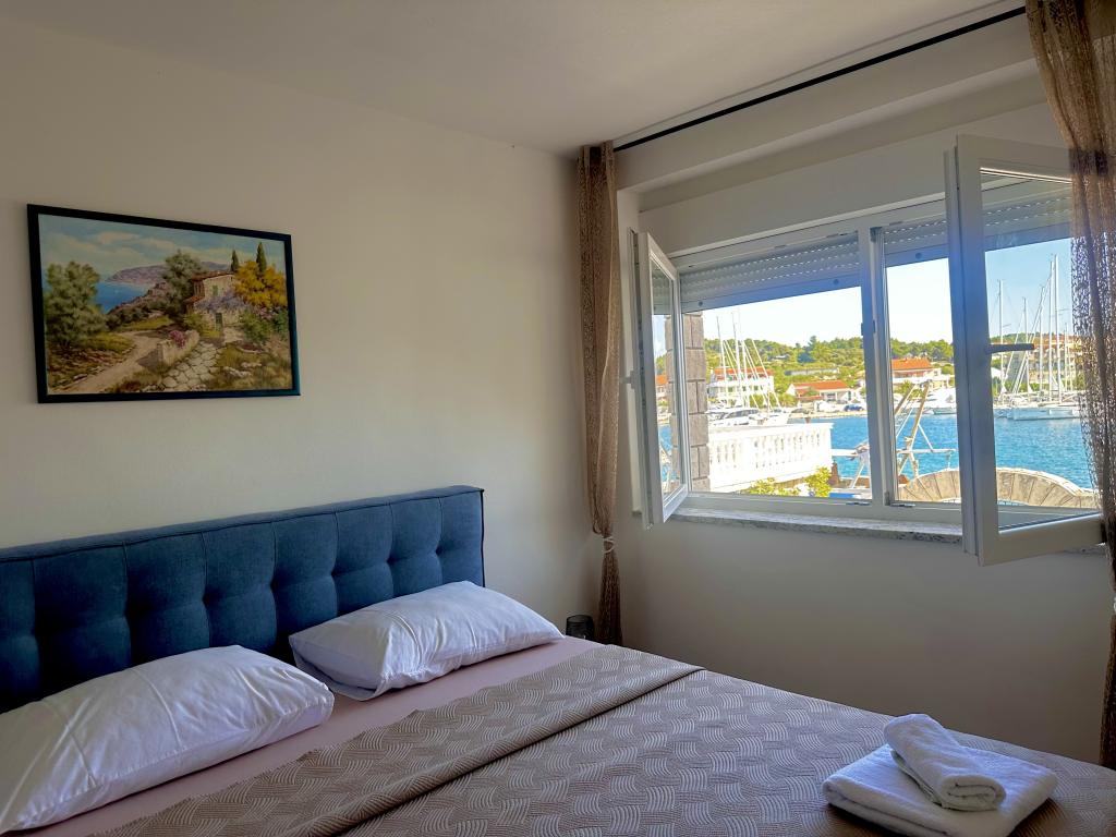 Genießen Sie einen wunderschönen Blick auf das Meer, gutes Wetter und magische Sonnenuntergänge in einer Wohnung, die sich nur wenige Meter vom Meer entfernt in einem hervorragend gelegenen Haus befindet. Ein Ort, um Dalmatien zu sehen, zu riechen und zu fühlen. Die Apartments liegen direkt am Meer und der nächste Strand ist nur 100 Meter entfernt. Wir bieten Ihnen einen Bootsliegeplatz und kostenlose Parkplätze.