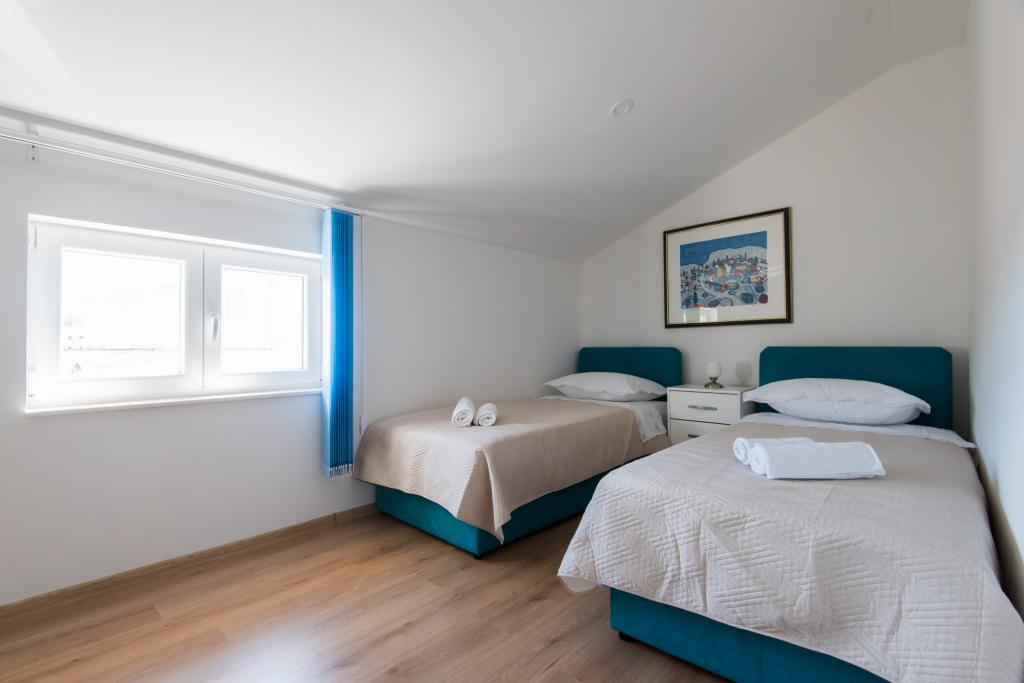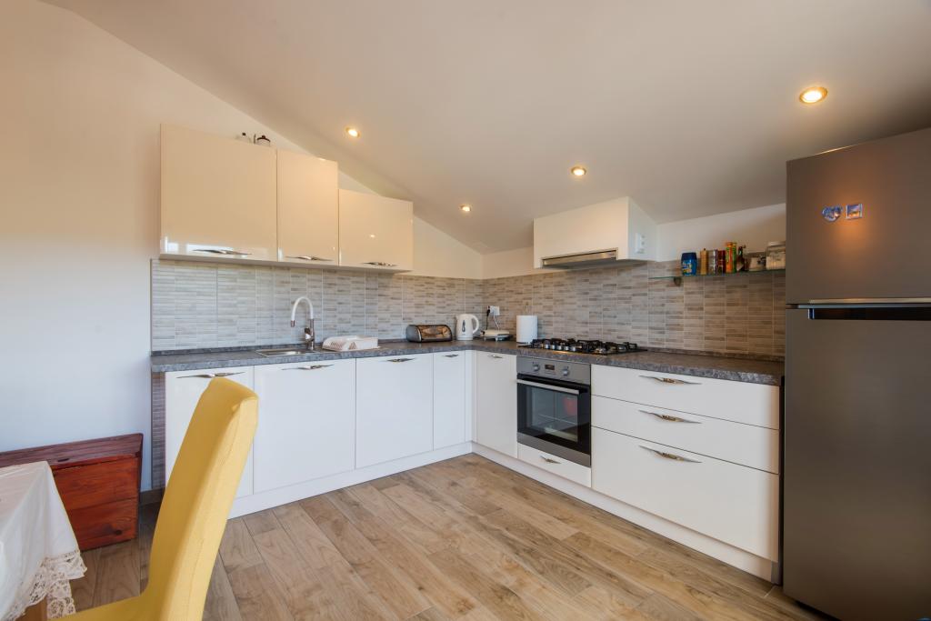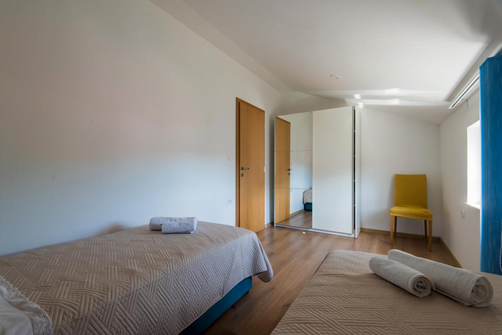 Die Wohnungen sind auf der ersten Etage des Hauses, die in der Bucht Lamjana in einer ruhigen Umgebung am Meer, moderne und voll ausgestattete befindet. Wohnung 2 verfügt über ein Schlafzimmer mit einem Doppelbett und einem großen Sofa-Bett in der Küche mit Ausgang zum Balkon, wo die Möbel, Badezimmer mit Dusche. Apartment 1 hat zwei Schlafzimmer und ein zusätzliches Bett in der Küche, Badezimmer mit Dusche, auf dem Balkon der Möbel. Stadtzentrum ist etwa 900 m. Auf dem Hof ist ein Grill, die unseren Gästen zur Verfügung ist.