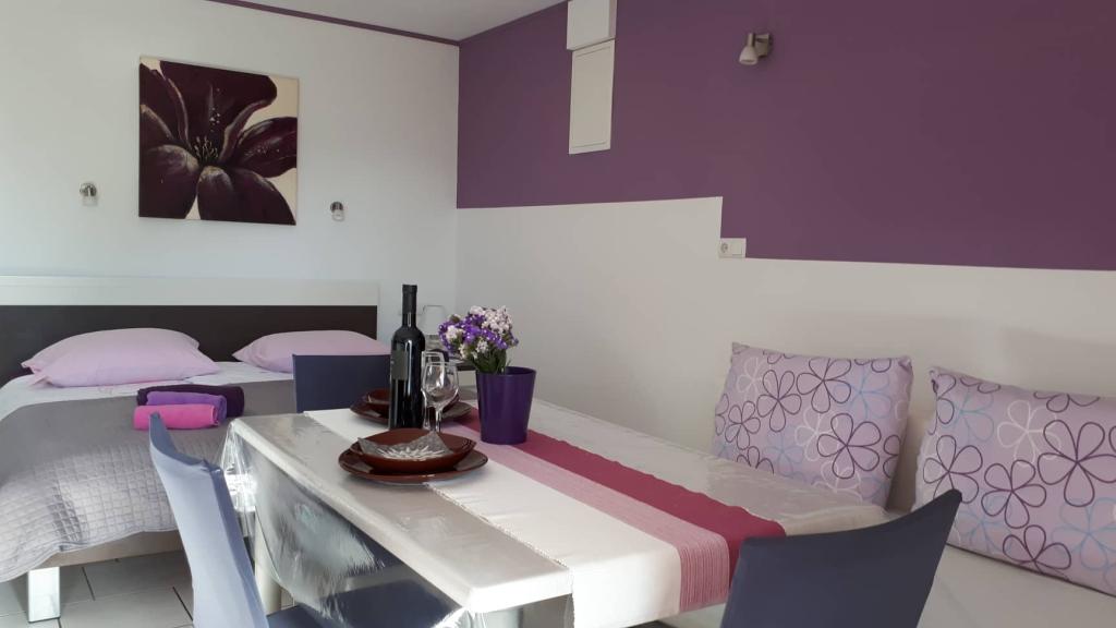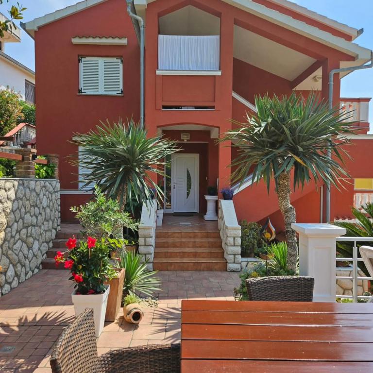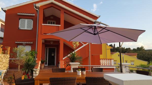 Die Apartments Ana Rab sind ein Haus mit schöner Aussicht in einem ruhigen Teil der Insel Rab, Kampor, nur 70 m vom ersten Sandstrand entfernt. Modern ausgestattete Apartments, alle mit eigenem Eingang und eigener Terrasse sowie einem wunderschön ausgestatteten Garten mit einer Hauptgartenterrasse mit Kamin und Warmwasserdusche. Innerhalb der Anlage befindet sich ein privater Parkplatz. Im Umkreis von 150 m befinden sich Restaurants, ein Lebensmittelgeschäft, zwei Café-Bars, eine Bäckerei, ein Friseursalon, ein Tennisplatz, ein Tauchzentrum, ein Basketball- und Mini-Fußballplatz, ein Reisebüro mit Wechselstube. Herzlich Willkommen