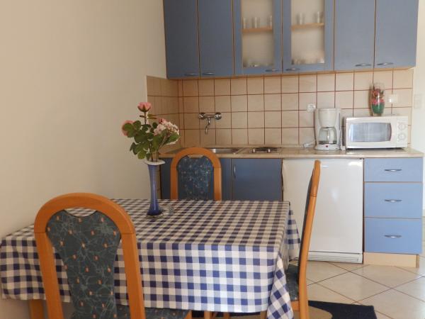 Die Wohnungen befinden sich in einem kleinen, ruhigen Fischerdorf Barbat auf der Insel, nur 100 m vom Meer entfernt mit einem schönen Blick auf die Bucht Veli Mel. Das Gebäude ist von vier Orten Kampor 150 m und 5 km von der Altstadt von Rab. Die Apartments sind komplett ausgestattet, modern eingerichtet für einen angenehmen Aufenthalt. Land des Gebäudes ist mit viel Grün und Gärten geschmückt, die die Anlage besonders attraktiv macht. Die Gäste können den Gartengrill und Kinderpark nutzen.